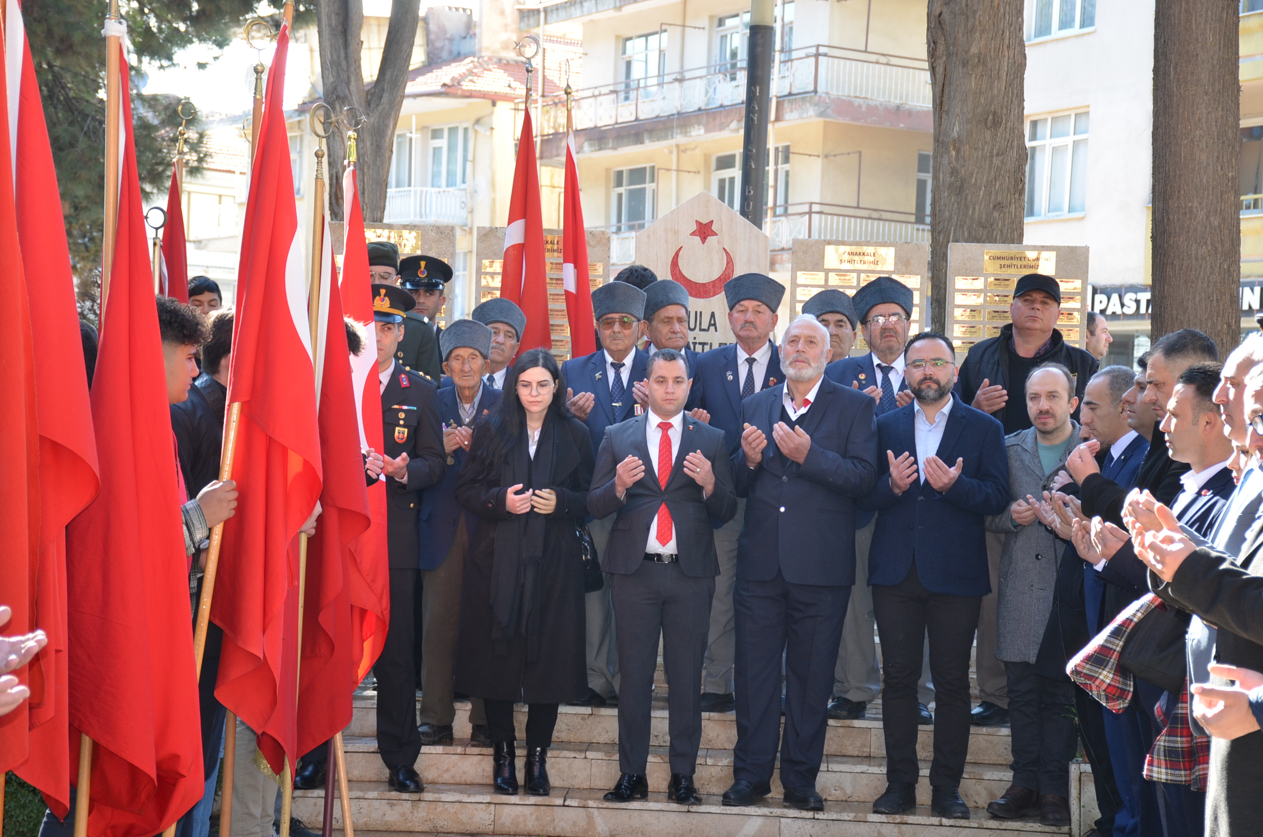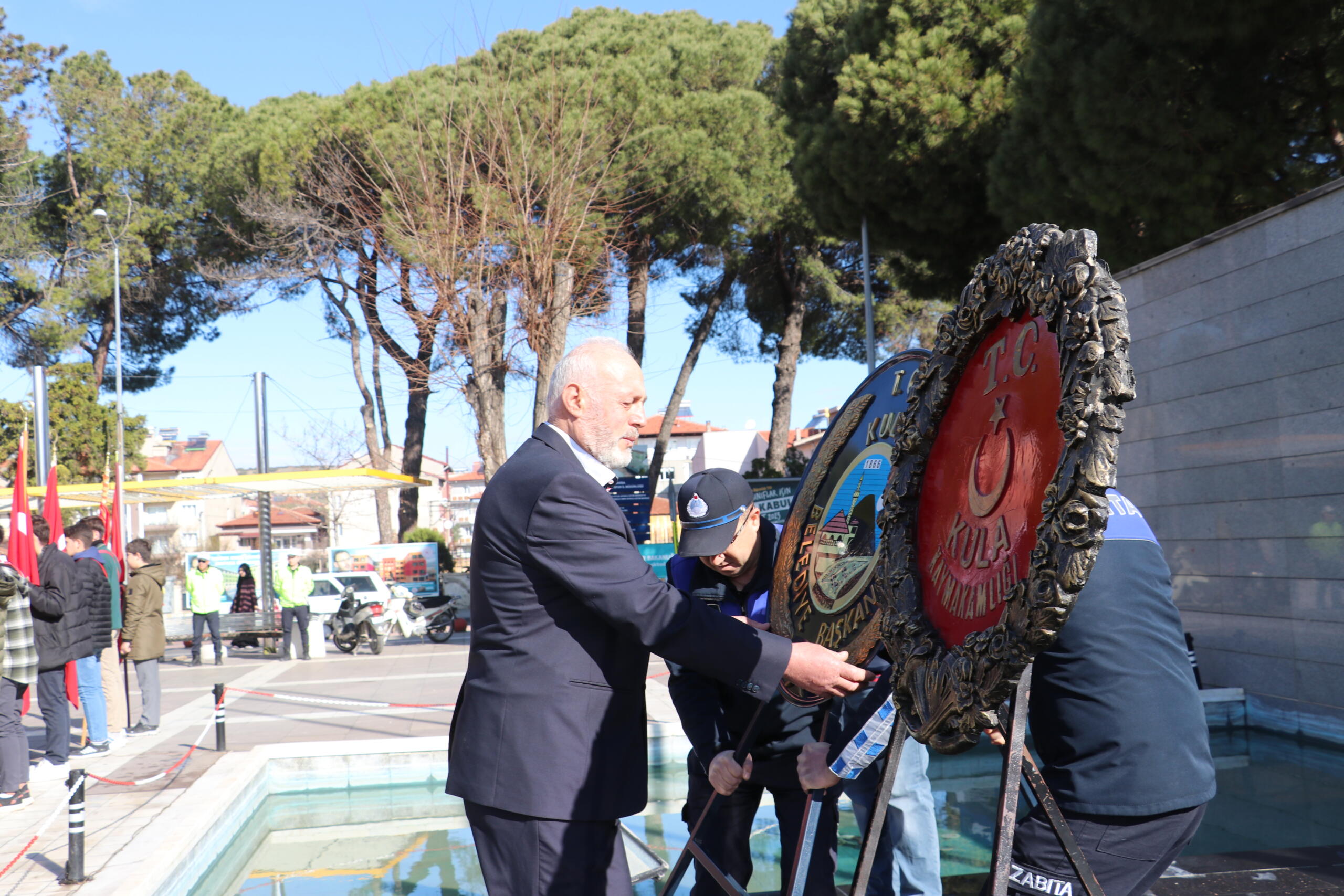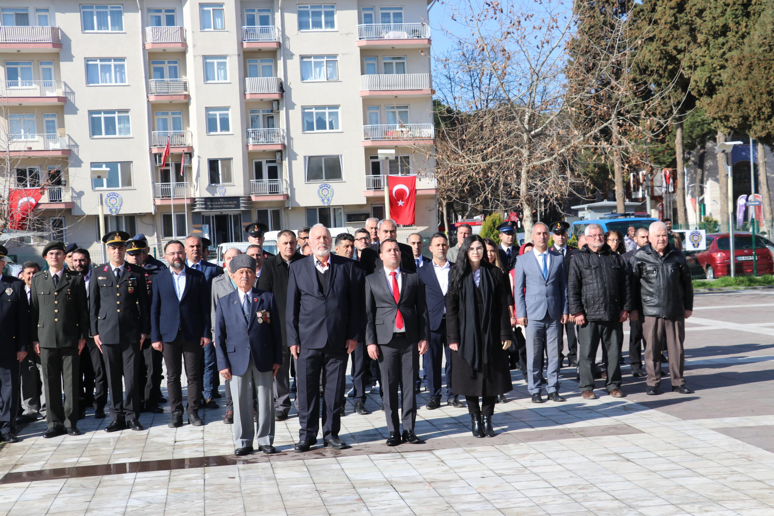 Program ilk olarak Kent Meydanında bulunan Atatürk anına çelenk sunulmasıyla başladı, çeleklerin sunumunun ardından, saygı duruşu ve İstiklal marşı okundu. Kula Şehitliğini ziyaret edildi, şehitlikte Çanakkale Şehitleri ve tüm şehitlerimiz adına Kuran tilaveti ve dualar edildi.