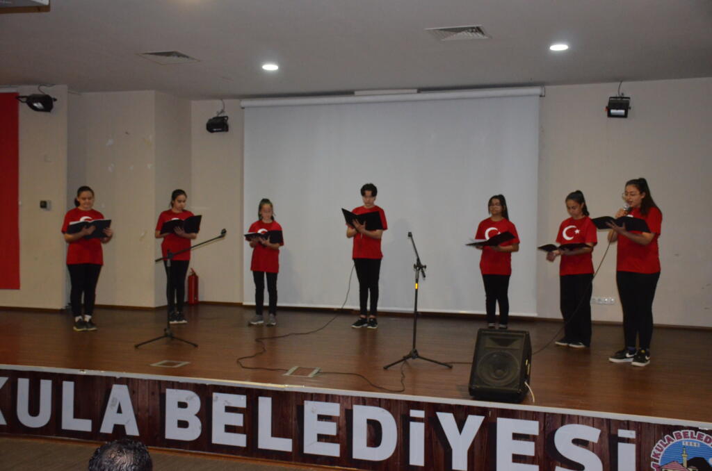 Şehitlik ziyareti sonrasında kültür merkezinde hazırlanan programda ilk olarak saygı Duruşu ve İstiklal Marşı okundu. Program da günün anlam ve önemini belirten konuşmayı Kula Kaymakamı Birkan Tatlısöz yaptı, öğrencilerin hazırlamış olduğu oratoryo, şiirler ve pandomim gösterilerinin ardından şiir ve kompozisyon yarışmalarında derece yapan öğrencilere ödülleri verildi.