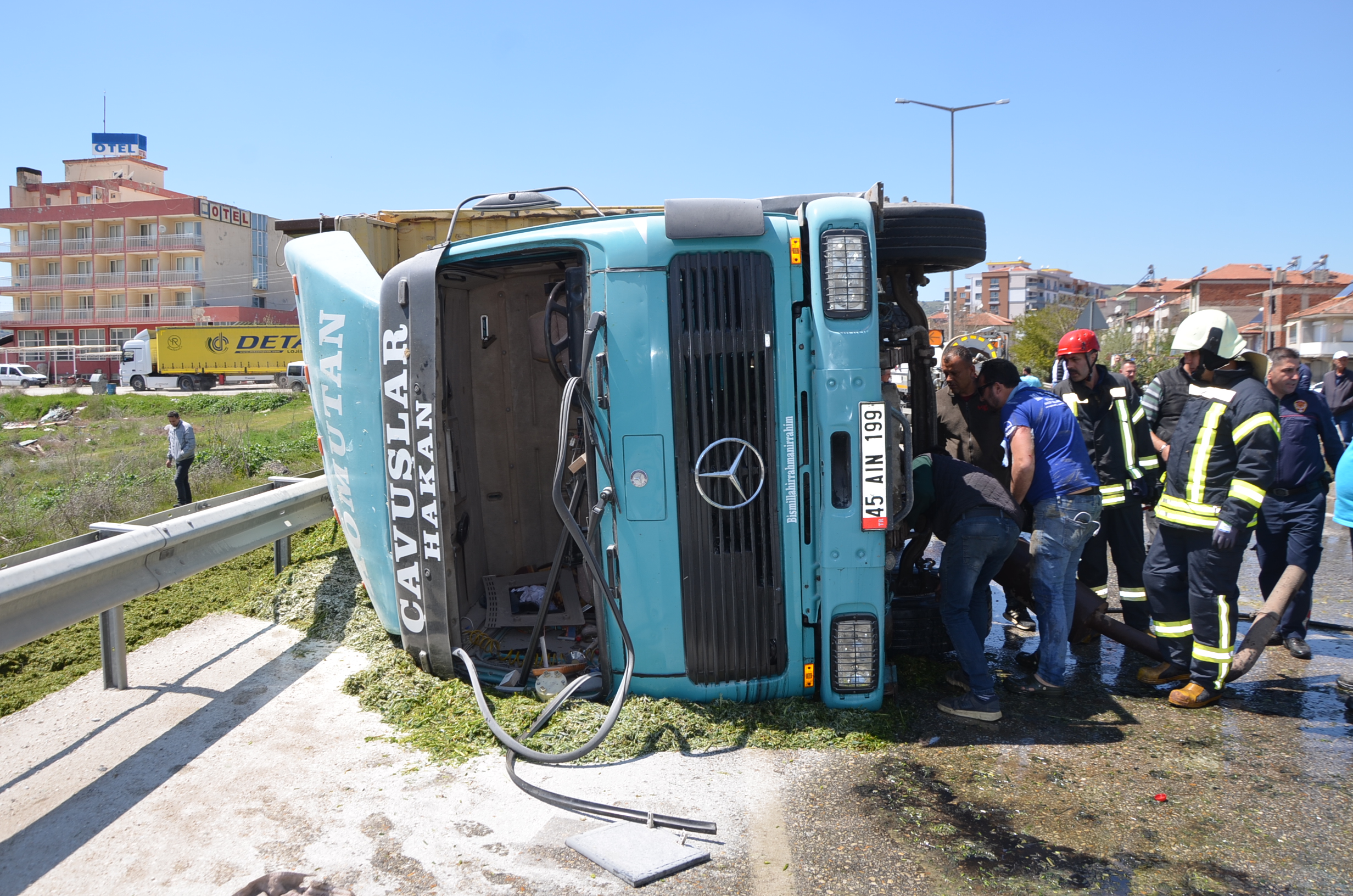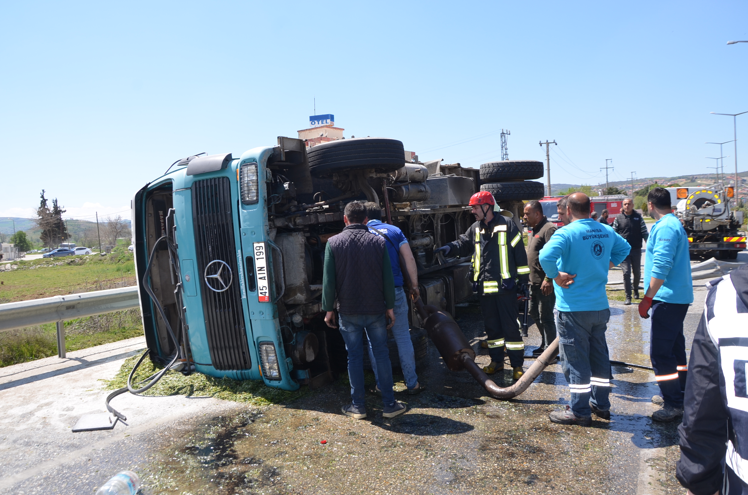 İzmir Ankara karayolu Kula Kavacık rampasında freni boşalan kamyon yan yatarak 150 metre sürüklendi.