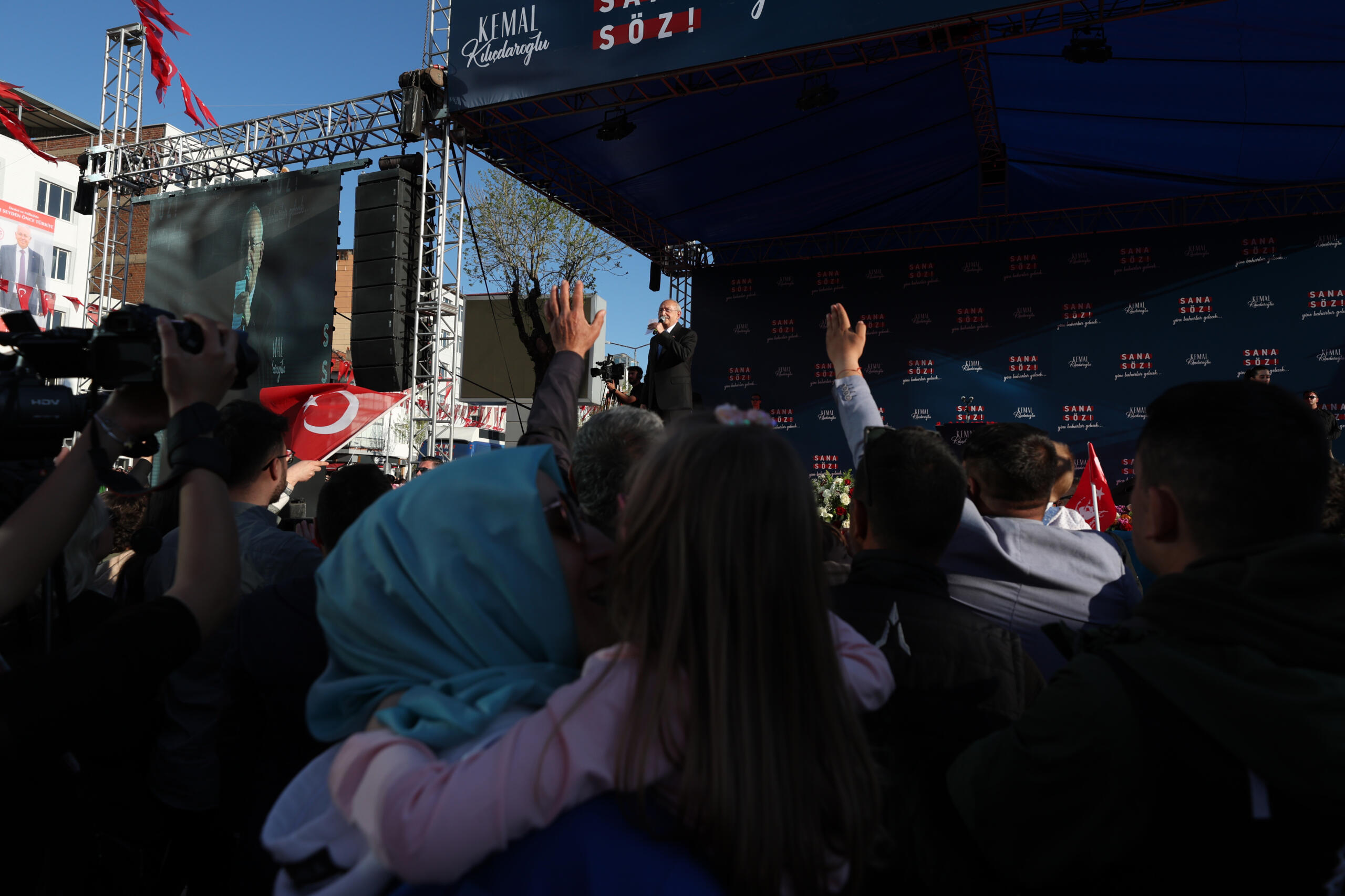 (Kitlenin ‘Cumhurbaşkanı Kılıçdaroğlu’ sloganları üzerine) O benim elimde değil, o sizin elinizde. Sandığa gideceksiniz, oyunuzu kullanacaksınız ve Türkiye’de yeni bir dönemi hep beraber başlatacağız.