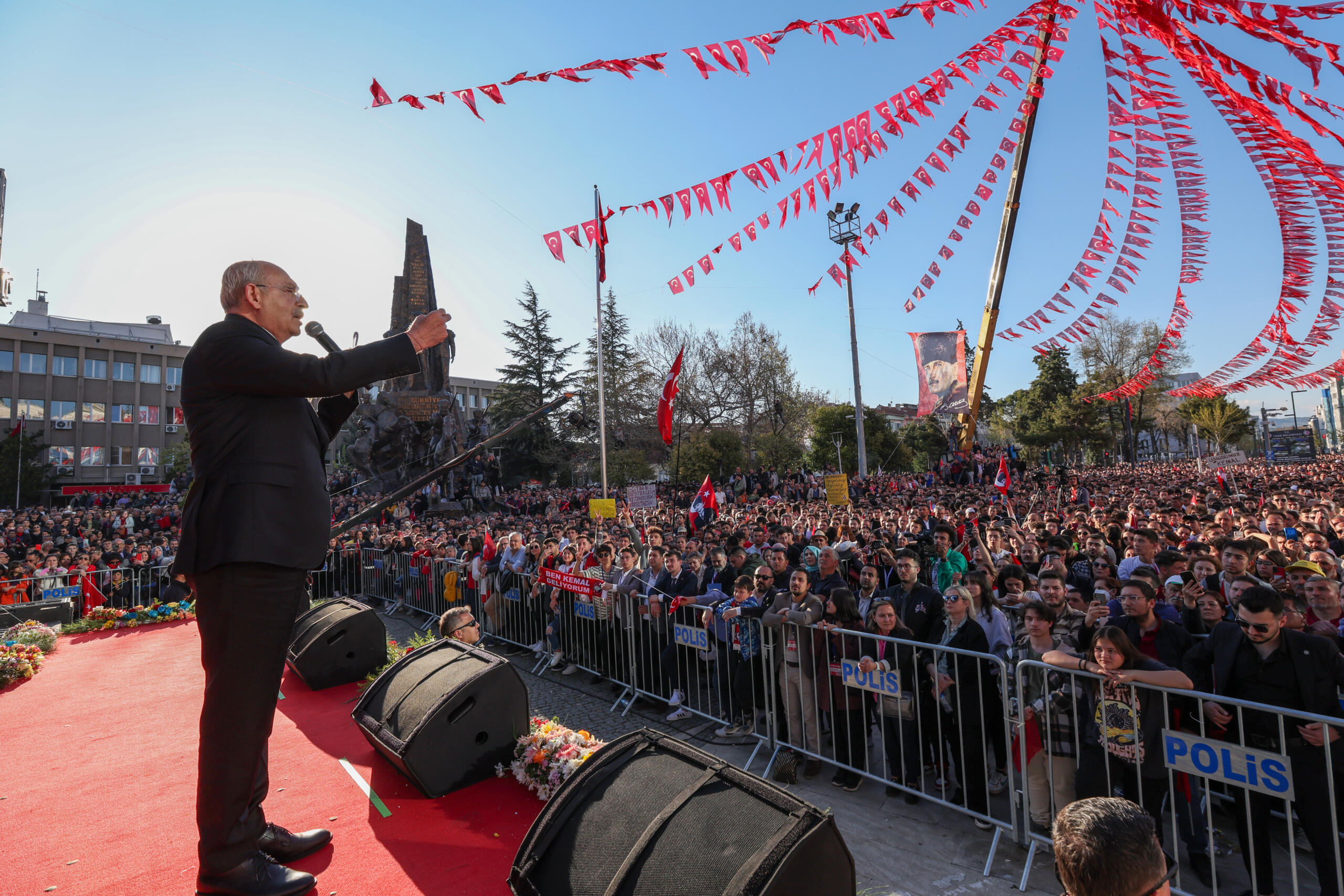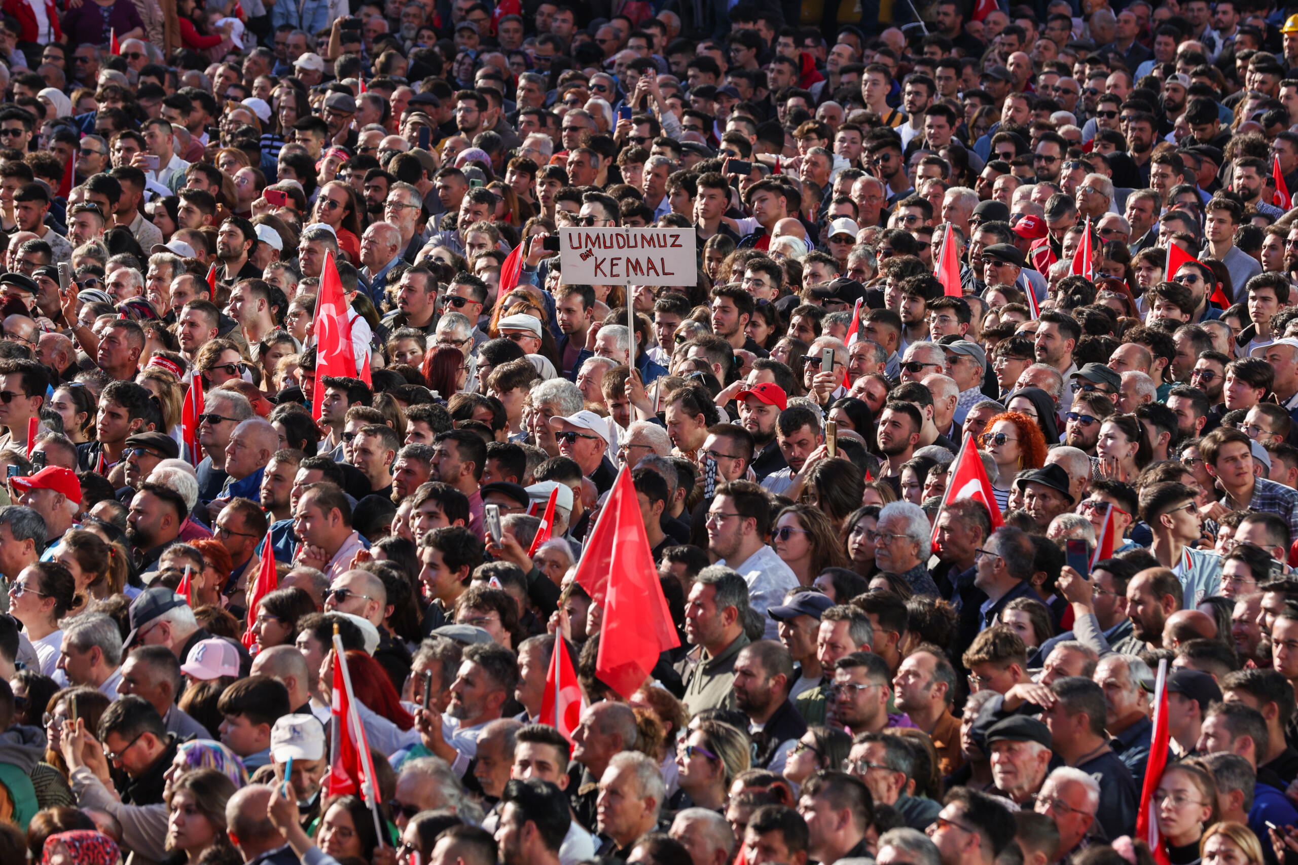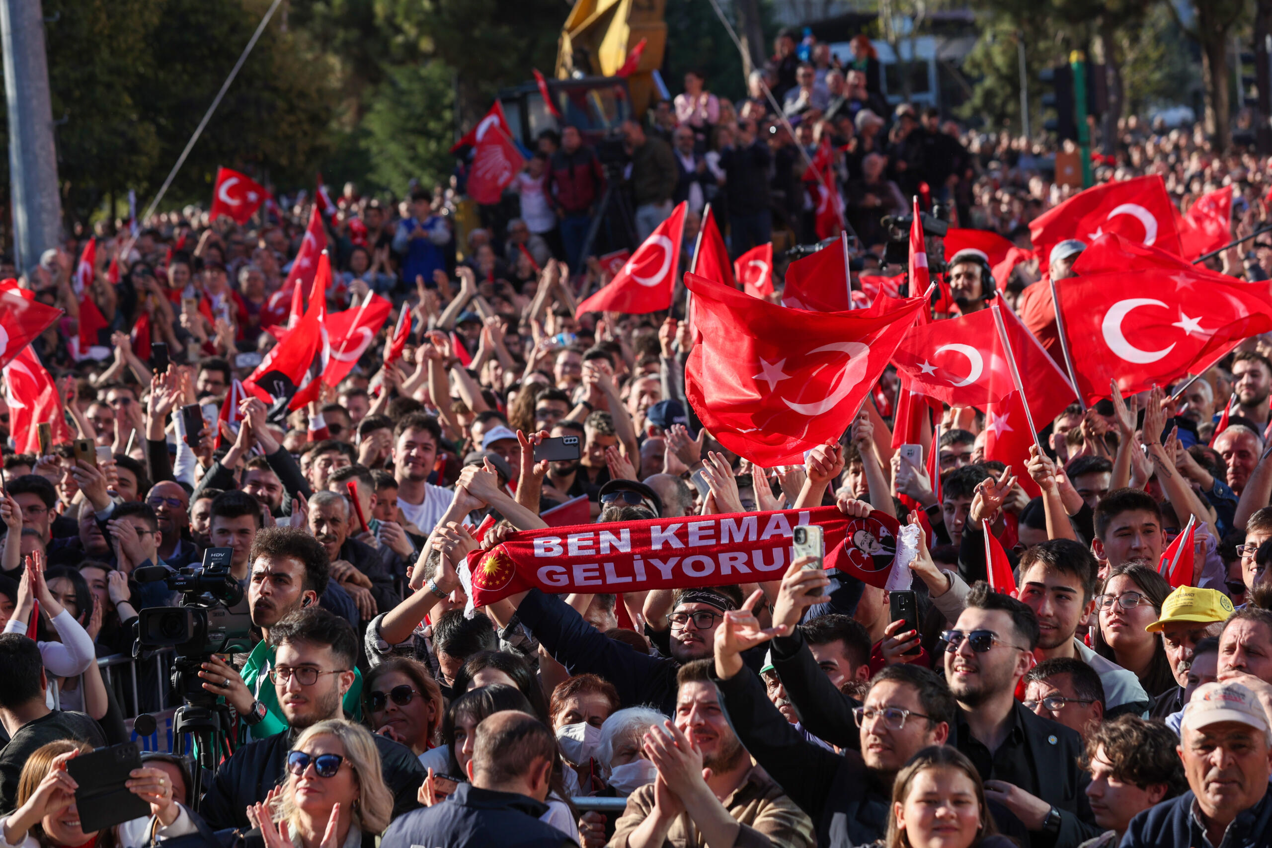 Burada bir pankart var, ‘Ben Kemal geliyorum’ diye. Bunu bu alan söylüyor zaten. Geliyoruz. Beraber geliyoruz, birlikte geliyoruz. Herkesin hakkını, hukukunu teslim etmek için geliyoruz. Hiç endişe etmeyin.