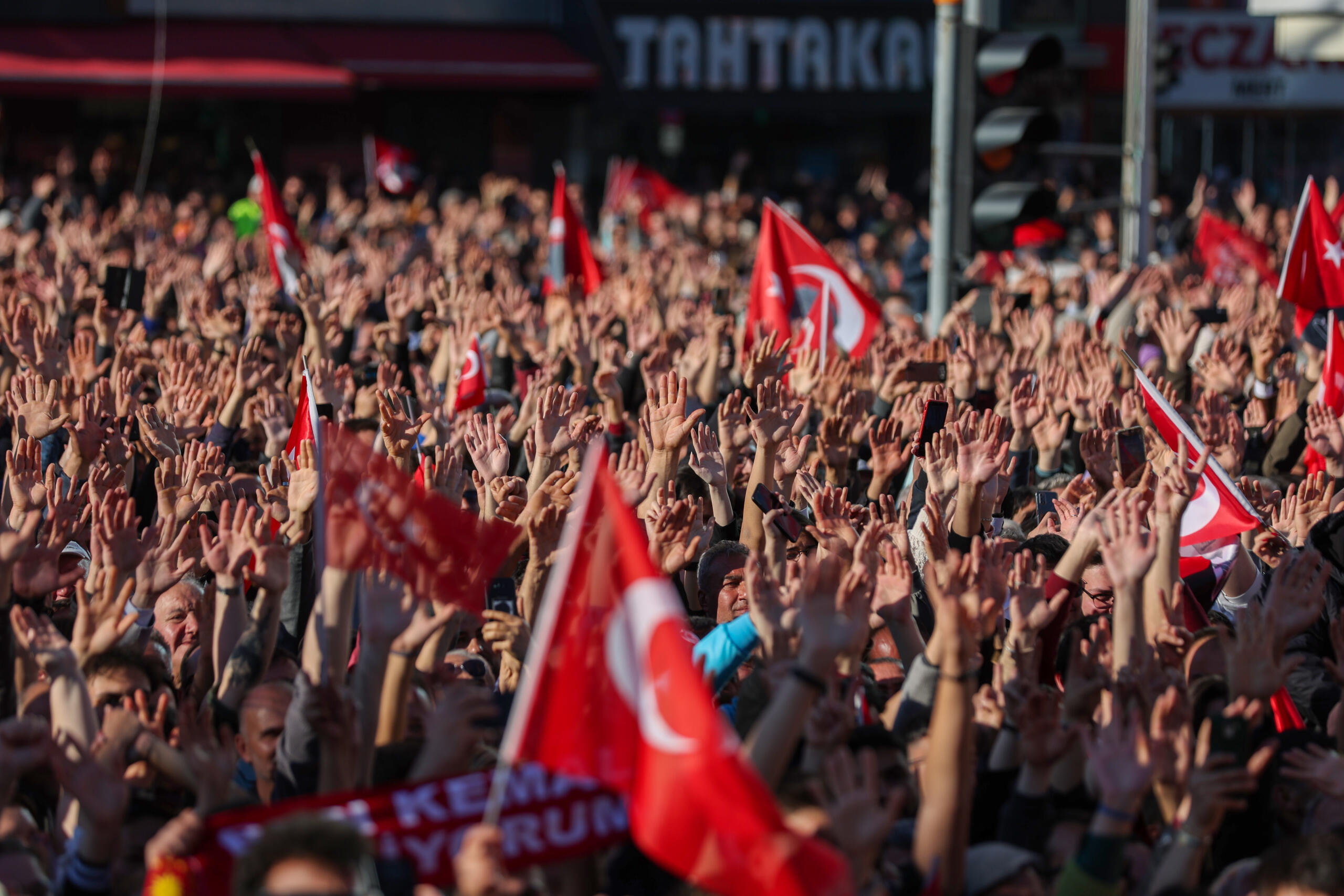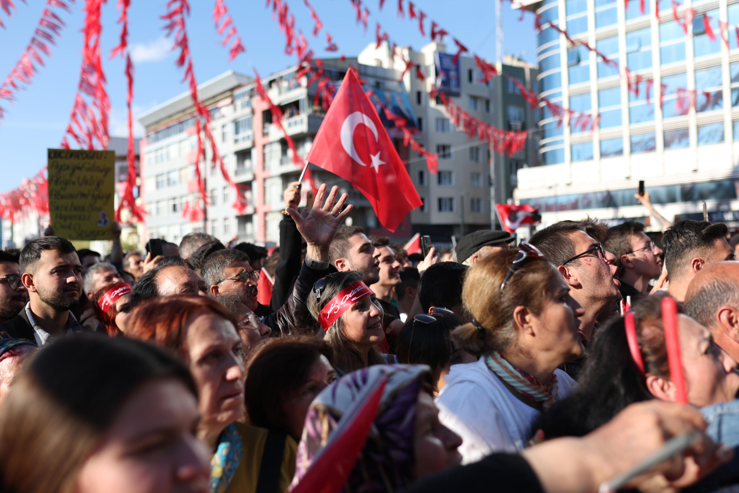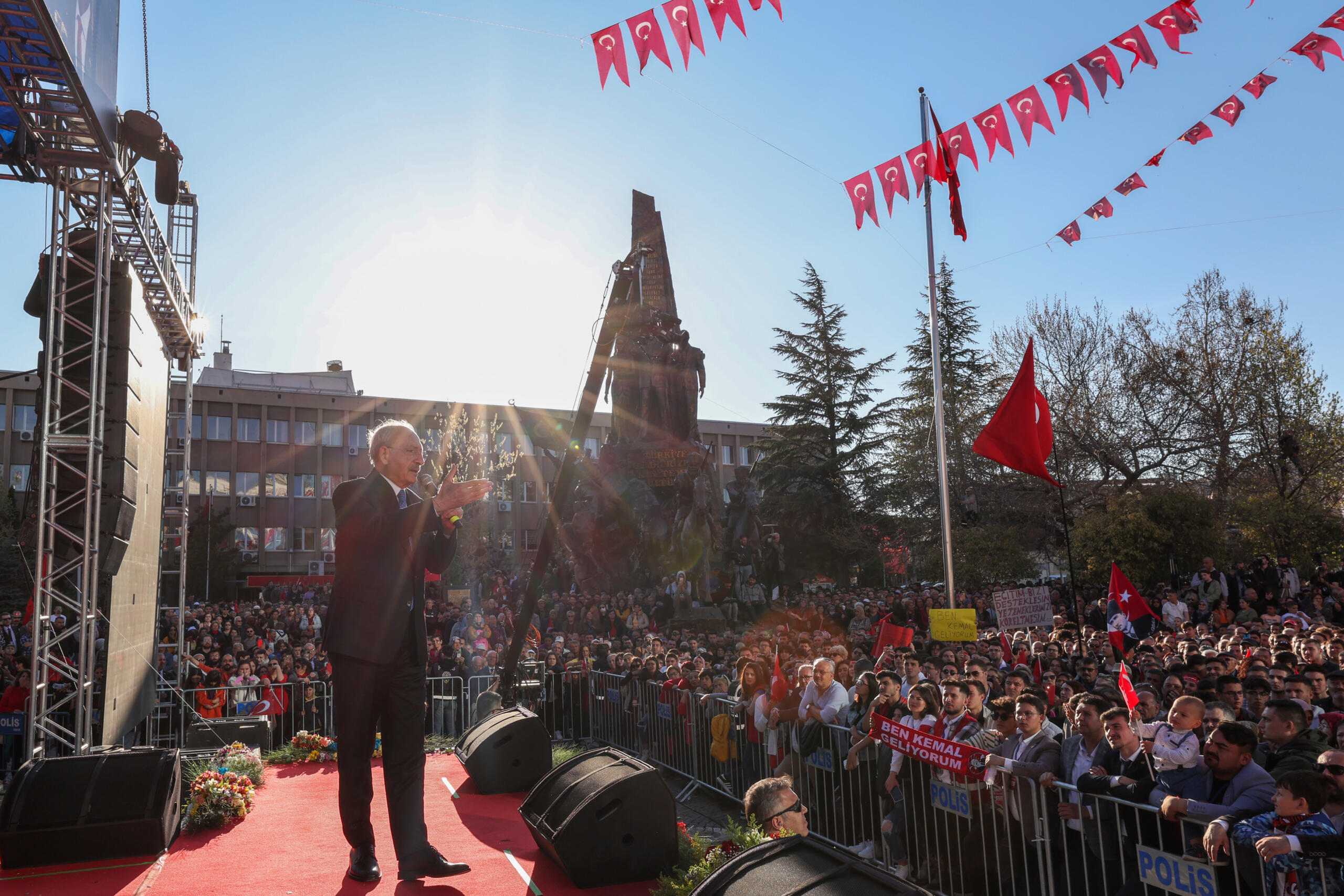 Burada bir pankart var, ‘Ben Kemal geliyorum’ diye. Bunu bu alan söylüyor zaten. Geliyoruz. Beraber geliyoruz, birlikte geliyoruz. Herkesin hakkını, hukukunu teslim etmek için geliyoruz. Hiç endişe etmeyin.