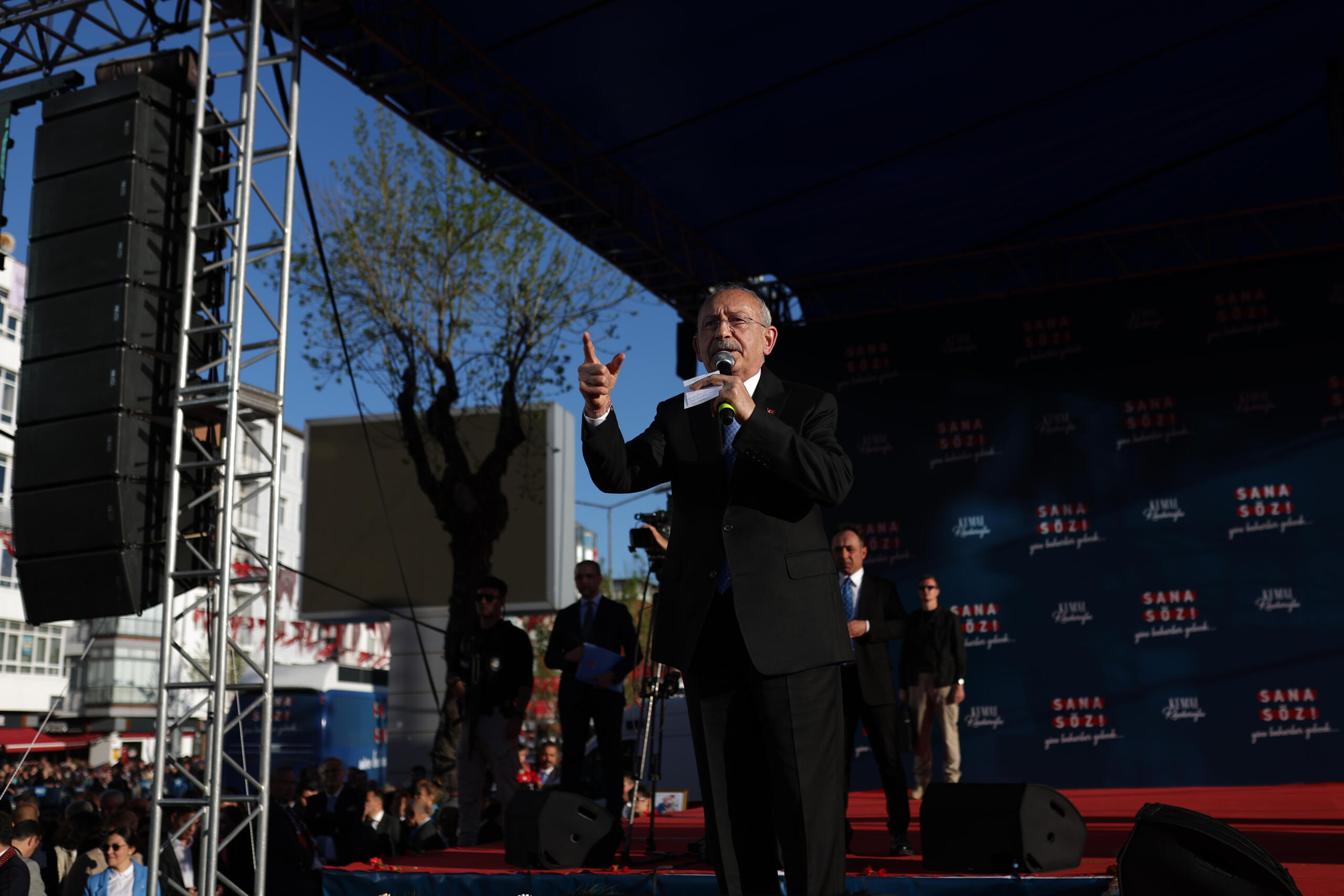 Ben de size söz veriyorum. Kul hakkı yiyeni, bulunduğu makamda asla tutmayacağım. Adaletsizlik yapanı, o makamda asla tutmayacağım. Onlar Beşli Çetelere çalışıyorlar, Bay Kemal sizin için çalışacak. Emekli için çalışacak, ev kadınları için çalışacak, memurlar için çalışacak, iş insanları için çalışacak, işçiler için, köylüler için, besiciler için, apartman görevlileri için, gençler için, kadınlar için, bu ülkenin 85 milyonu için çalışacak. Söz veriyorum.