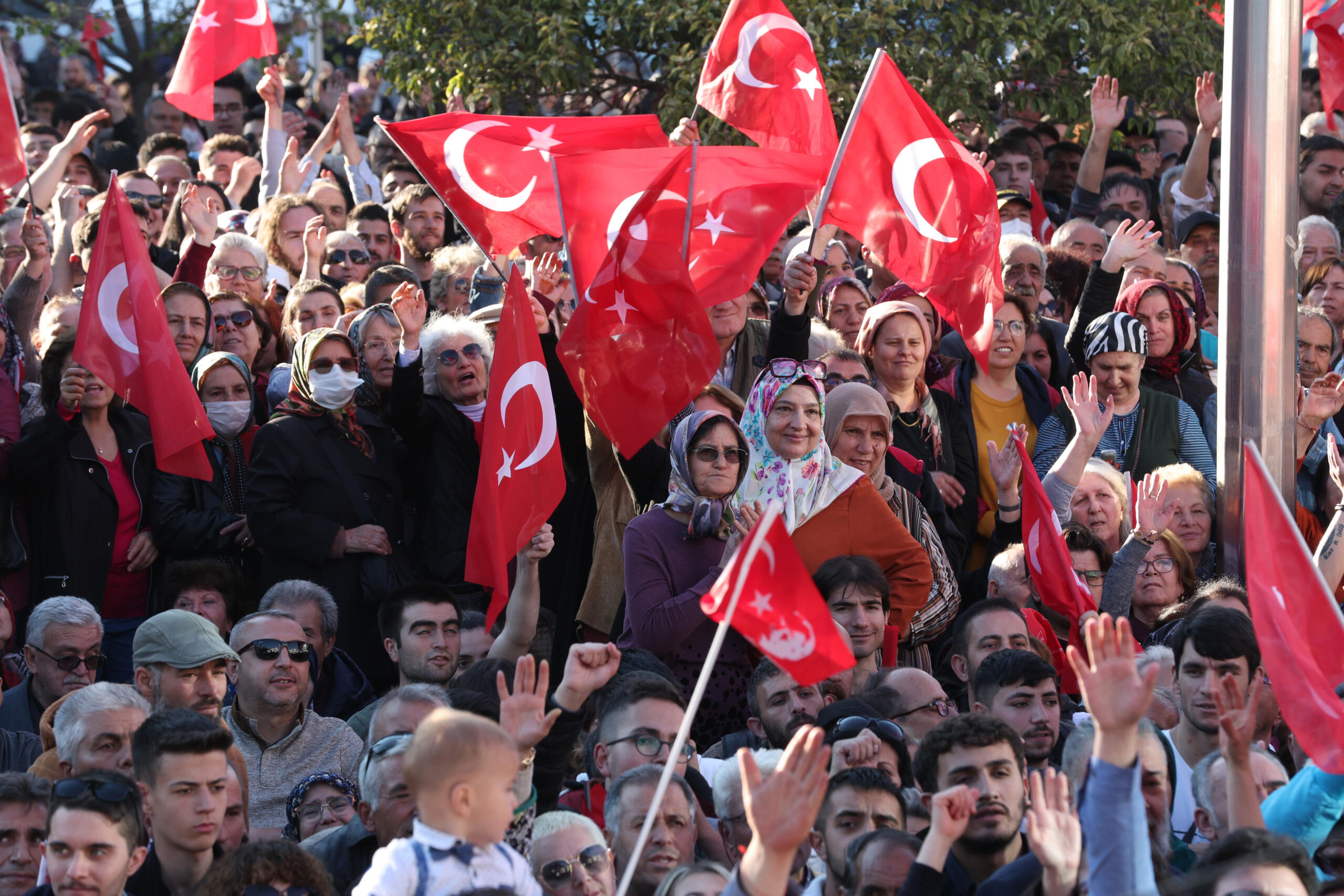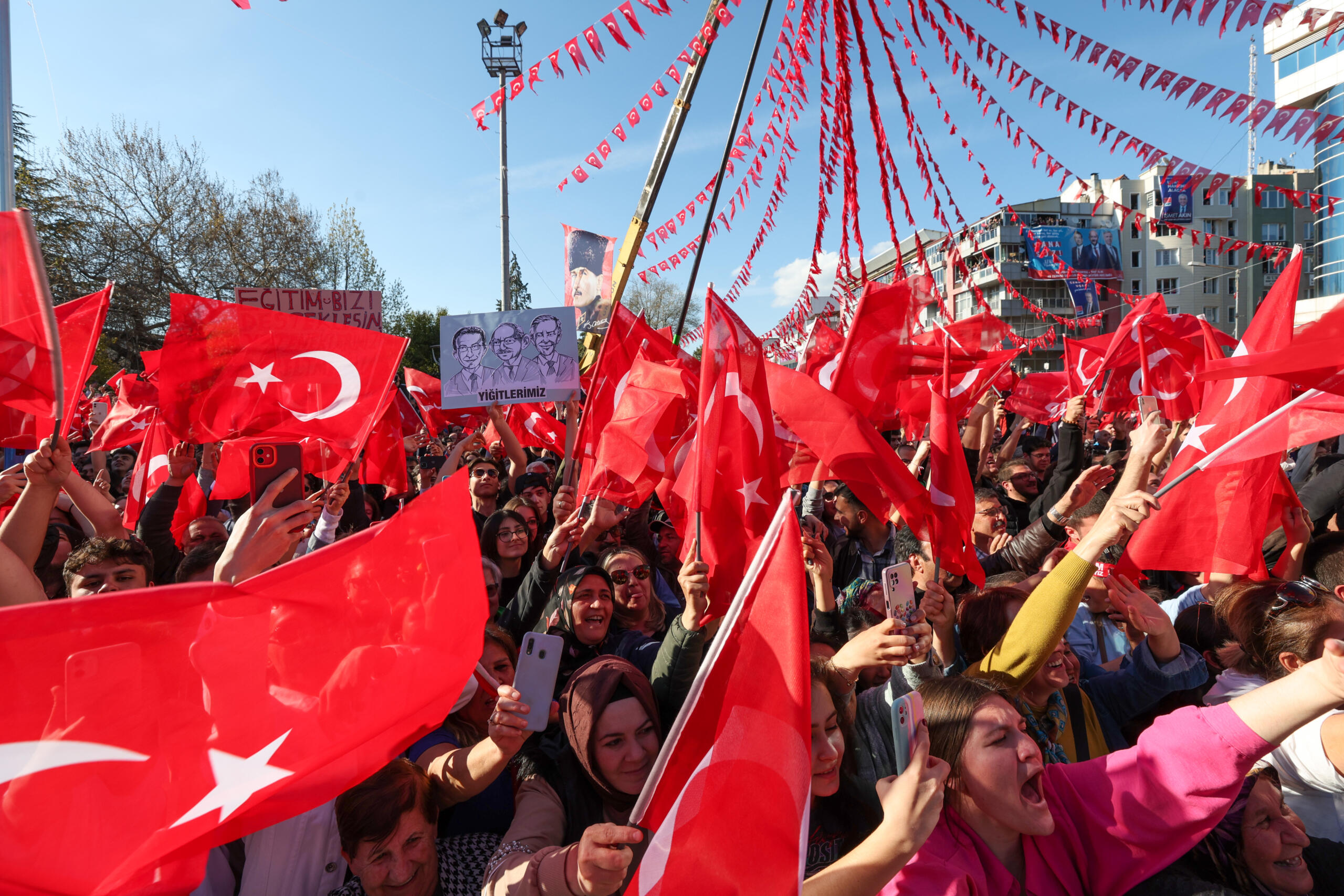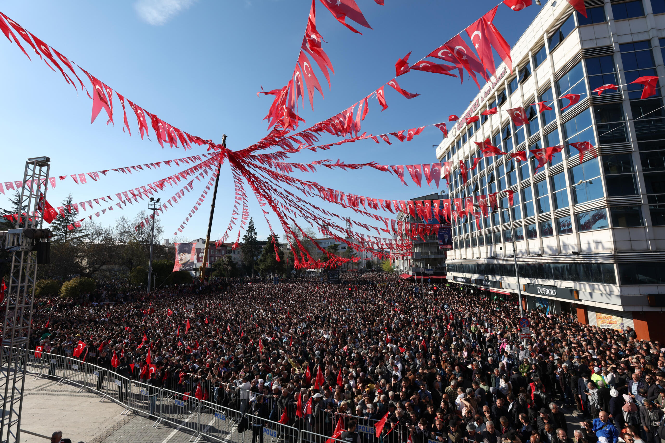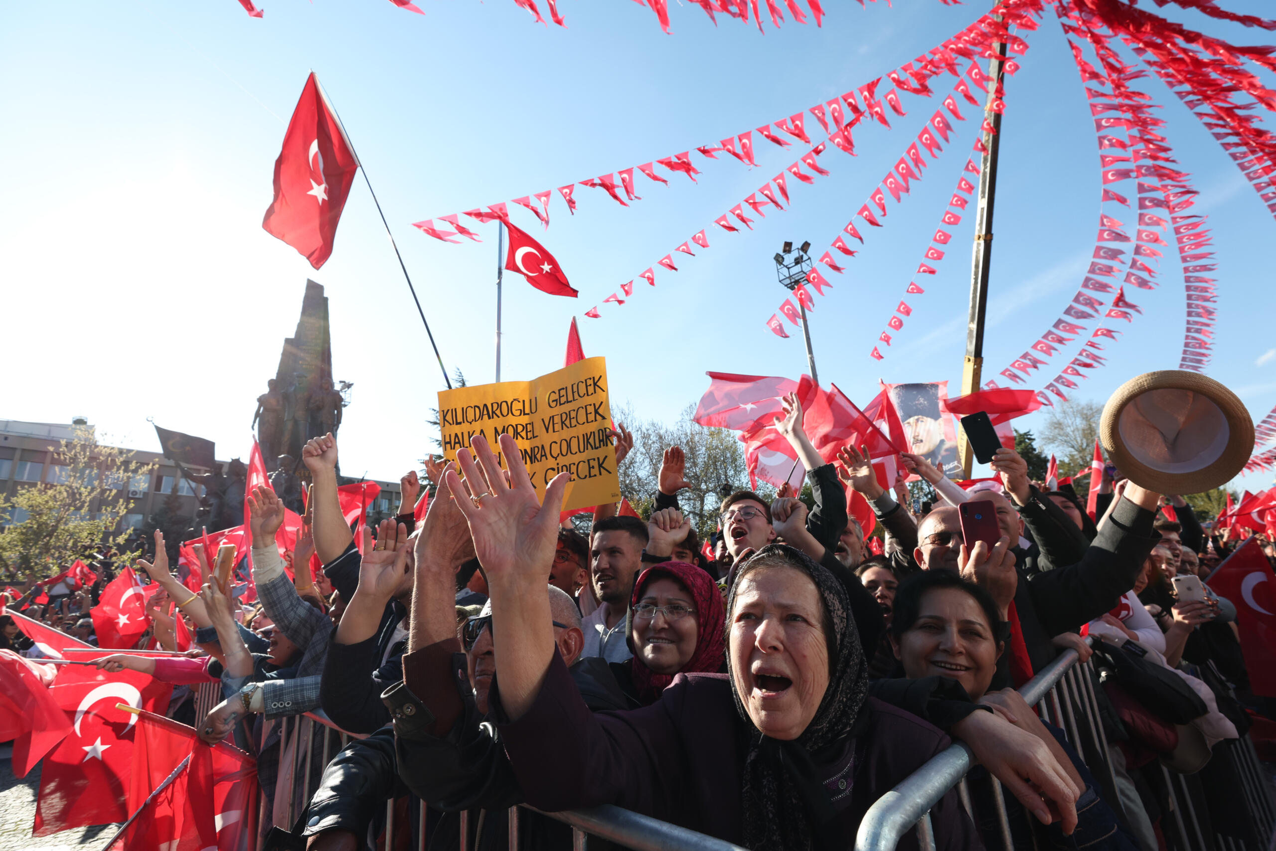 Yan taraftakilere sorayım. Sizler de Mustafa Kemal Atatürk’ün hedef gösterdiği çağdaş uygarlığı aşma konusunda gerekli çabayı gösterip, sandığa gidip önümüzü açacak mısınız? (Kitle ‘Evet’ diye yanıt verdi)