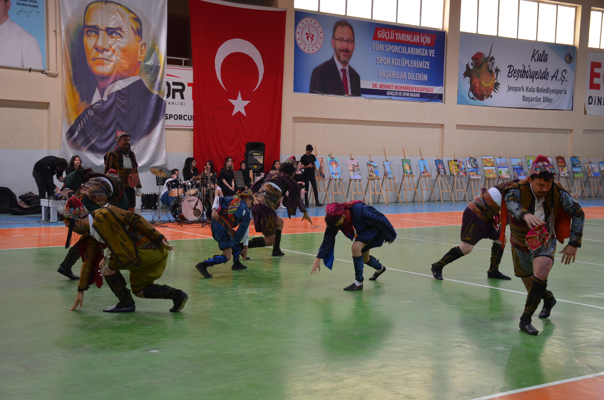 Spor Salonunda ki program Saygı Duruşu ve İstiklal marşının okunmasıyla başlarken Gençlik ve Spor Bakanı Dr. Mehmet Muharrem Kasapoğlu’nun mesajının okunmasıyla devam etti. Günün anlam ve önemini belirten konuşmayı Kula Kaymakamı Birkan Tatlısöz yaparken konuşmanın ardından Yaren ekibinin gösterisi yapıldı, gösterinin ardından Atatürk’ün gençliğe hitabesi ve Gençliğin Atatürk’e cevabı okundu, öğrencilerin hazırlamış olduğu programda müzik dinletisi, şiirlerin okunması, Kula Belediyesi Spor Kulübü jimnastik Ekibinin ve folklor ekibinin gösterileri, şiir ve kompozisyon yarışmalarında derece yapan öğrencilere ödüllerinin verilmesiyle program son buldu.