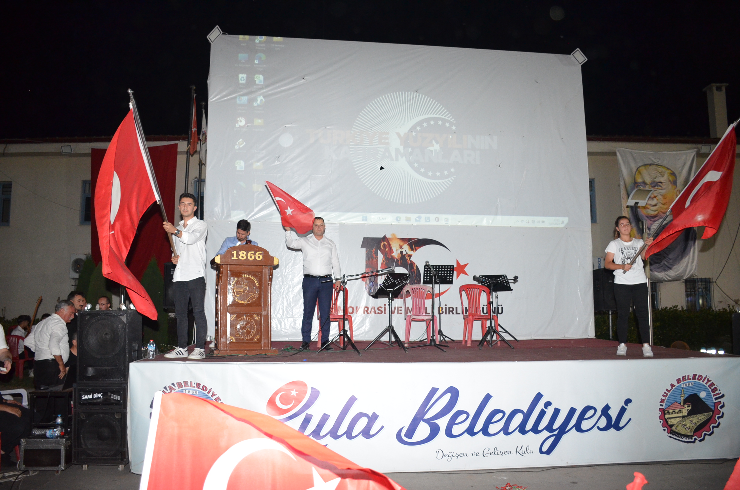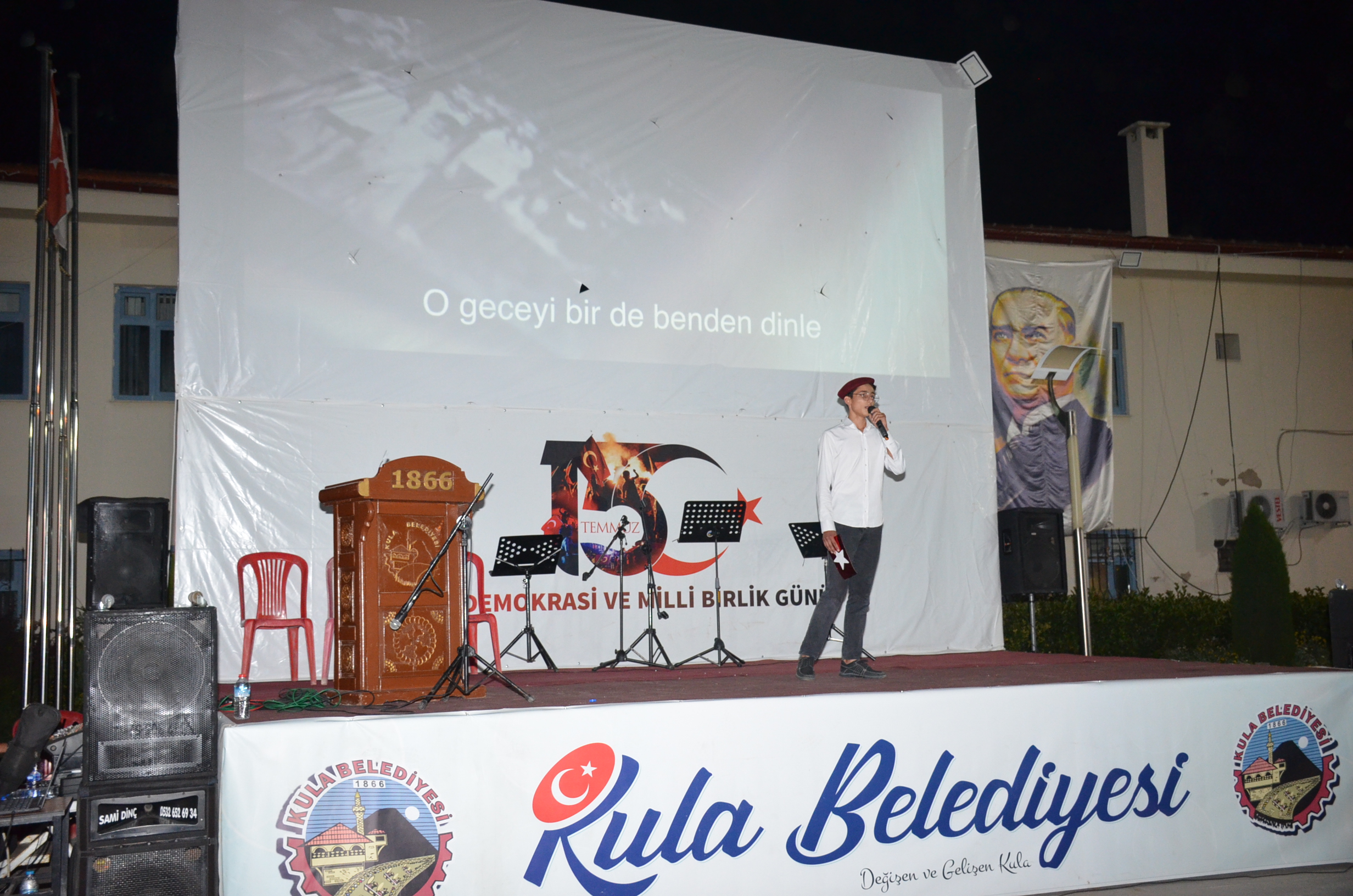 15 Temmuz Demokrasi ve Milli Birlik günü 7. Anma programları kapsamında Kula’da anma programları Süleyman Şah caminde akşam namazının kılınması mutabıkken mevlidi şerif ile devam etti. Akşam namazının ardından mehteran takımı ile Süleyman Şah caminden Kula Kent Meydanına konvoy halinde yürüyüş yapıldı. Kula Kent Meydanındaki program Mehteran takımının gösterileriyle devam etti.