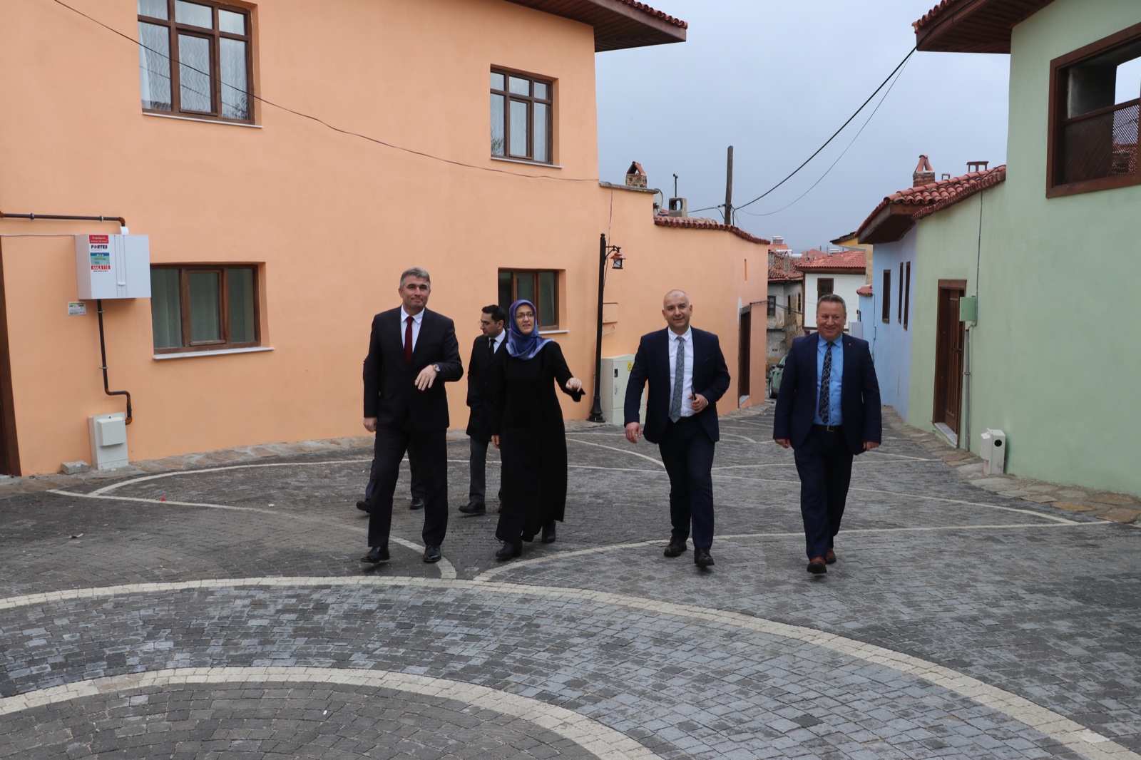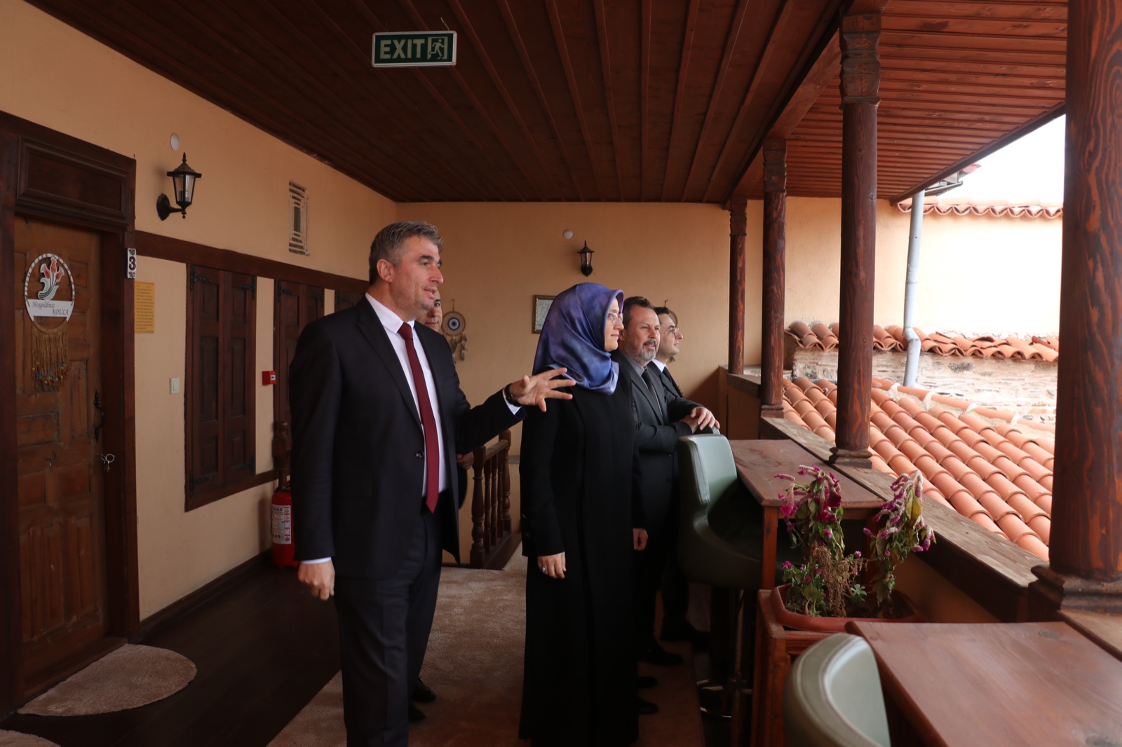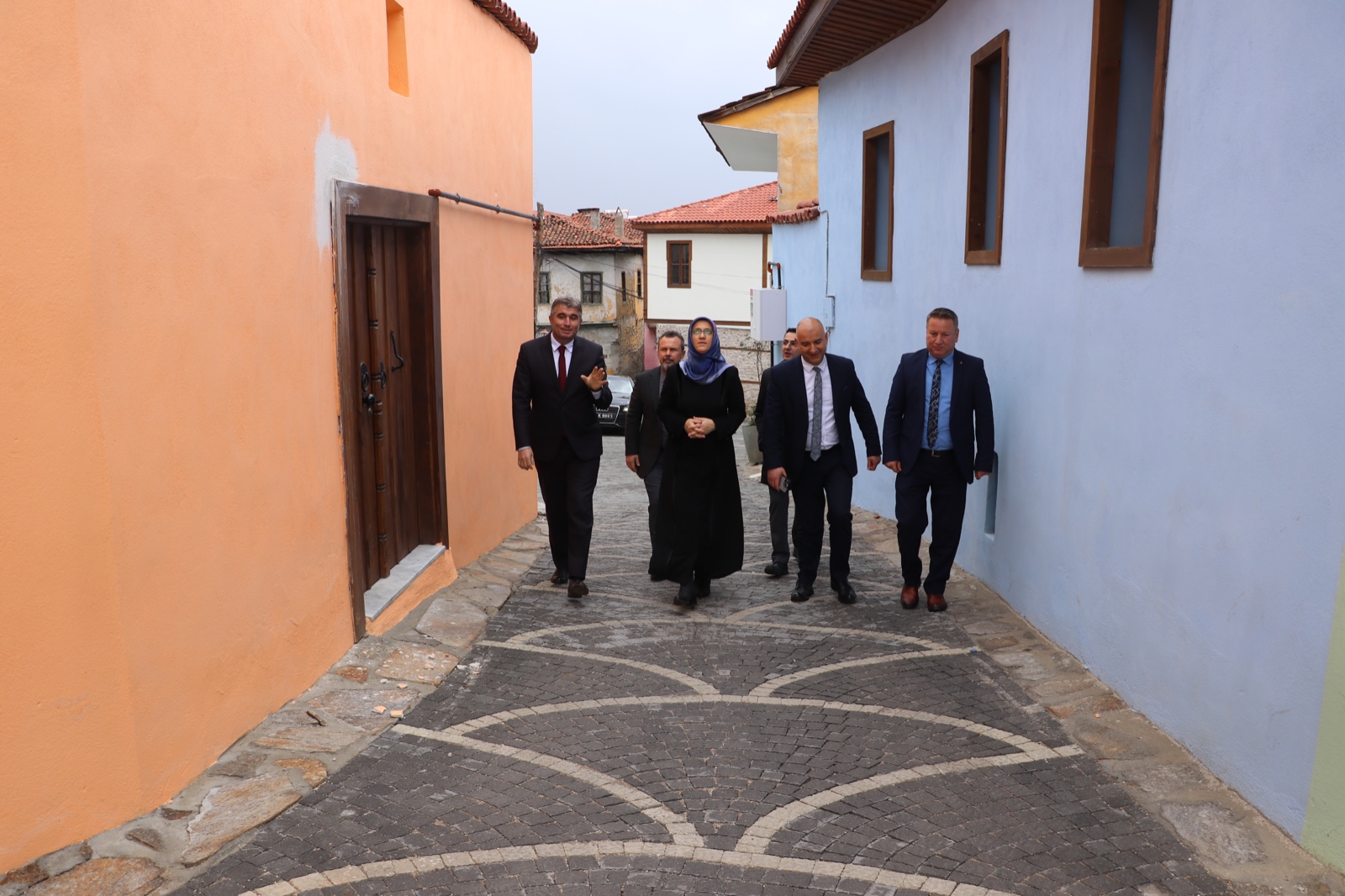 Belediye ziyaretinin ardından Belediye Başkanı Hüseyin Tosun’un davetiyle kentsel sit alanında bulunan tarihi Kula Evleri’ne kısa bir saha inceleme gezisi yapıldı. Saha gezisinde Başkan Tosun, Kula Belediyesi’nin yürüttüğü restorasyon ve sokak sağlıklaştırma çalışmalarıyla ilgili Rektör Kibar’a bilgiler verdi.