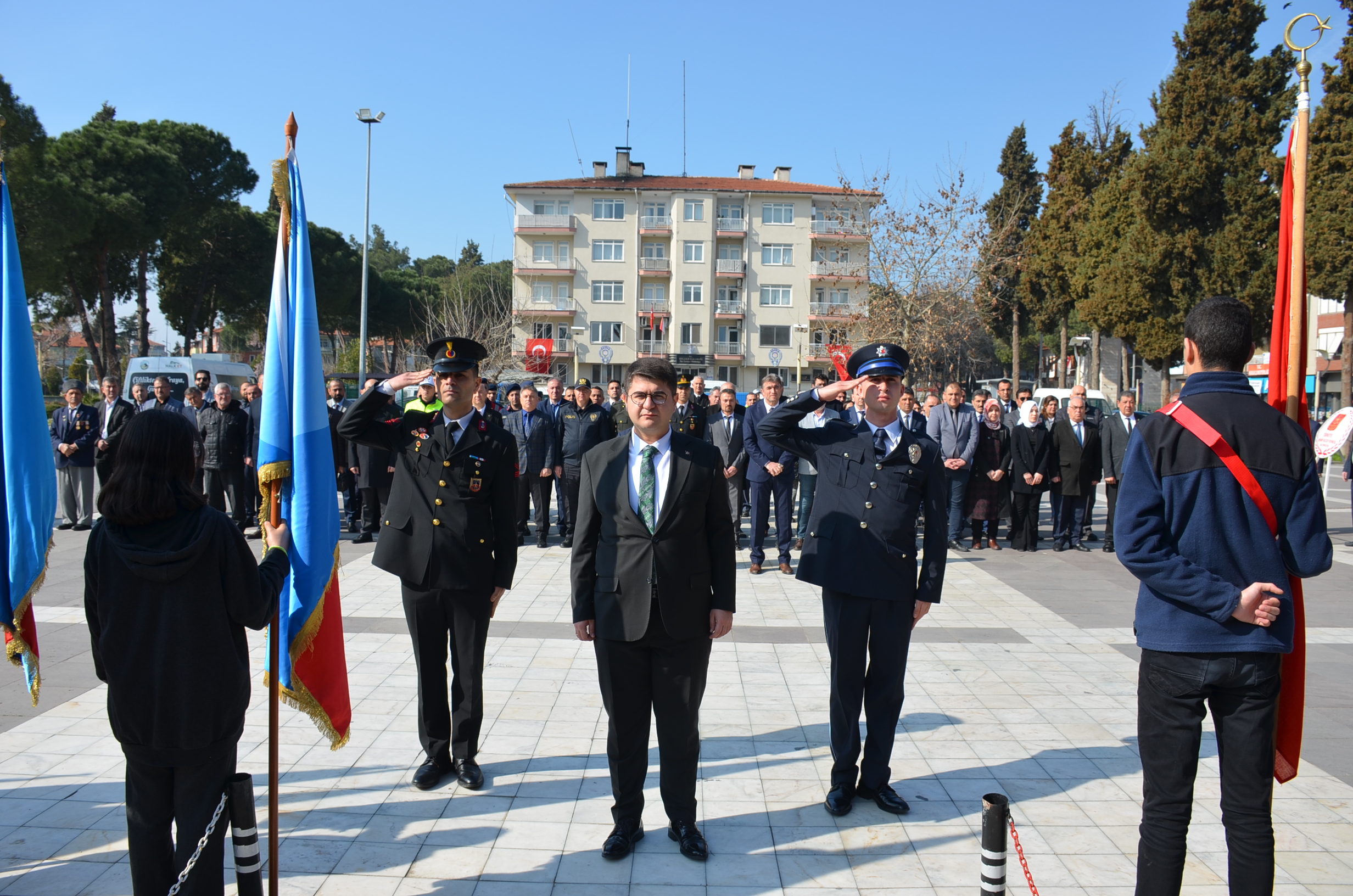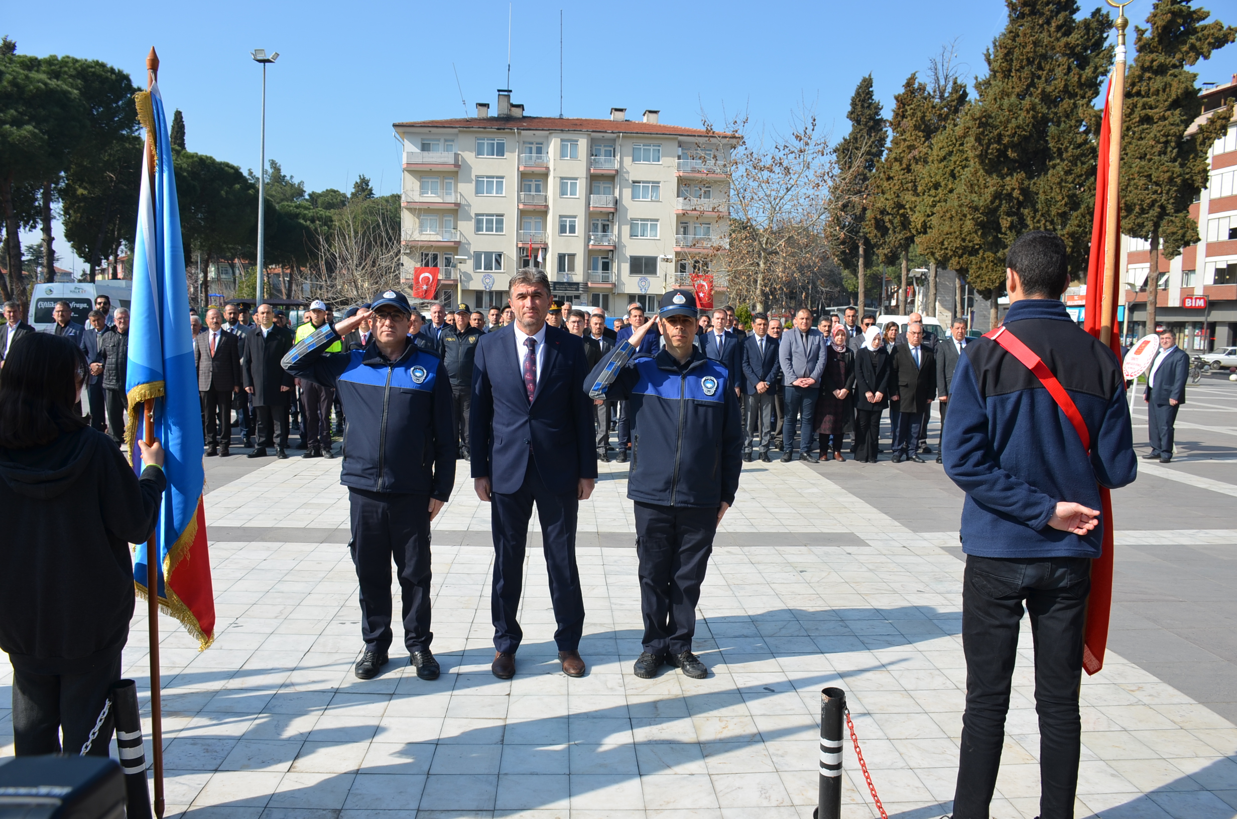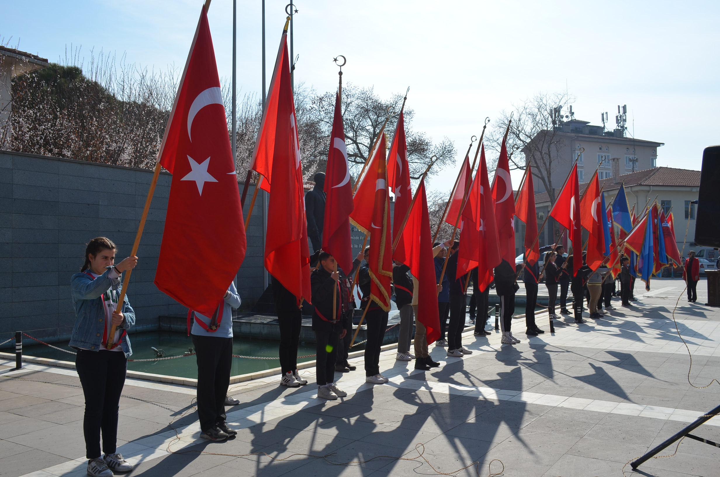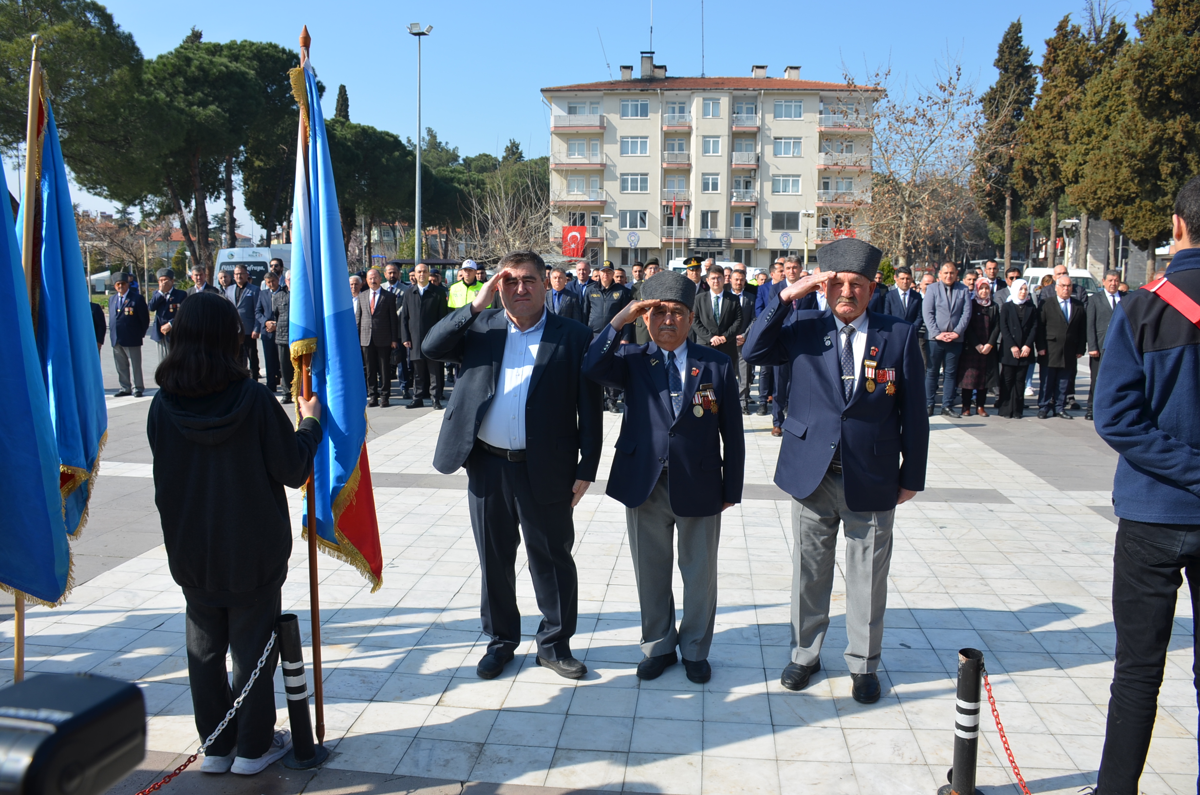 Program ilk olarak Kent Meydanında bulunan Atatürk anına çelenk sunulmasıyla başladı, çeleklerin sunumunun ardından, saygı duruşu ve İstiklal marşı okundu. Kula Şehitliğini ziyaret edildi, şehitlikte Çanakkale Şehitleri ve tüm şehitlerimiz adına Kuran tilaveti ve dualar edildi.