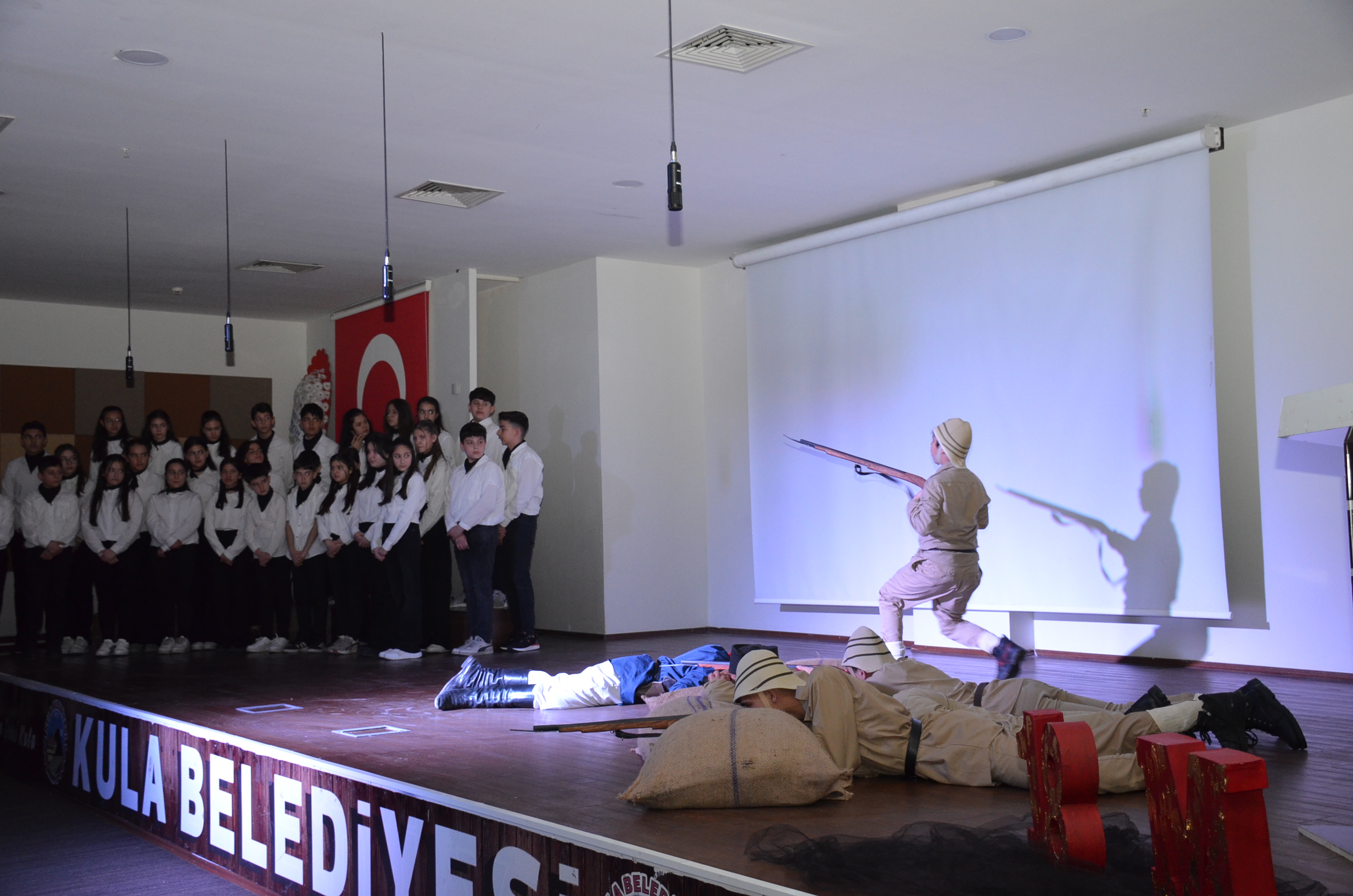Şehitlik ziyareti sonrasında kültür merkezinde hazırlanan programda ilk olarak saygı Duruşu ve İstiklal Marşı okundu. Program da günün anlam ve önemini belirten konuşmayı Kula Kaymakamı Ömer Ahmet Özdemir yaptı, yarışmalarda dereceye giren öğrencilere ödülleri verildi. Bir Diriliş Destanı Çanakkale Anma programı sunuldu.