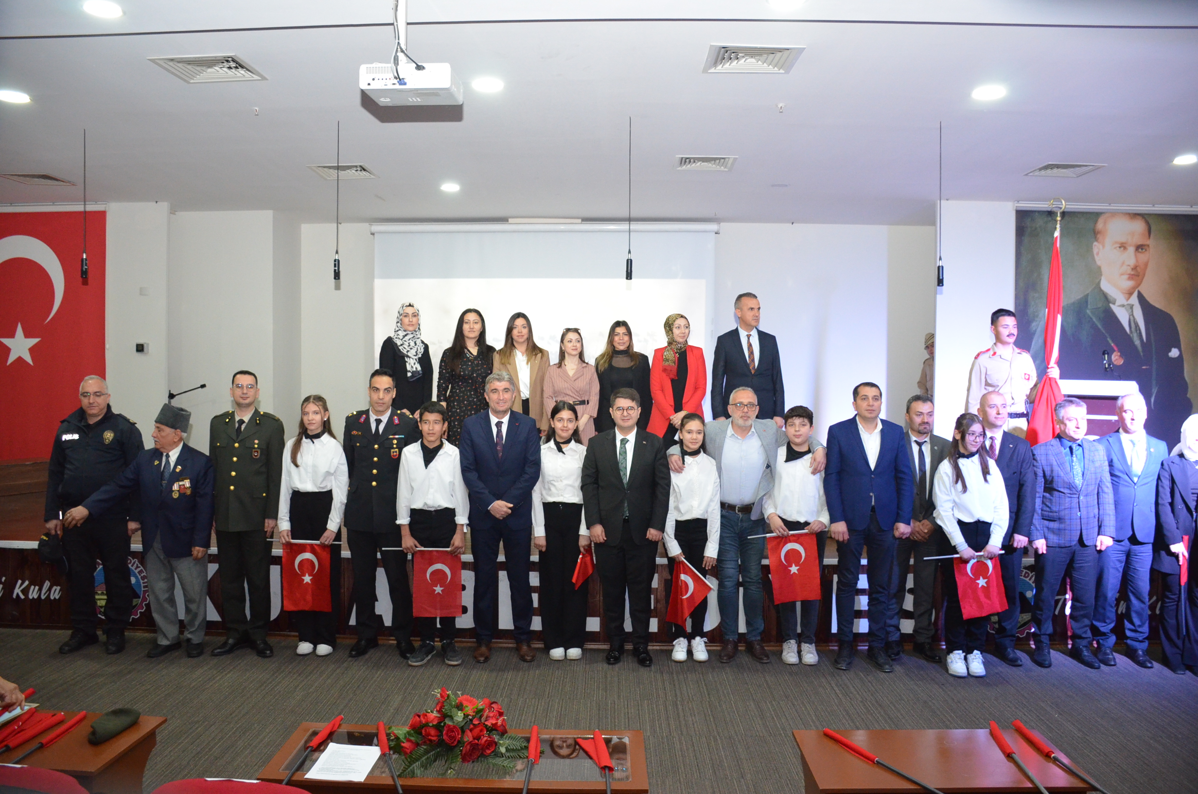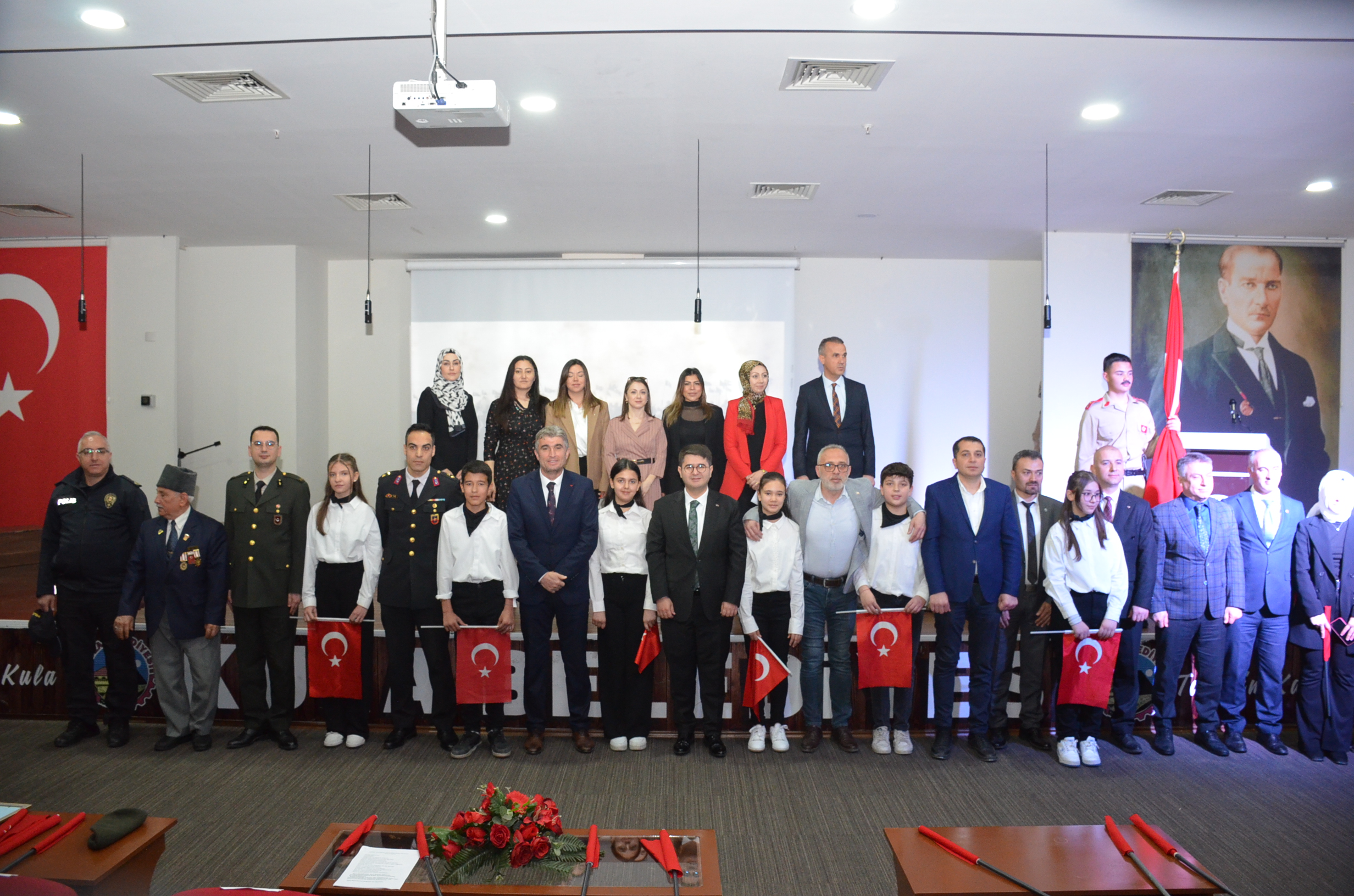 Programa Kula Kaymakamı Ömer Ahmet Özdemir, Kula Belediye Başkanı Hüseyin Tosun, Kamu kurum müdürleri, daire amirleri, okul müdürleri, öğretmeler ve öğrenciler katıldı.