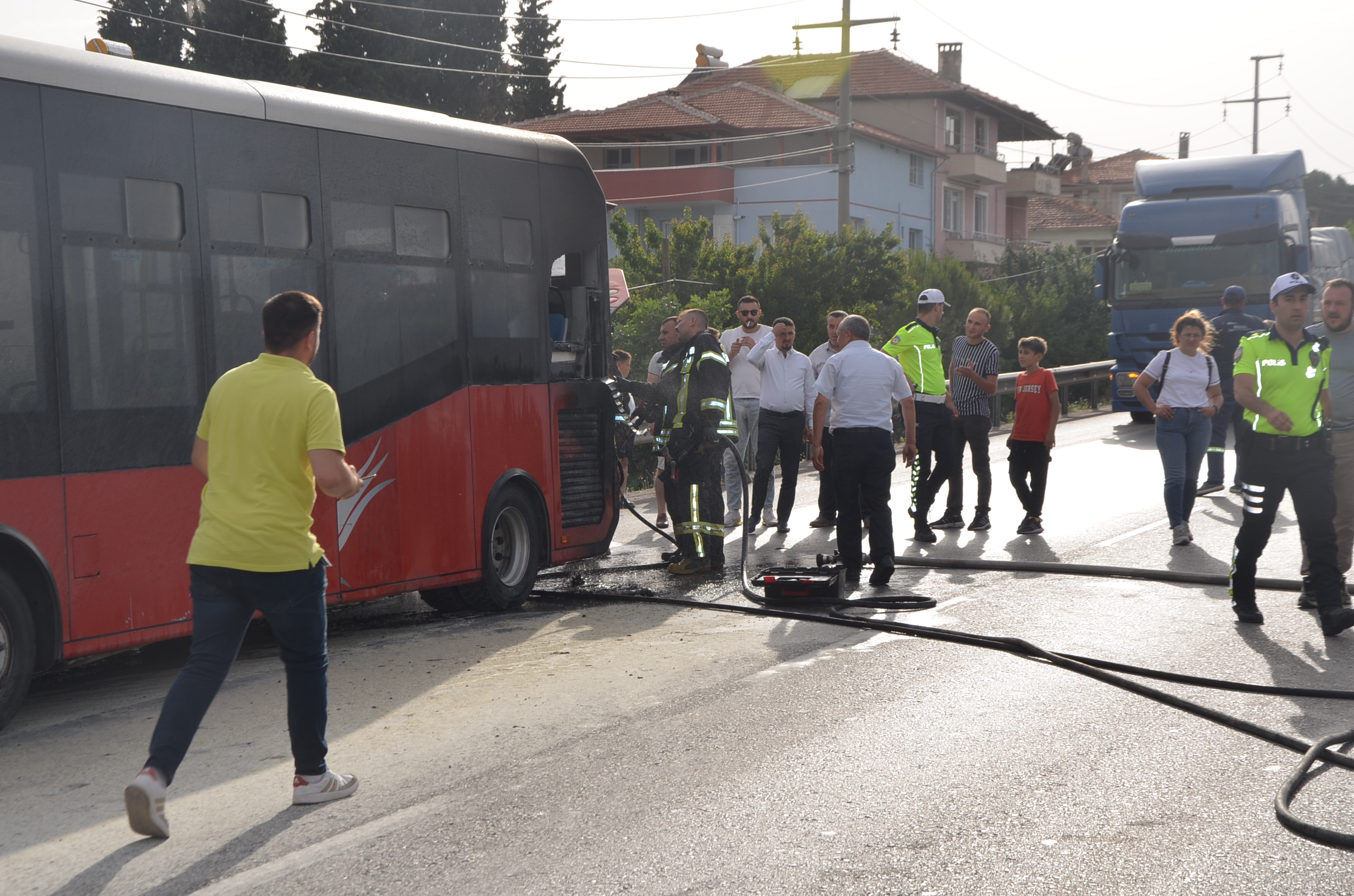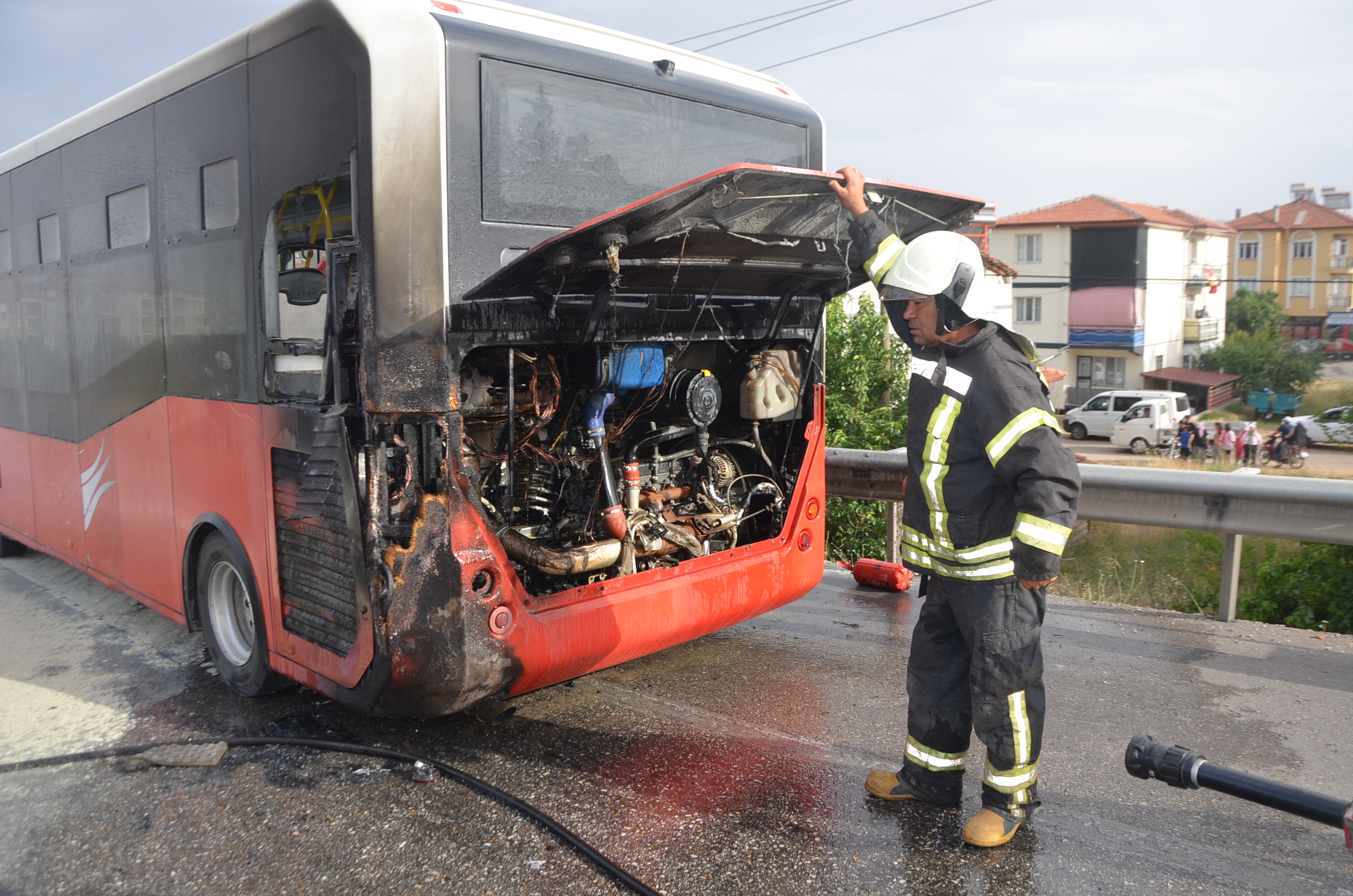 Manisa Büyükşehir’e ait şehirler arası yolcu taşımacılığı yapan 45 AG 529 plakalı yolcu otobüsü seyir halindeyken henüz sebebi belirlenemeyen nedenle yandı. İçinde yolcularda bulunan otobüsün yandığını fark eden şoför hemen aracı durdurup yolcuları tahliye etti. Olay yerine gelen İtfaiye ekipleri yangını kontrol altına aldı. Kula İlçe Stadyumu yakınlarında çıkan araç yangınında yaralı olmazken yangınla ilgili soruşturma başlatıldığı öğrenildi.