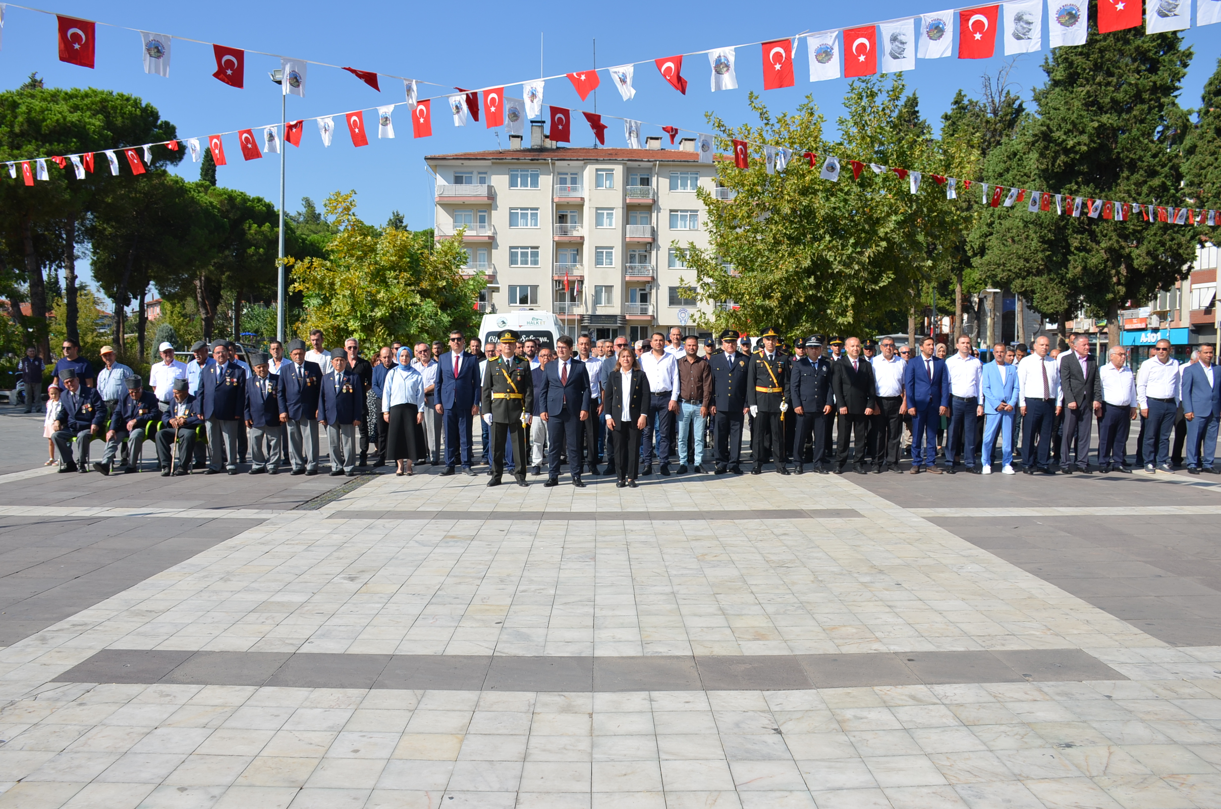 30 Ağustos Zafer Bayramı’nın 102. yılı kutlamaları Yunus Emre ve Şehit Ömer Halisdemir Kent Meydanında Atatürk Anıtı önünde çelenk sunumu ile başladı. Kaymakamlık ve Belediye Başkanlığı çelenklerinin sunulması sonrasında Atatürk, silah arkadaşları, tüm şehit ve gaziler için 1 dakikalık saygı duruşu ve akabinde İstiklal marşı okundu.