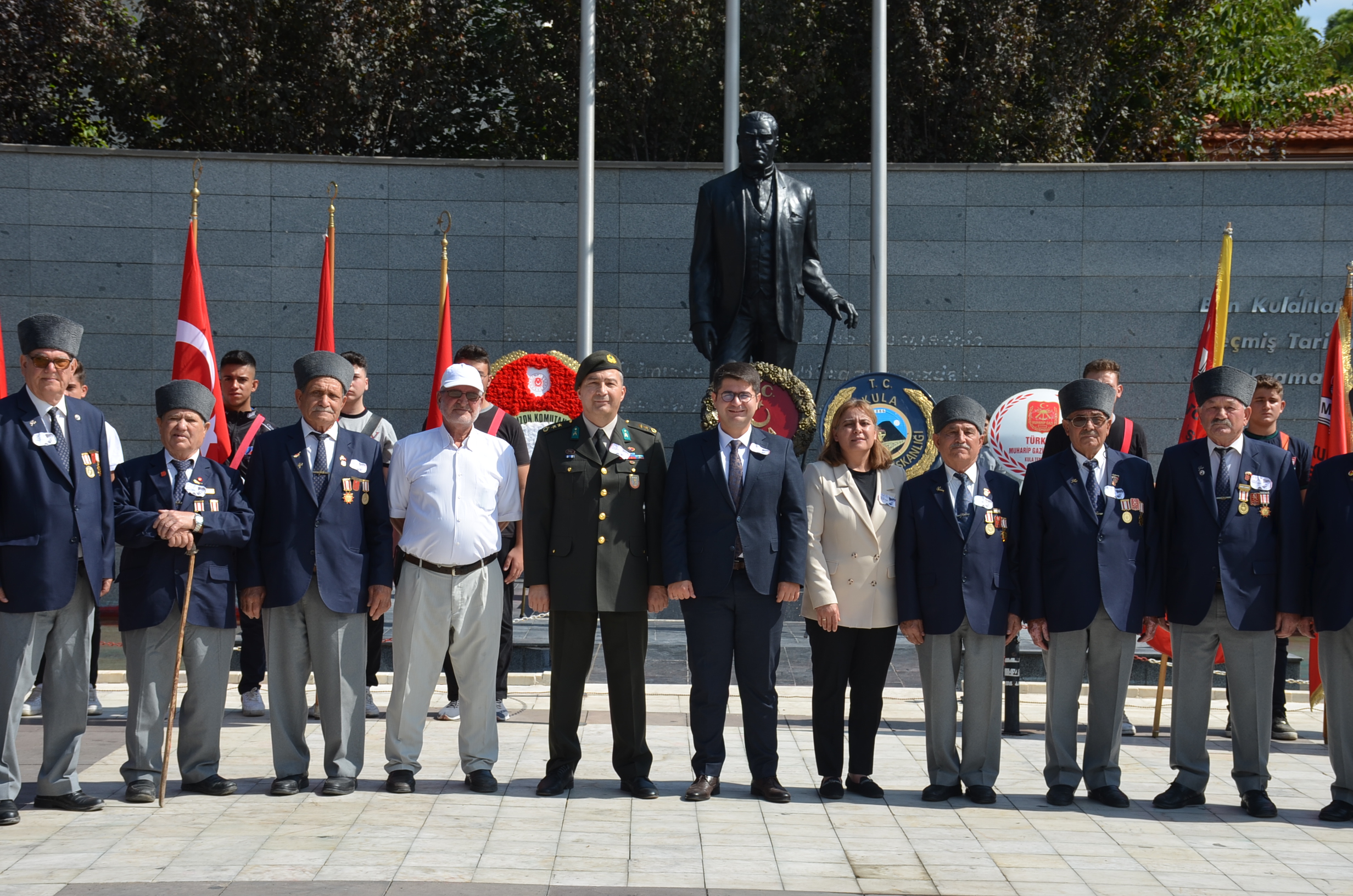 Programa Kula Kaymakamı Ömer Ahmet Özdemir, Garmizon Komutanlığı adına Yarbay Ahmet Şentürk, Kula Belediye Başkan Vekili Semra Gündüz, gaziler, kamu kurum müdürleri, daire amirleri, siyasi parti temsilcileri, okul müdürleri, öğretmenler ve öğrenciler katıldı.