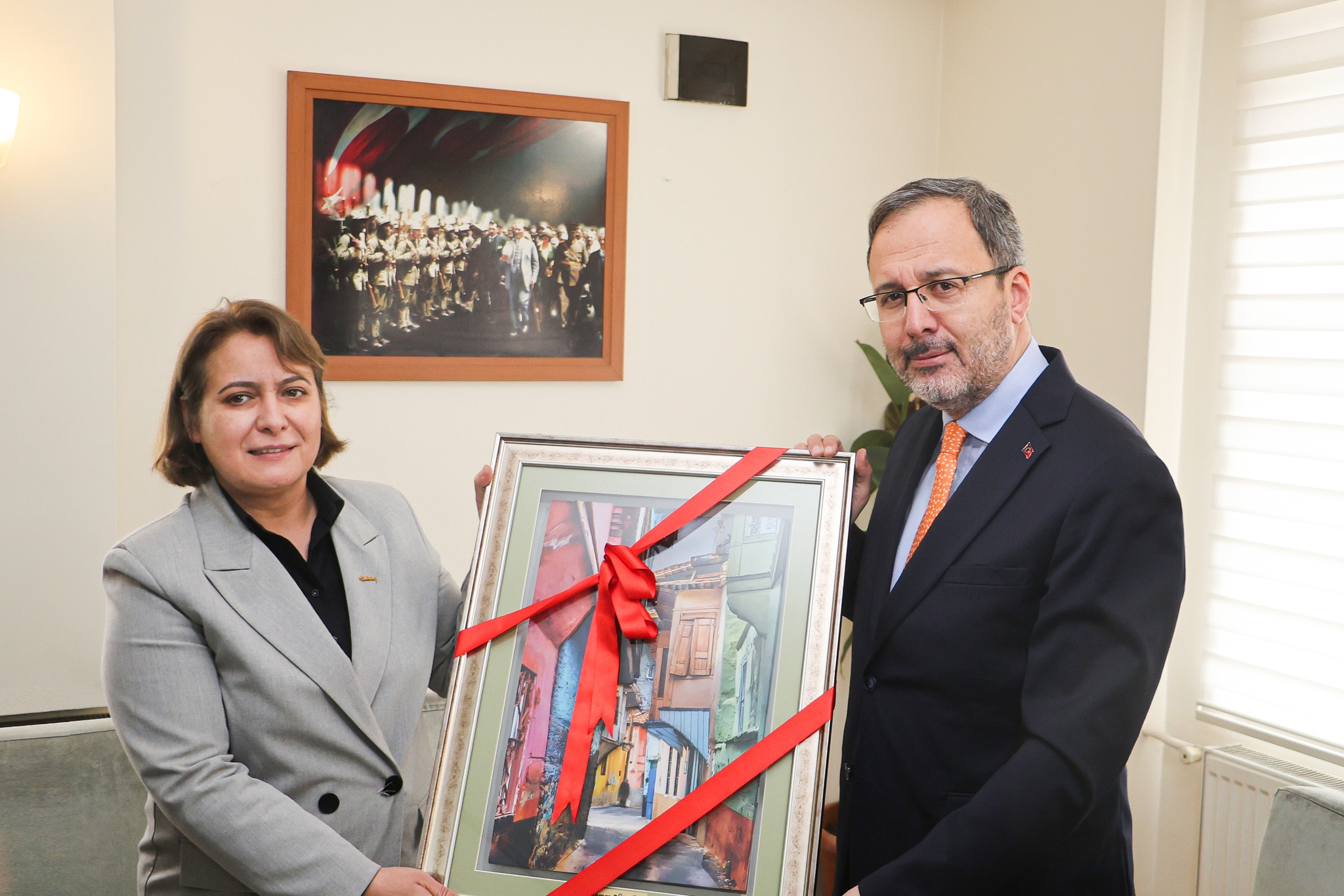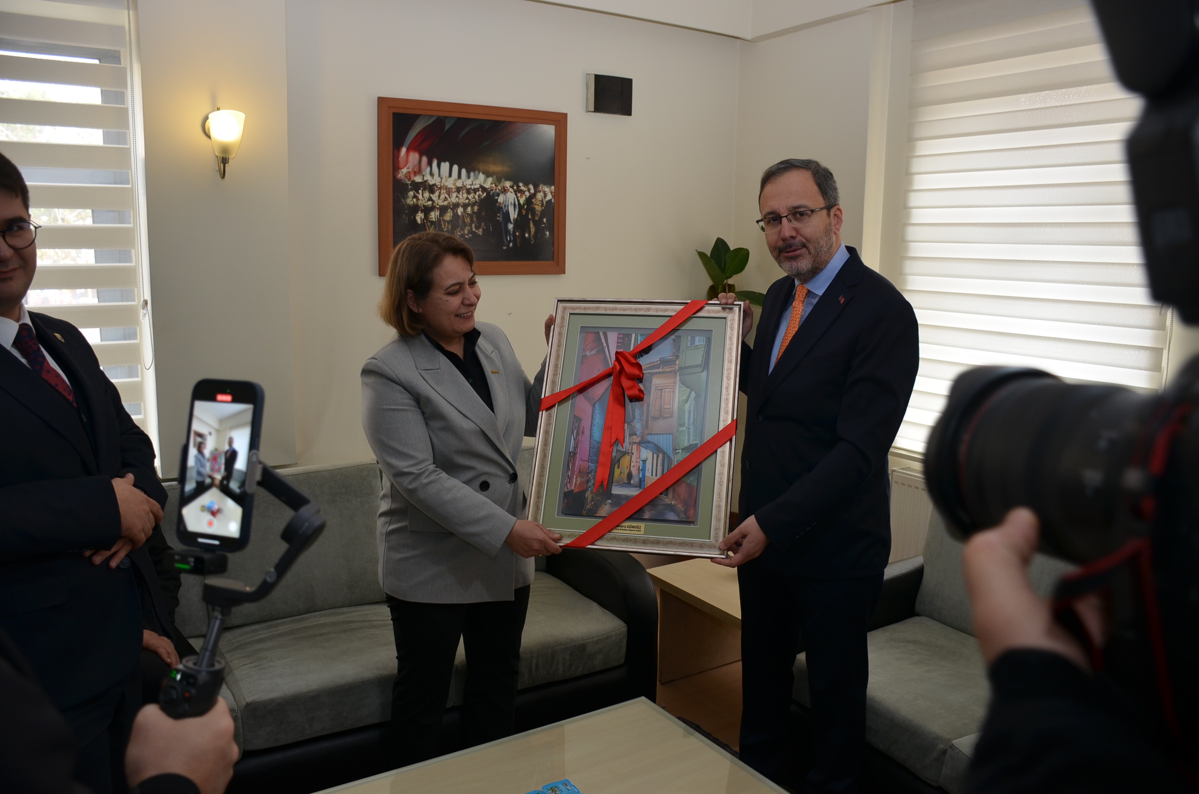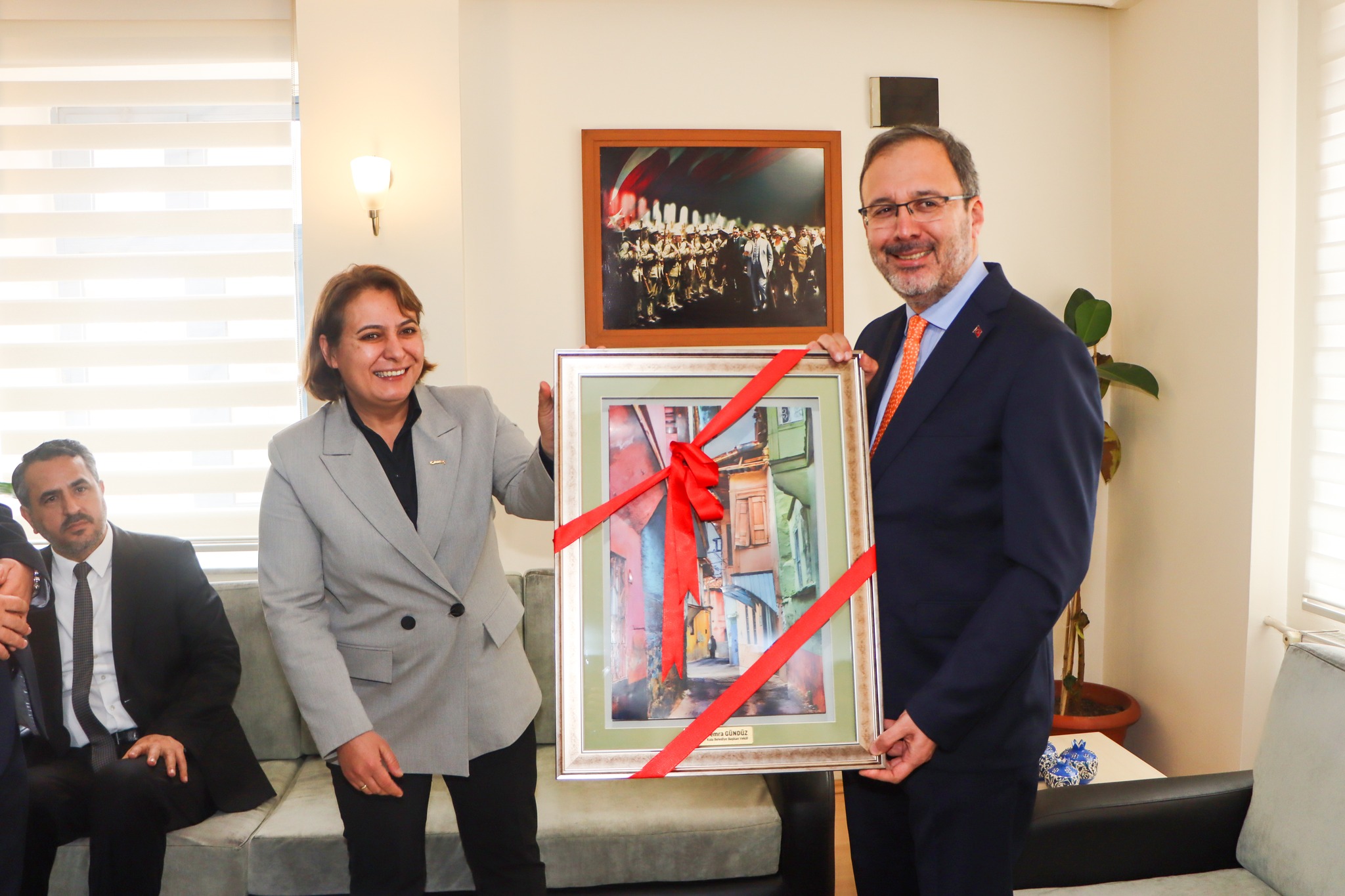 66. Hükümet Gençlik ve Spor Bakanı, Ak Parti İzmir Milletvekili Dr. Mehmet Muharrem Kasapoğlu, Kula Belediye Başkan Vekili Semra Gündüz’ü makamında ziyaret etti.
