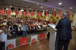 Saat 17.00’da Milliyetçi Hareket Partisinin Kayseri’de düzenlenen mitingi canlı olarak programa katılanlara barkovizyondan izlendi.
