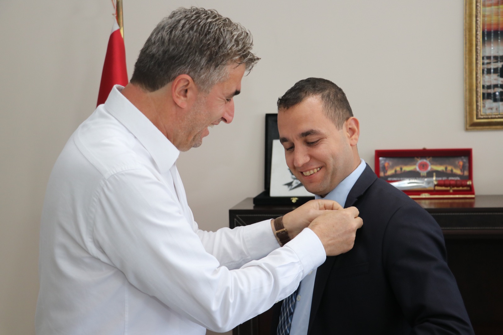 Cumhurbaşkanlığının 2022/392 Sayılı Kararnamesi ile Kula Kaymakamlığına atanan Birkan Tatlısöz’e, Kula Belediye Başkanı Hüseyin Tosun, Belediye Meclis Üyeleri ile birlikte tebrik ziyaretinde bulunuldu. Tebrik ziyaretinde Başkan Tosun, Kula’mız ve hemşehrilerimiz için birlikte nice güzel hizmetler yapmayı temenni etiğini ifade ederek Kaymakam Tatlısöz’e tarihi Kula Evleri’nin bir maketini, ‘Yaşayan Müze Kula’ kitapçığı ve Kula rozeti takdim etti.