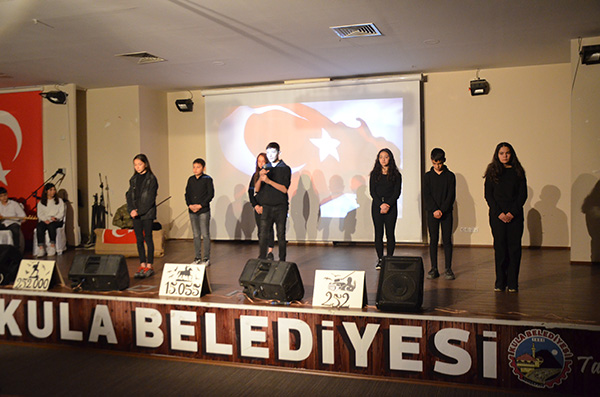 Şehitlik ziyareti sonrasında kültür merkezinde Rafet Üçelli Orta Okulunun hazırlamış olduğu programda ilk olarak saygı Duruşu ve İstiklal Marşı okundu. Program da günün anlam ve önemini belirten konuşma yapıldı, öğrencilerin hazırlamış olduğu oratoryo, şiirler ve sinevizyon gösterilerinin ardından şiir ve kompozisyon yarışmalarında derece yapan öğrencilere ödülleri verildi. Son olarak Kula Kaymakamı Kemal Duru günün anlam ve önemini belirten konuşmasını yaptı.