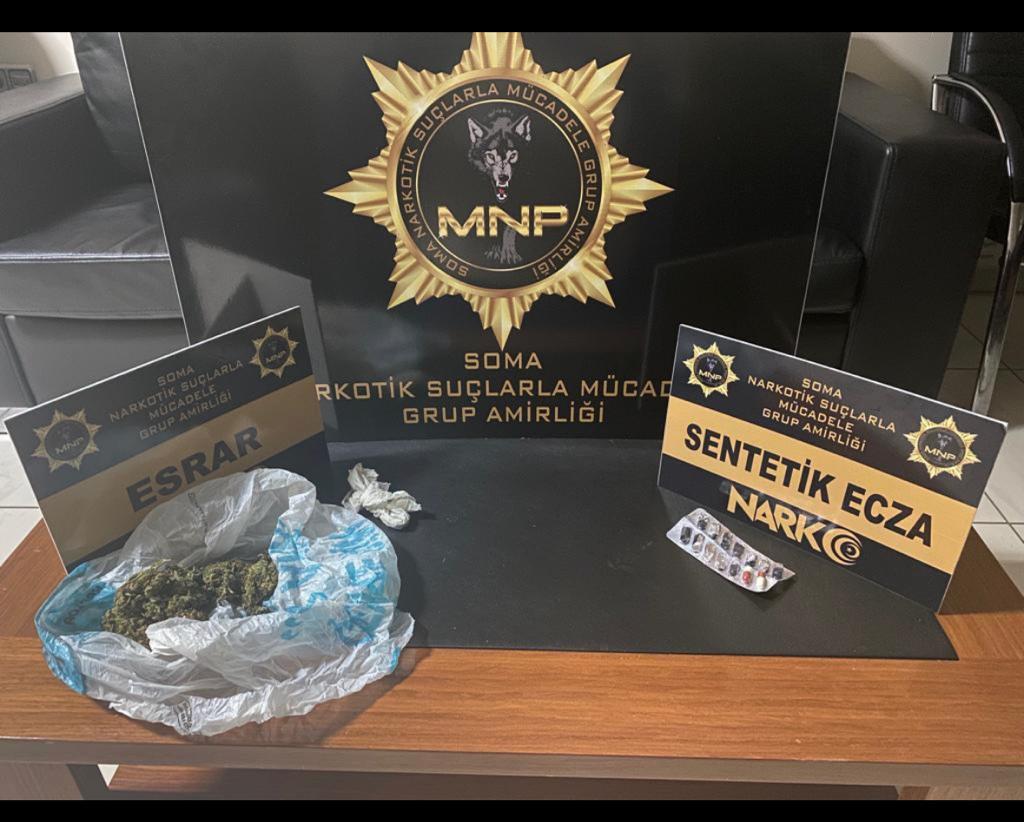 Manisa İl Emniyet Müdürlüğü Soma Narkotik Suçlarla Mücadele Grup Amirliği görevlilerimizce uyuşturucu veya uyarıcı madde…