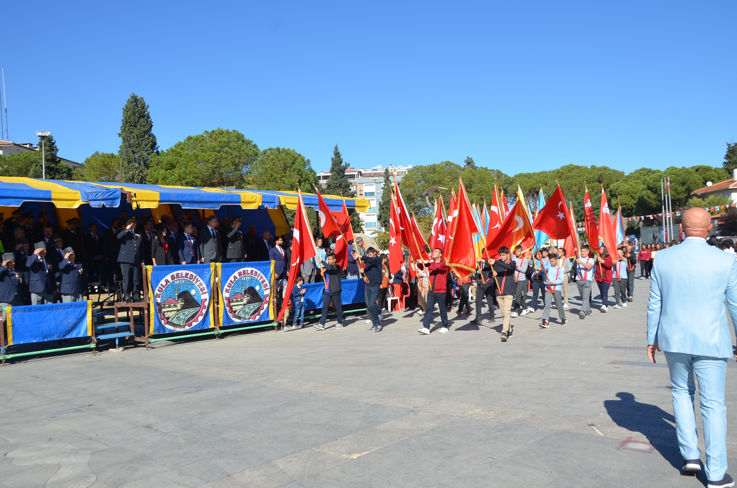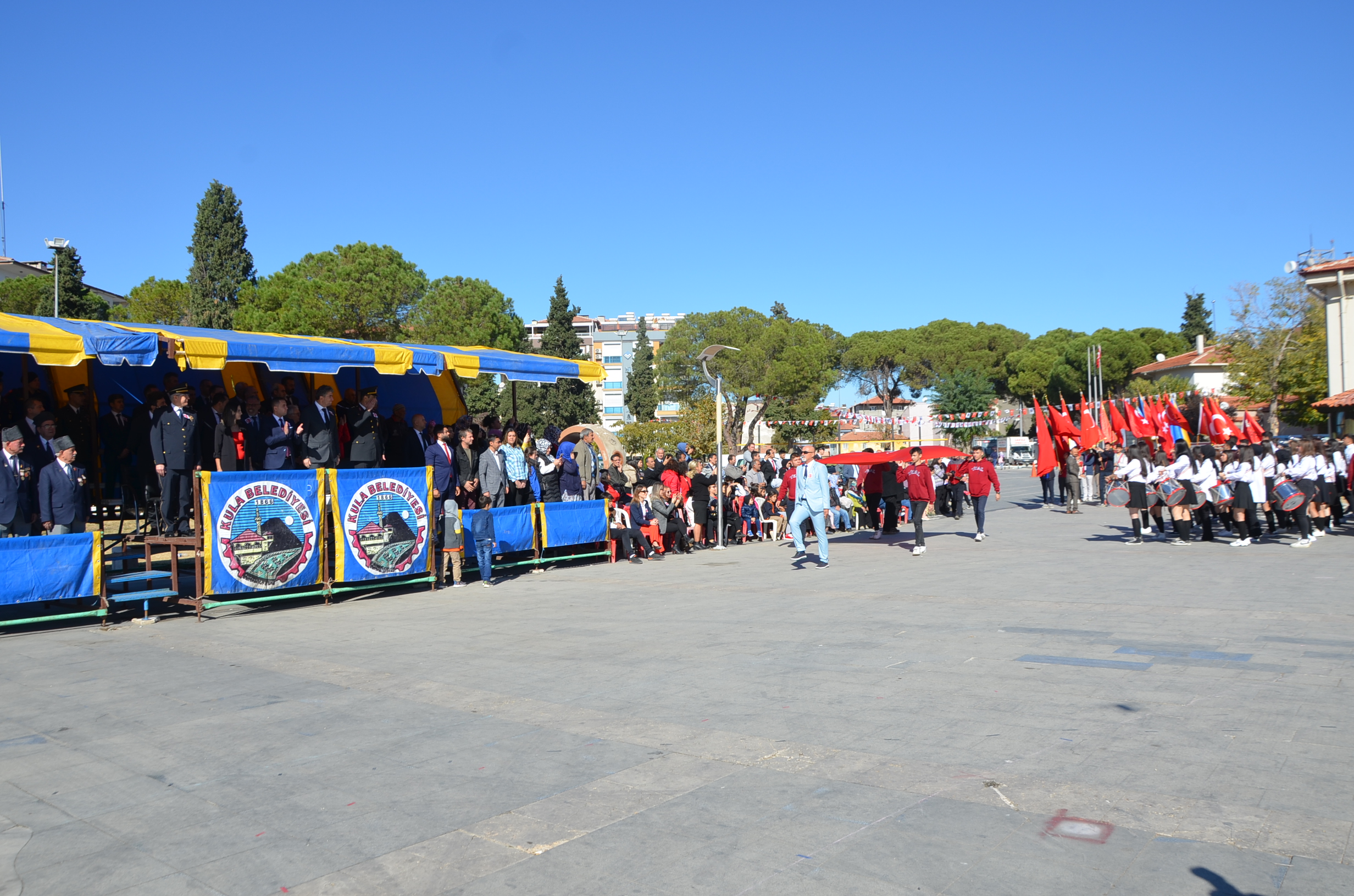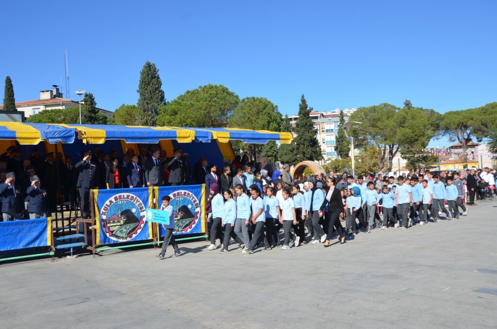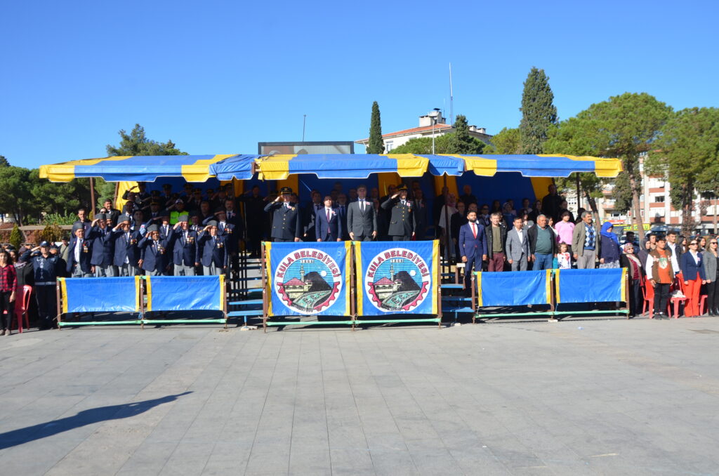 Cumhuriyetimizin 99. Yılı münasebetiyle Kula Kent Meydanında tören düzenlendi. Programda saygı duruşu ve İstiklal Marşı ile başladı. Günün anlam ve önemine belirten konuşmayı Kula Kaymakamı Birkan Tatlısöz yaptı. Yaren ekibi gösterileri, şiirlerin okunması ve Kula’da Değerli zamanlar müzik ekibinin gösterileri ile devam eden programda şiir ve kompasizyon yarışmalarında derece yapan öğrencilere ödüller verildi. Bando ekibinin eşliğinde tören geçişi sonrasında program son buldu.
