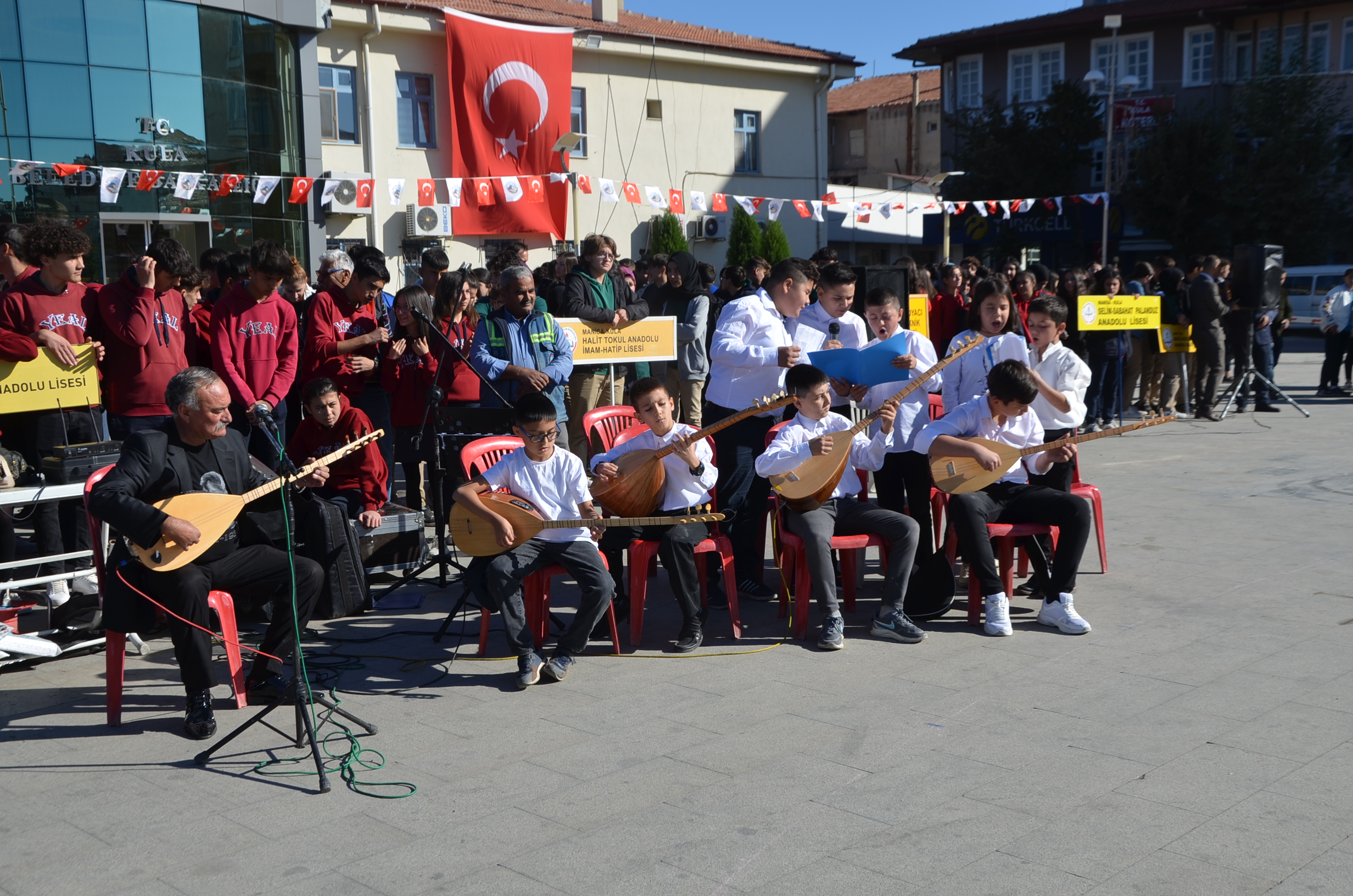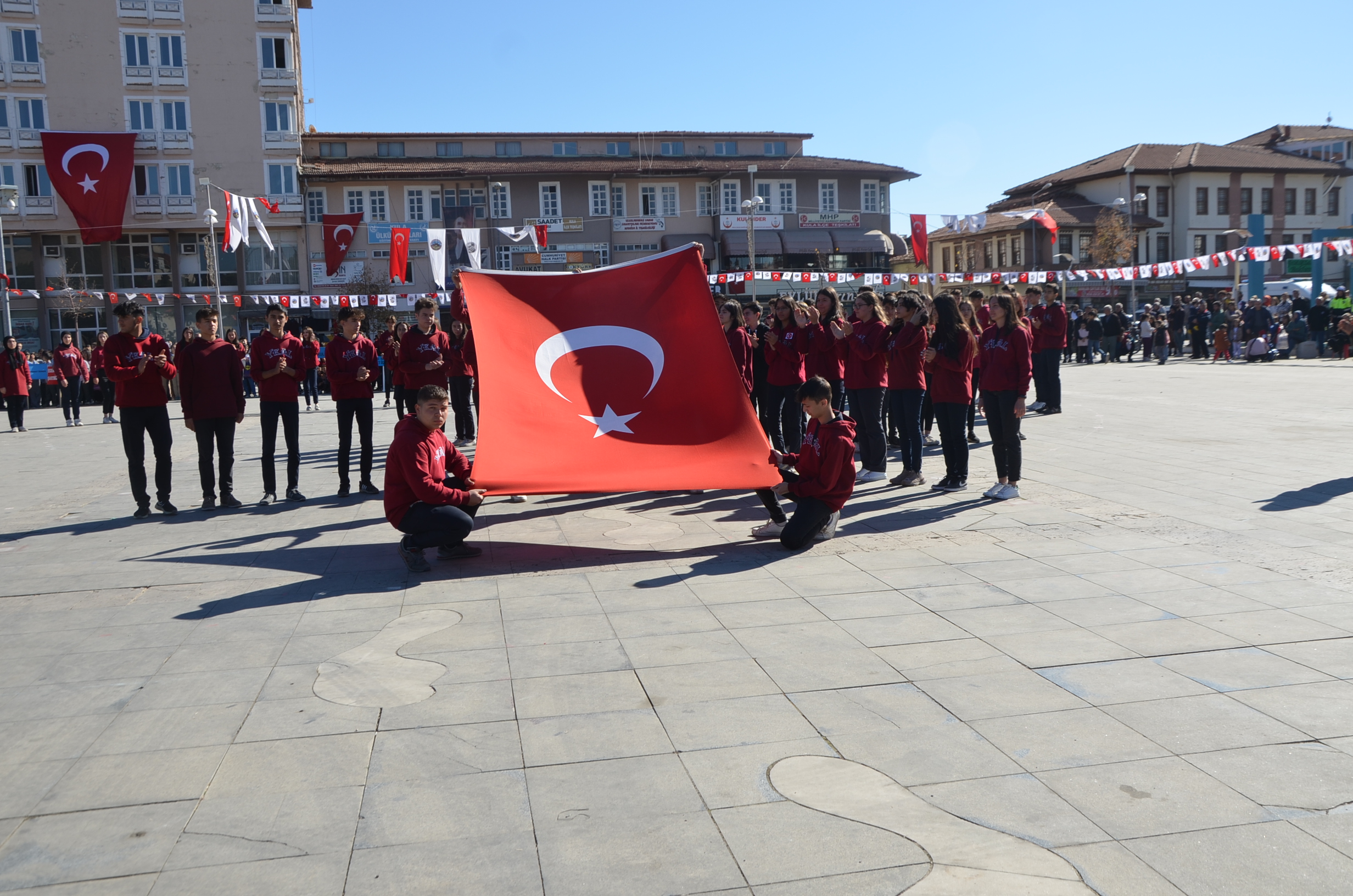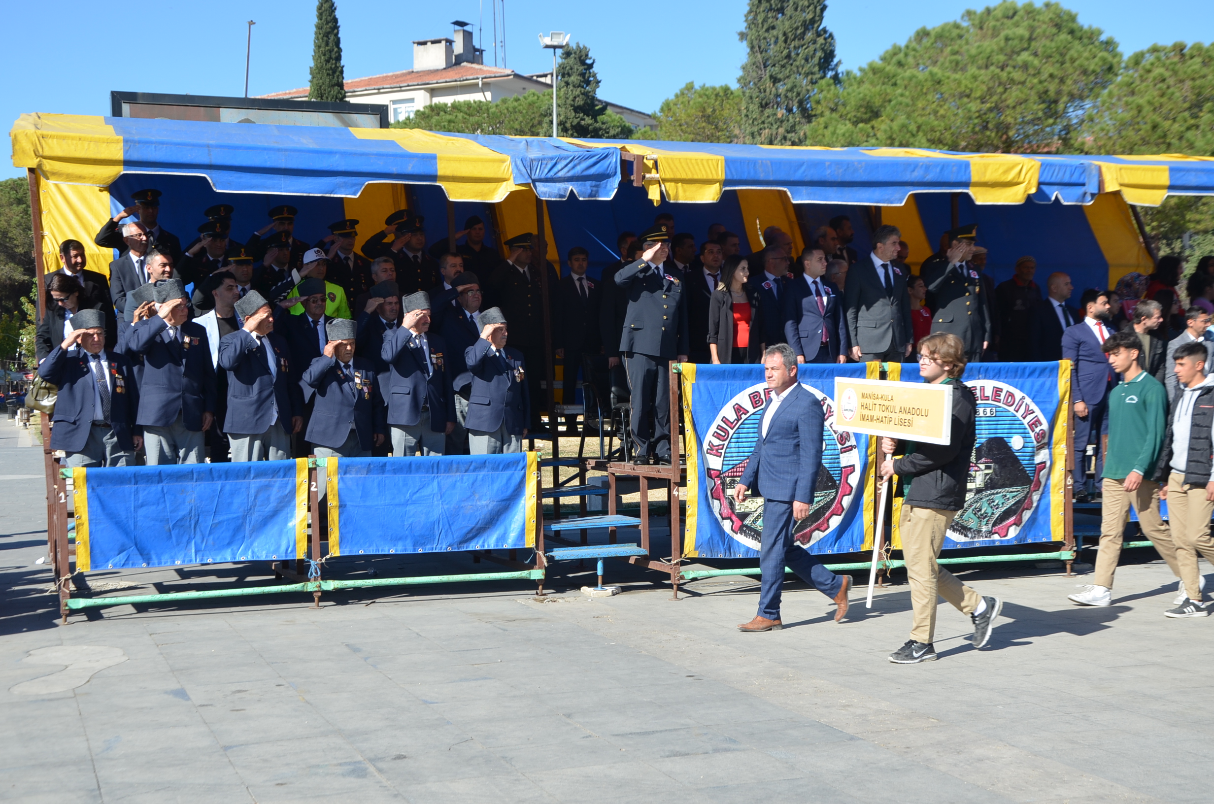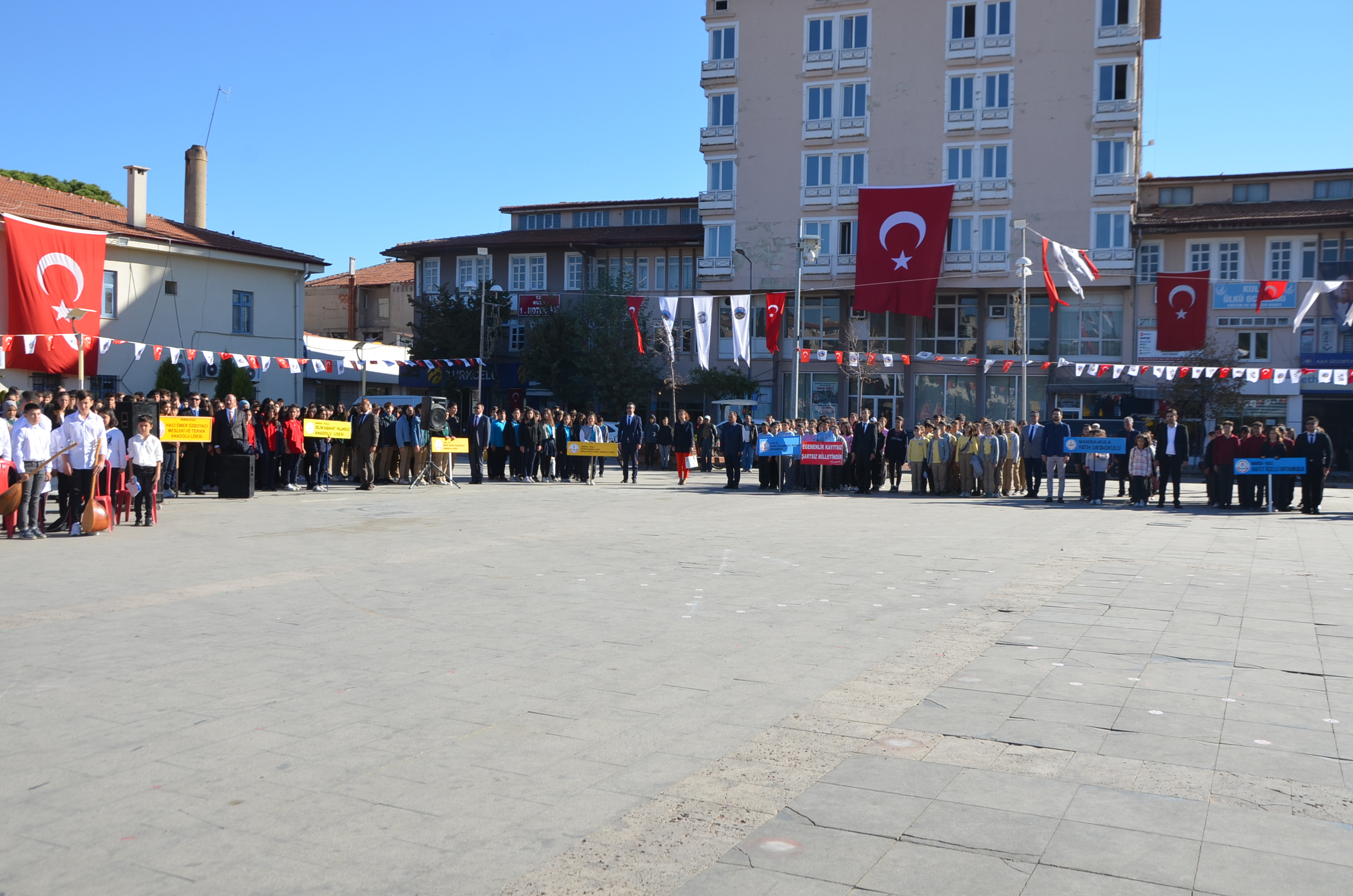 Cumhuriyetimizin 99. Yılı münasebetiyle Kula Kent Meydanında tören düzenlendi. Programda saygı duruşu ve İstiklal Marşı ile başladı. Günün anlam ve önemine belirten konuşmayı Kula Kaymakamı Birkan Tatlısöz yaptı. Yaren ekibi gösterileri, şiirlerin okunması ve Kula’da Değerli zamanlar müzik ekibinin gösterileri ile devam eden programda şiir ve kompasizyon yarışmalarında derece yapan öğrencilere ödüller verildi. Bando ekibinin eşliğinde tören geçişi sonrasında program son buldu.