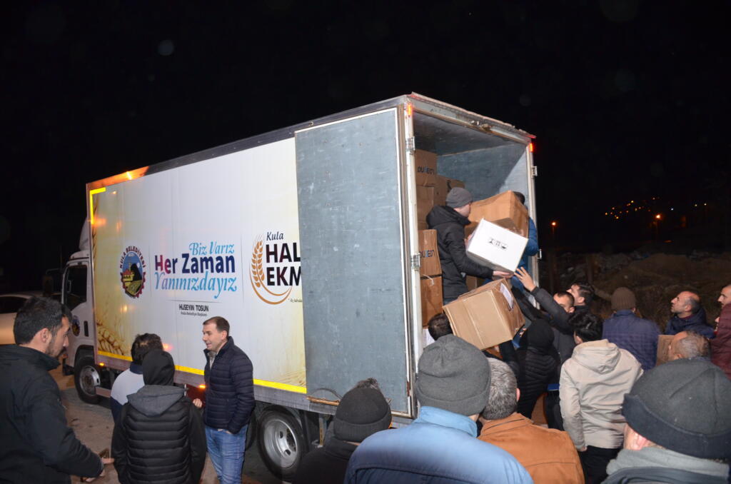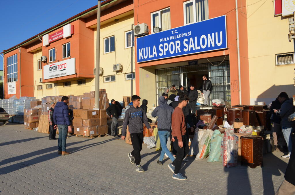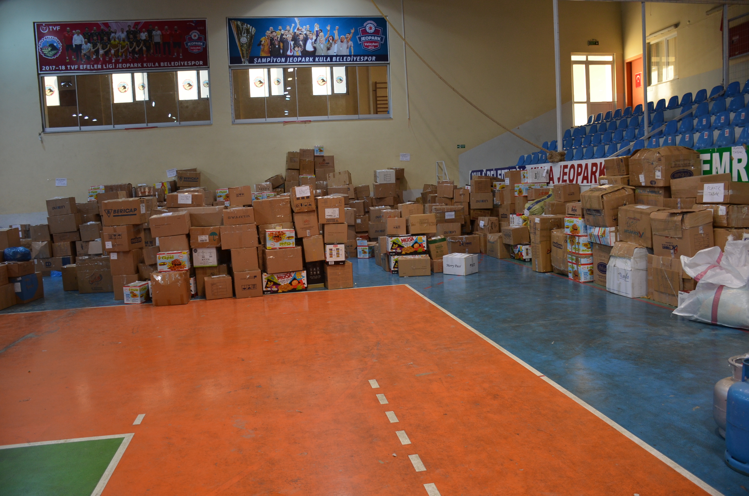 7,7 ve 7,6 şiddetinde olan depremin etkilediği 10 İl ve ilçelere yardım tırları aralıksız gidiyor. Büyük yıkıma sebep olan deprem bölgesinde ihtiyaç olan yardım paketleri Kula Spor Salonundan yüklenerek ihtiyaca göre il ve ilçelere dağılıyor.