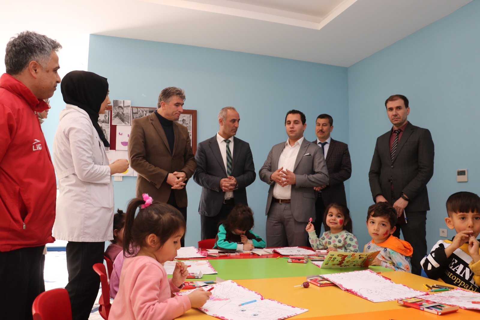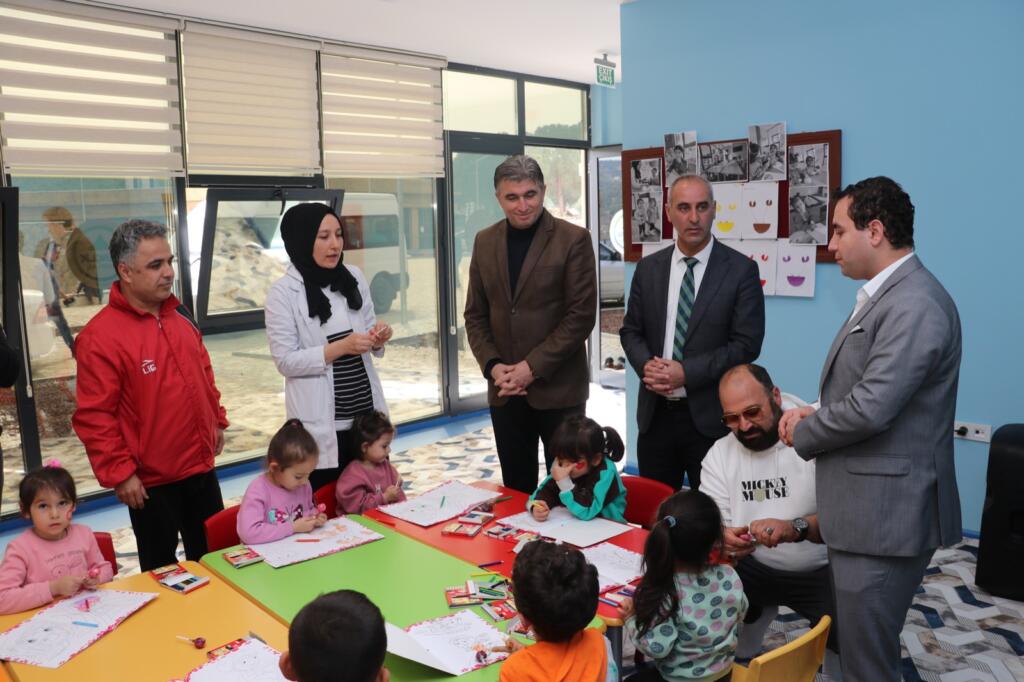 Deprem bölgesinden Kula’ya gelen deprem mağduru ailelerin bir bölümünün misafir edildiği Kula Gençlik Kampı’nda çocukları depremin etkisinden korumaya; sosyal, duygusal ve psikolojik olarak desteklemeye yönelik çocuk etkinlik atölyesi oluşturuldu. Hayırseverlerin de destekleriyle oluşturulan etkinlik atölyesinde çocukların yaşlarına uygun resim, müzik, el becerisi geliştiren çeşitli oyun ve etkinlikler gerçekleştiriliyor. Çocukların hem eğlenip hem öğrendiği atölyeyi, Kula Kaymakamı Birkan Tatlısöz, Kula Belediye Başkanı Hüseyin Tosun, İlçe Milli Eğitim Müdürü Zakir Okulmuş, Kula SYDV Müdürü İsmail Danaç ile birlikte ziyaret etti. Eğitmenlerden faaliyetler hakkında bilgi alan Kaymakam Tatlısöz, Başkan Tosun ve beraberindekiler çocuklarla bir süre vakit geçirdi. Kampta konaklayan vatandaşlarla da bir araya gelen Kaymakam Tatlısöz, Başkan Tosun ve beraberindeki heyet talepler ve yapılan çalışmaları değerlendirdi.