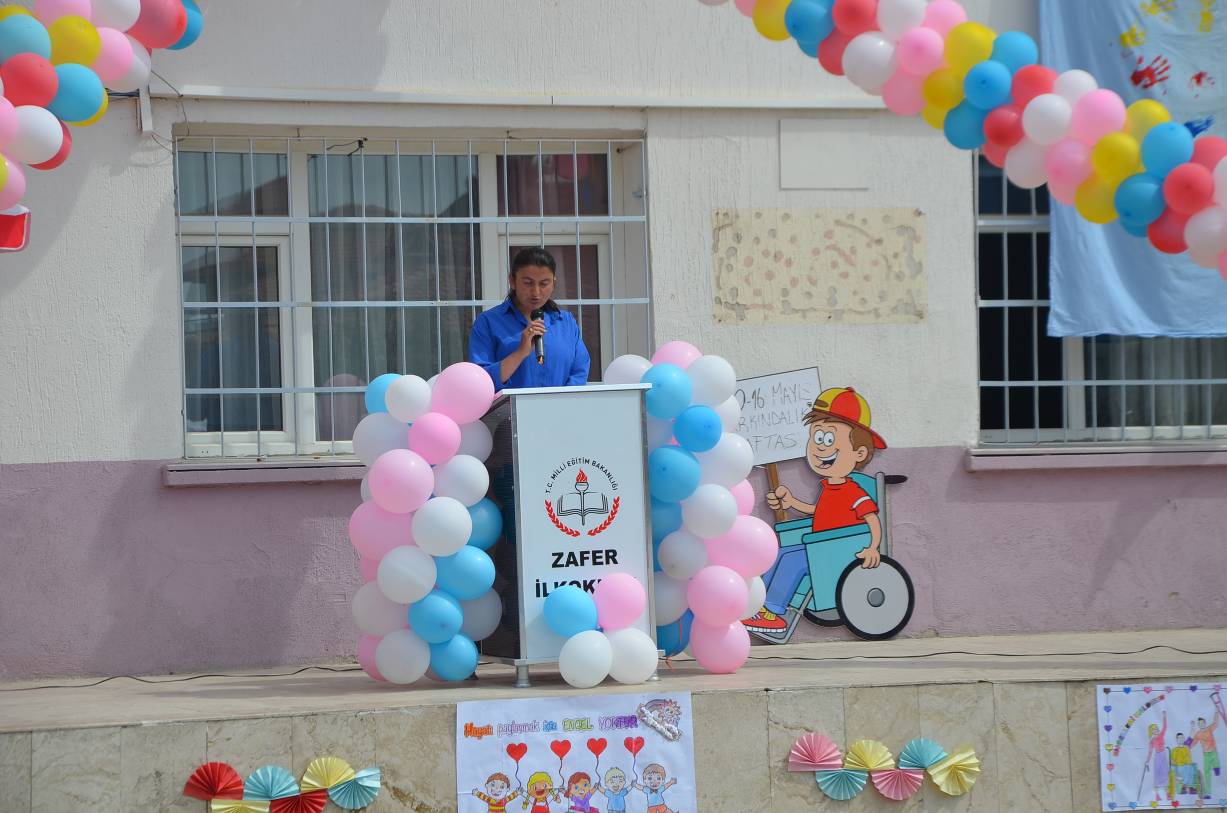 Zafer İlkokulu bahçesinde düzenlenen program saygı duruşu ve İstiklal Marşının okunmasıyla başladı. Günün anlam ve önemini belirten konuşmayı Özel Eğitim öğretmeni yaptı, öğrencilerin hazırlamış olduğu şiirlerin okunması, dans gösterileri, halk oyunu gösterileri ile devam etti.