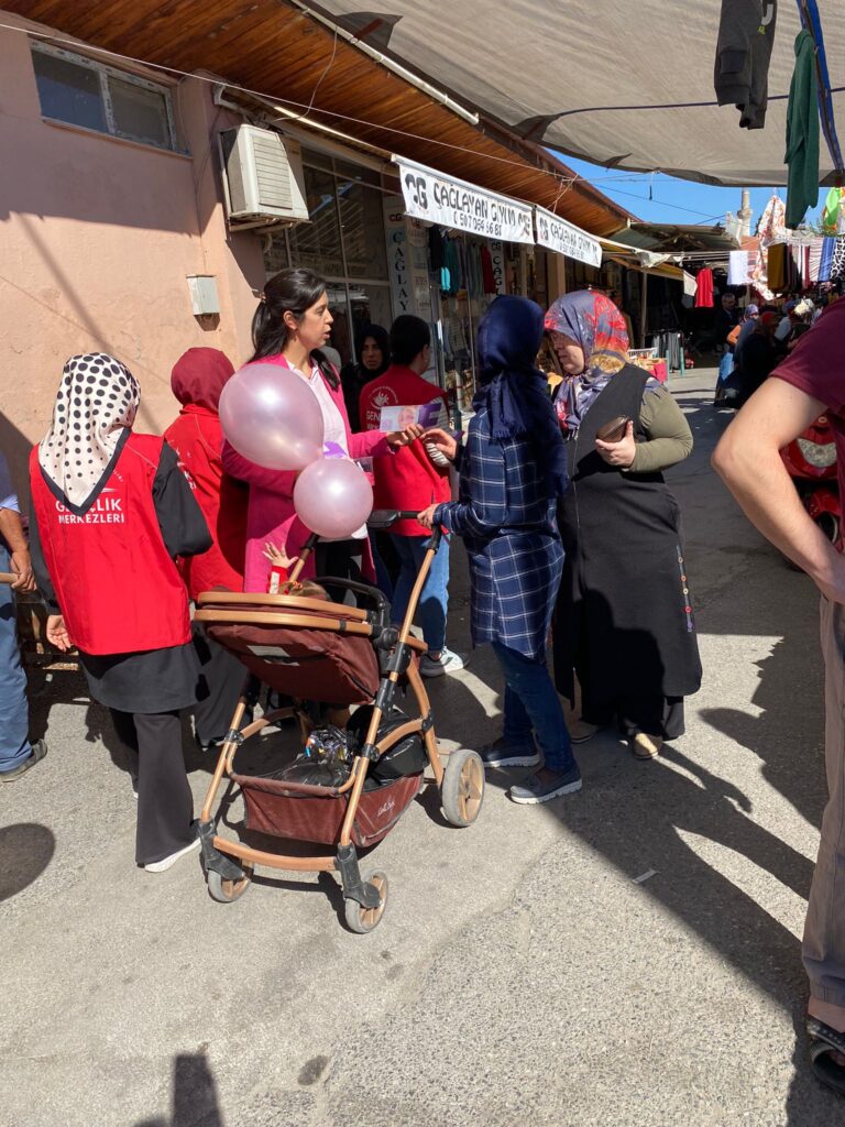 Meme Kanserine Farkındalık oluşturmak taramaların önemine dikkat çekmek için bugün Pazar yerinde ve İlçe Sağlık Müdürlüğü bahçesinde bilgilendirme çalışmaları yaptık. 1-31 Ekim Meme Kanseri Farkındalık ayı boyunca bilgilendirme çalışmalarımız devam edecektir. Gençlik Spor İlçe Müdürlüğü Gençlik Liderlerine de faaliyetimize katıldıkları için teşekkür ederim.