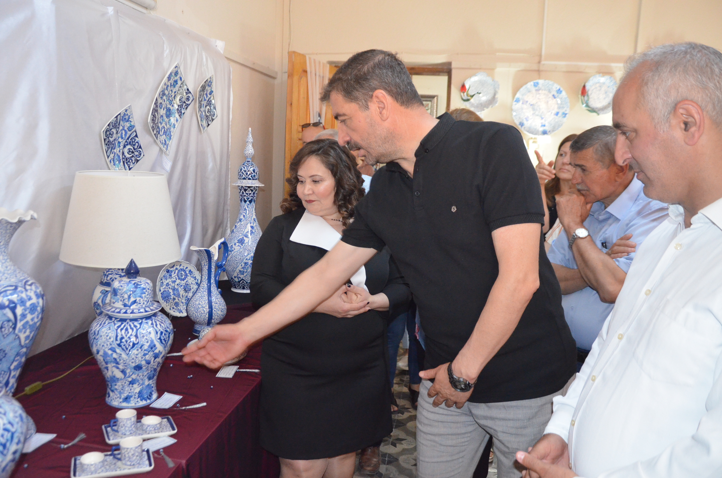 Halk oyunları gösterilerinin ardından kursiyerlerin hazırladığı El Sanatları sergisinin açılışı yapıldı. Açılış sonrasında sergiyi gezen protokol üyeleri yapılan çalışmaları inceledi. Sergide gösteriye çıkan çalışmalar protokol tarafından beğeni topladı. Müzik dinletisin ardından program son buldu.