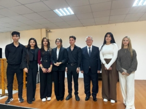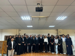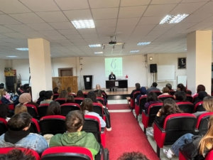 Program akışı dışında, daveti kırmayarak öğrencilerle buluşan Yüksek Kimya Mühendisi, EGİAD Yönetim Kurulu Üyesi ve İtalya Sanayi ve Ticaret Odası Yönetim Kurulu Üyesi Aslı Güven, kimya alanındaki uluslararası deneyimlerini paylaşarak öğrencilere kariyer yolculuklarında ilham verdi.