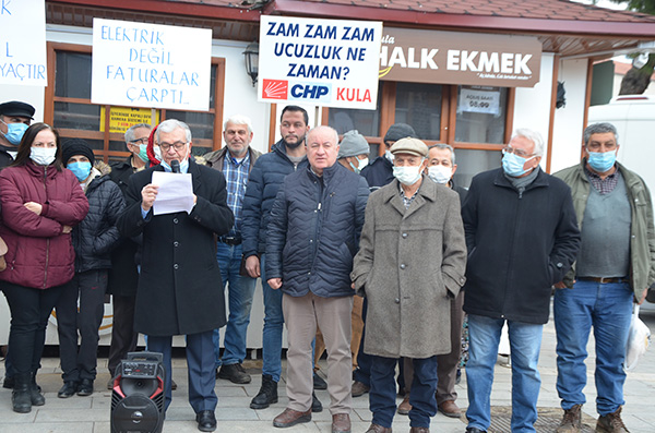 Cumhuriyet Halk Partisi Kula İlçe Başkanı Osman Kasırga ve parti üyeleri Kula Park Kahvesi önünde yaptığı basın açıklamasında yapılan zamların bütün vatandaşlara en başta da esnaflara çok ağır geldiğini yapılan zamlara yeniden düzenleme getirilmesini söylediler.