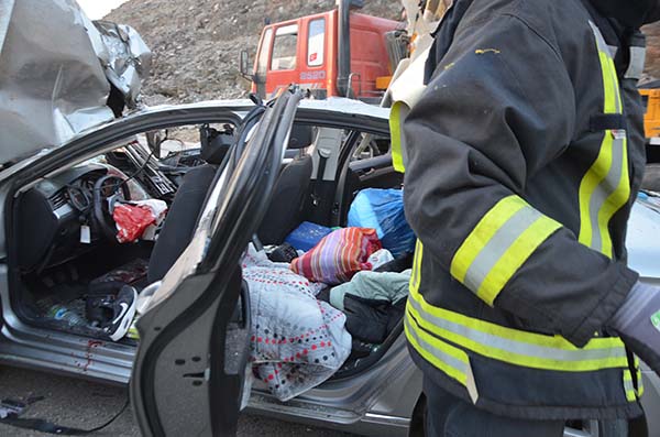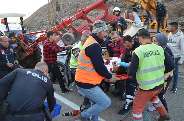 Otomobil sürücüsü Buğra Kök ve Hatice Kök (27) ağır yaralı, yolcu olarak bulunan Ercan Kök (54) ve Metehan Dutar (3) ile traktör sürücüsü Turgut Tomas yaralandı.
