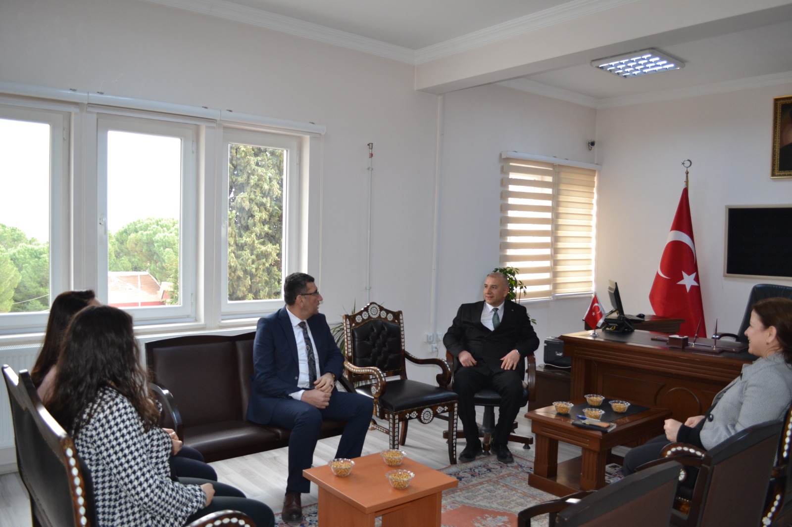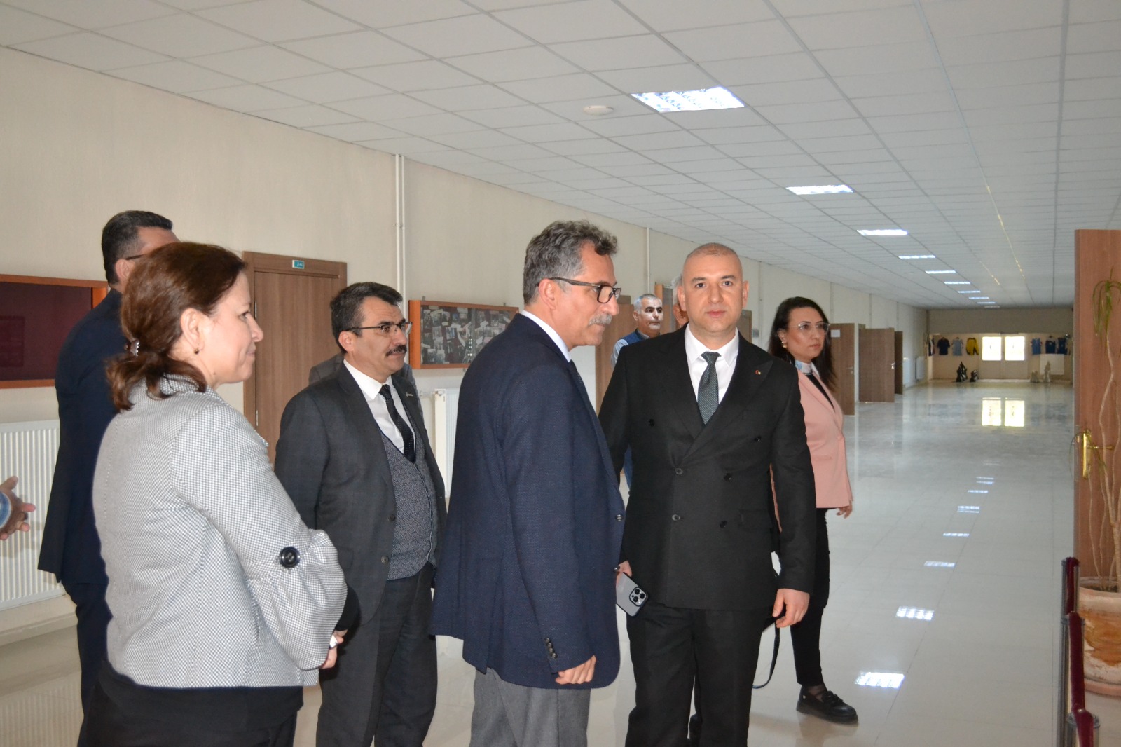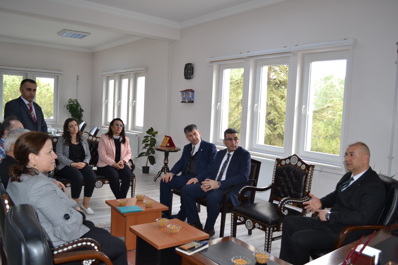 Daha sonra idari binaya geçen misafirler Müdürlük Makamına nezaket ziyaretinde bulundular. Misafirlere okul yönetimi tarafından Kula’nın ünlü su böreği ve şekerli pidesi ikram edildi. İkramların ardından Üniversite üst yönetimi idari ve destek personelleri ile görüşmeler gerçekleştirip çalışanların taleplerini aldı.