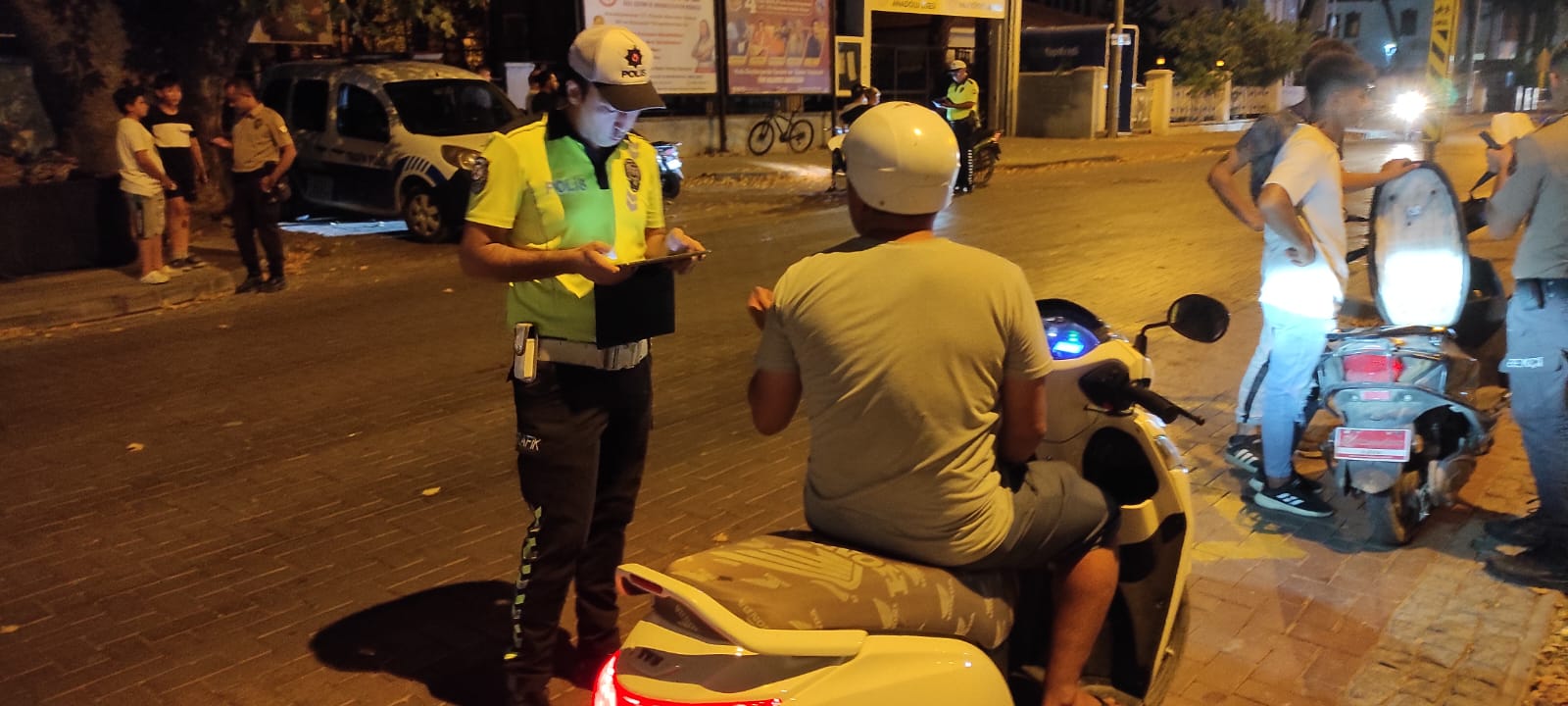Yapılan uygulamada 55 motosiklet sürücüsü denetlenirken trafik kurallarına uymaya, kask takmayan ve abartı egzoz olan sürücülere 33,950 TL. trafik cezası yazıldı, ayrıca 4 motosiklete trafikten men edildi.