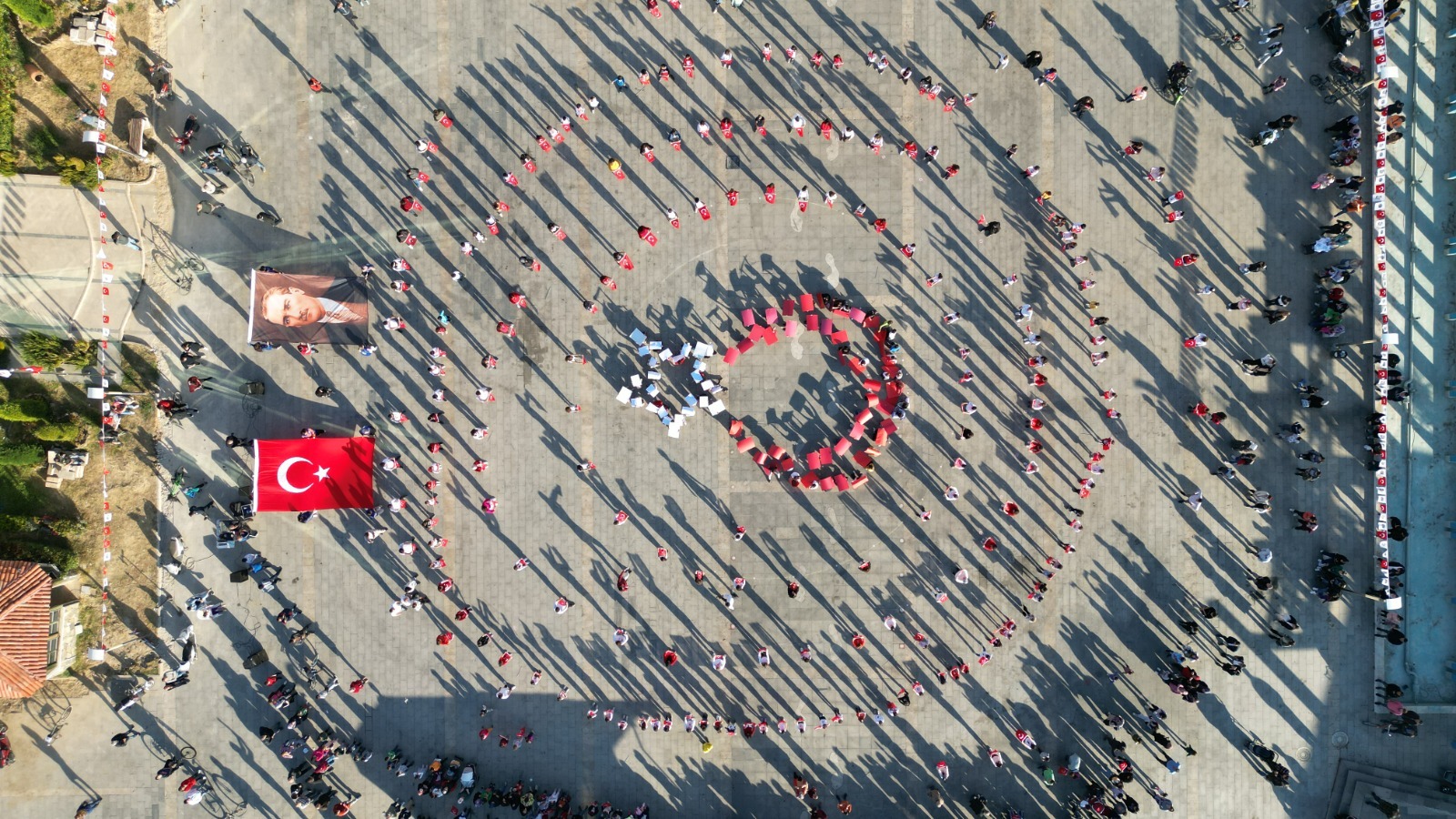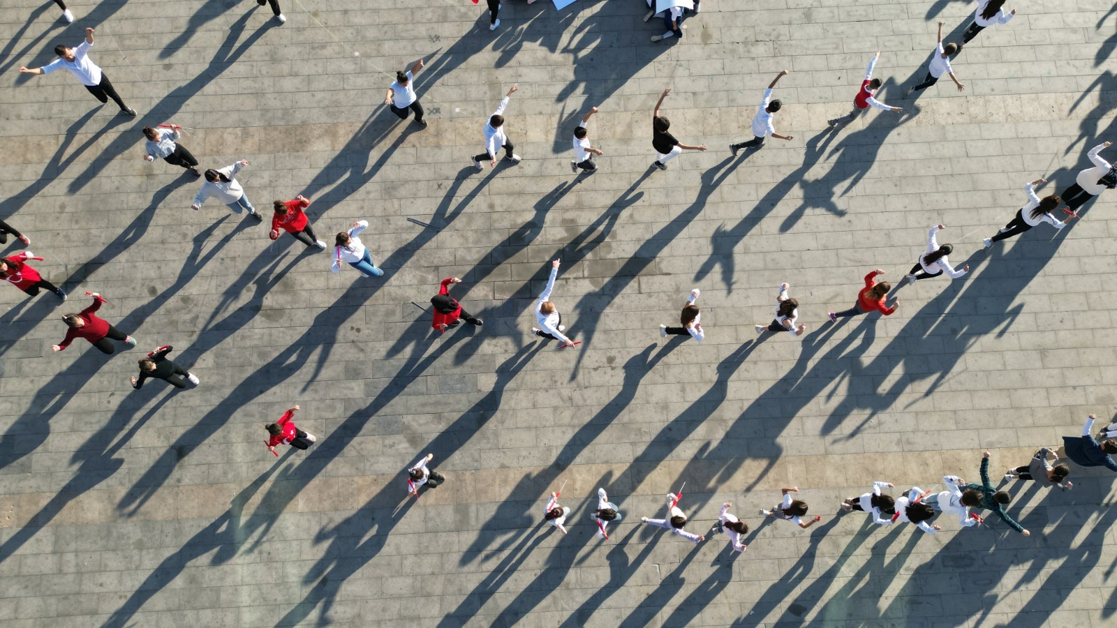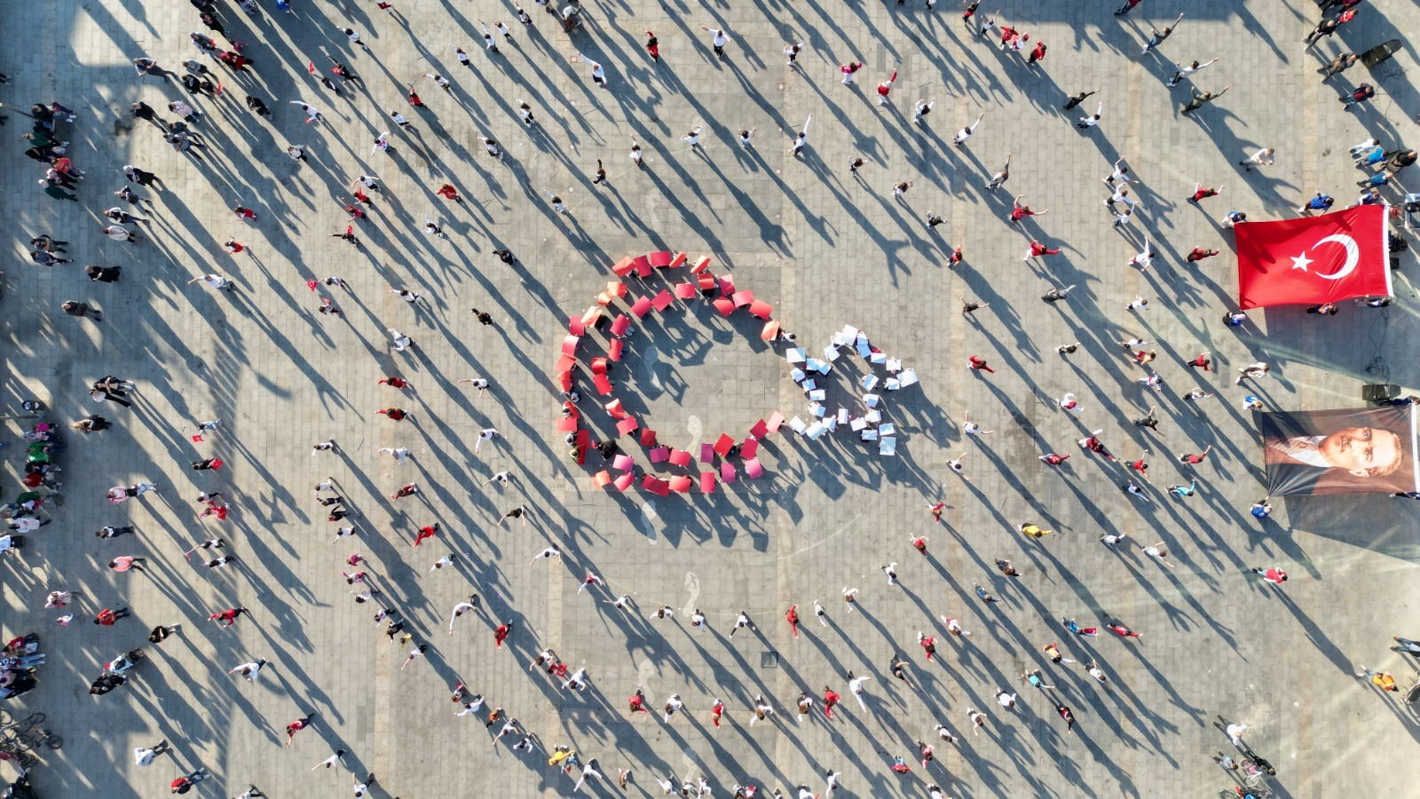 Cumhuriyetin 99. yıl dönümü kutlamaları kapsamında düzenlenen organizasyona katılan yaklaşık 300 kişi zeybek oynayarak, toplu performans sergiledi.