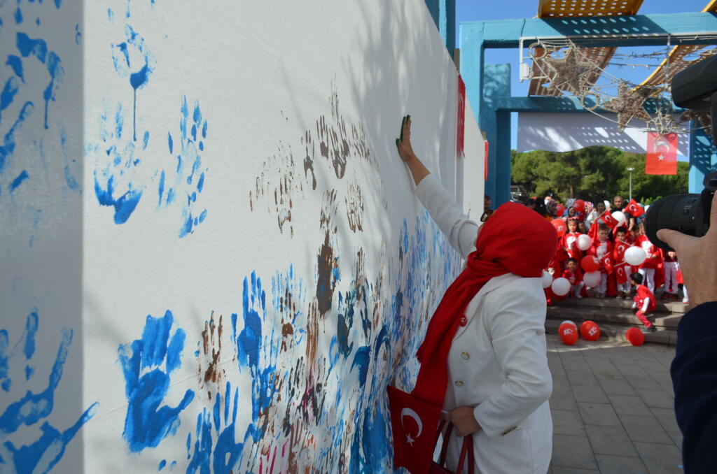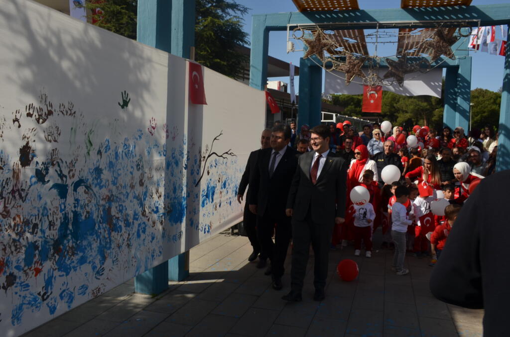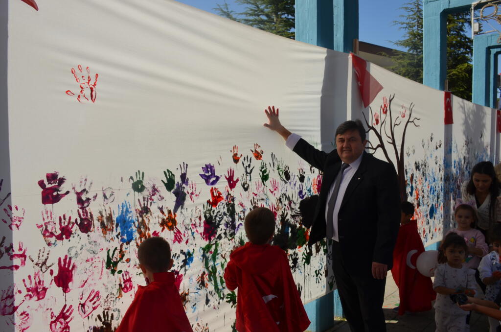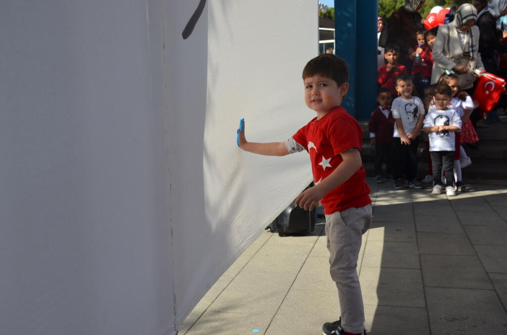 Cumhuriyetimizin 100. yılı etkinlikleri kapsamında Yunus Emre ve Şehit Ömer Halisdemir Kent Meydanı’nda Kula Belediyesi Kültür Sosyal İşler Müdürlüğü ve Kula ilçe Milli Eğitim Müdürlüğü tarafından hazırlanan ‘Cumhuriyet Emin Ellerde’ adı altında okul öncesi öğrencilere yönelik parmak boyama etkinliği düzenlendi. Etkinliğe katılan Kula Kaymakamı Ömer Ahmet Özdemir, Kula Belediye Başkanvekili Nejat Gülmez öğrencilerle birlikte etkinlik için özel hazırlanan 19,23 metrekarelik dev tuvalde boyama çalışması yaptı.