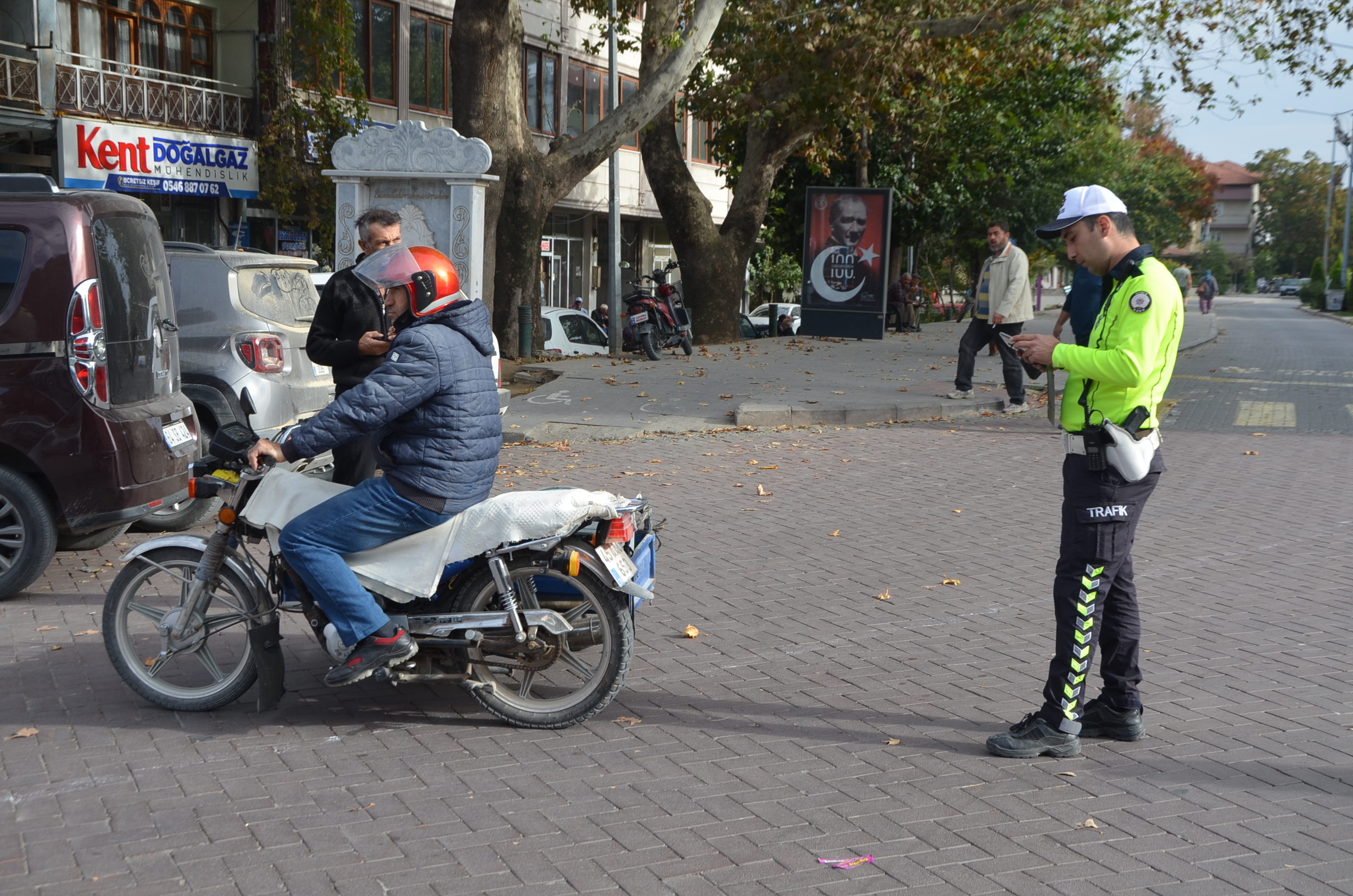 Ekipler öncelikle motosiklet kullanıcılarını kask kullanımı konusunda bilgilendirirken kaskını takmayan sürücülere de cezai işlem uyguladı.