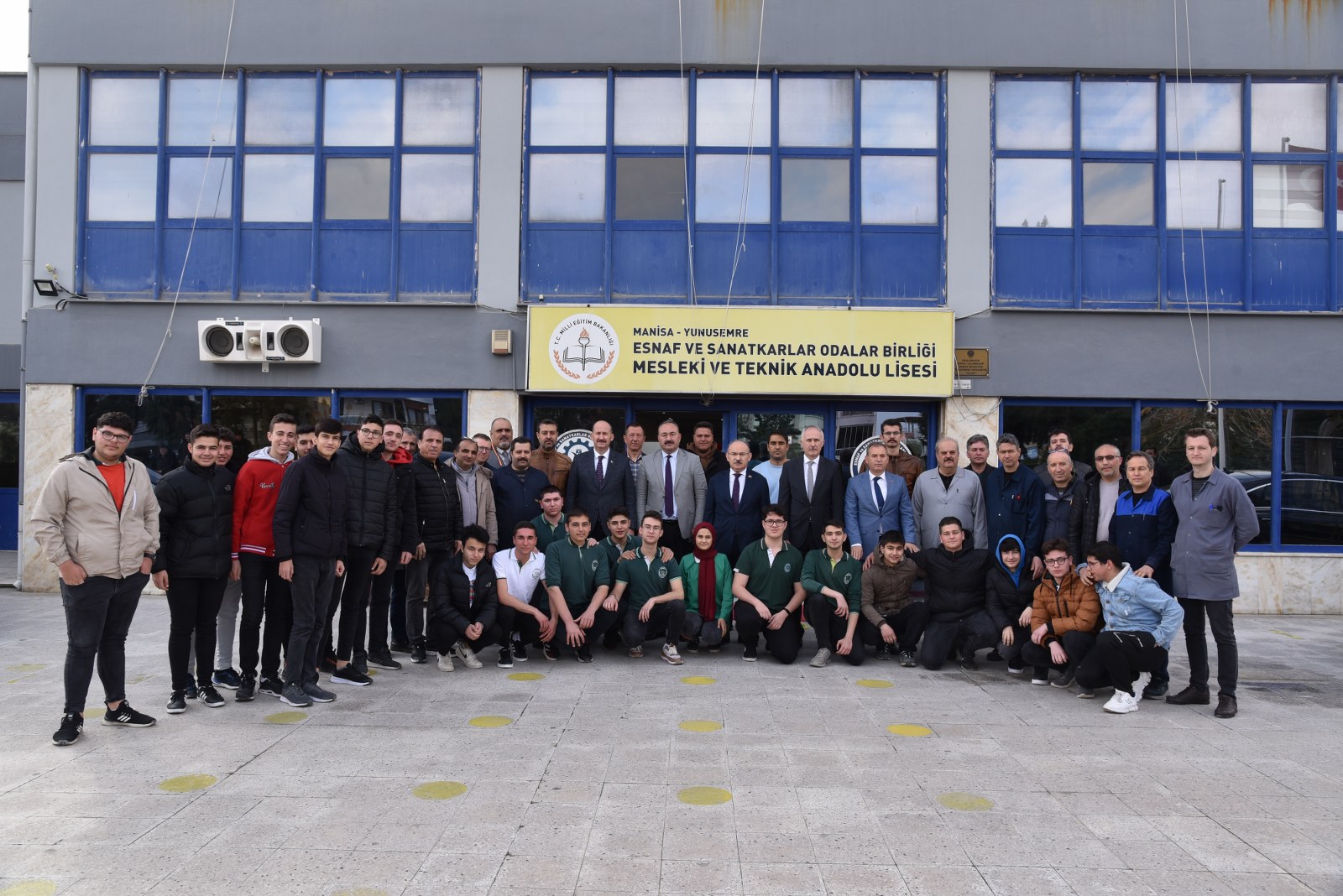 İsmet İnönü Kız Teknik ve Meslek Lisesi ile Mesleki ve Teknik Anadolu Lisesi’ni de ziyaret eden Vali Karadeniz okullarda öğretmenler ve öğrencilerin ürettiği ürünler hakkında bilgi aldı. Vali Karadeniz’e İsmet İnönü Mesleki ve Teknik Anadolu Lisesi Müdürlüğü 289 adet yorgan, 300 adet polar battaniye, 22 adet yastık, 27 adet yetişkin tulum, 4 adet çocuk tulum, 6 adet eldiven, 3 adet eşofman takımı,4 adet giyilebilir battaniye üretiminin yapıldığı, Manisa Mesleki Ve Teknik Anadolu Lisesi Müdürlüğü’nün 220 adet soba ürettiği bilgisi verildi.