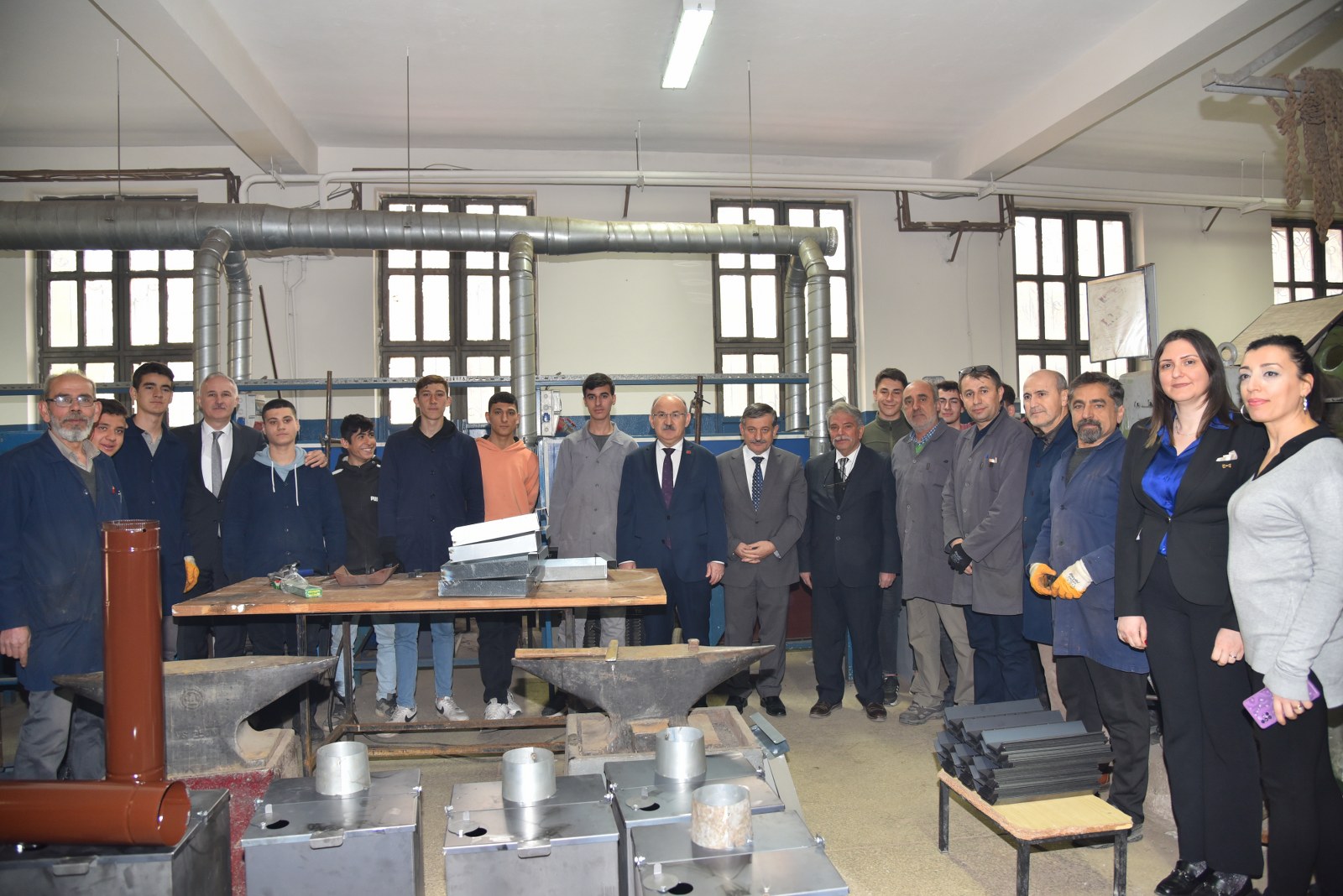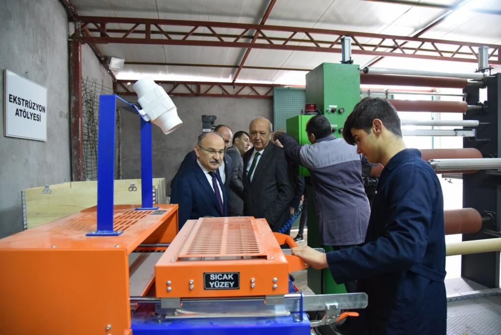 Vali Karadeniz, daha sonra Esnaf ve Sanatkârlar Odalar Birliği Mesleki ve Teknik Anadolu Lisesi ile Polinas Mesleki ve Teknik Anadolu Lisesi’ne ziyarette bulundu. Öğrenci ve öğretmenler tarafından üretilen prefabrik tuvaletleri yerinde inceleyen Vali Karadeniz’e Esnaf ve Sanatkârlar Odalar Birliği Mesleki ve Teknik Anadolu Lisesi tarafından 12 adet (çiftli) seyyar tuvalet üretiminin yapıldığı, Polinas Mesleki ve Teknik Anadolu Lisesi tarafından 25 adet (çiftli) seyyar tuvalet üretimi yapıldığı bilgisi verildi.