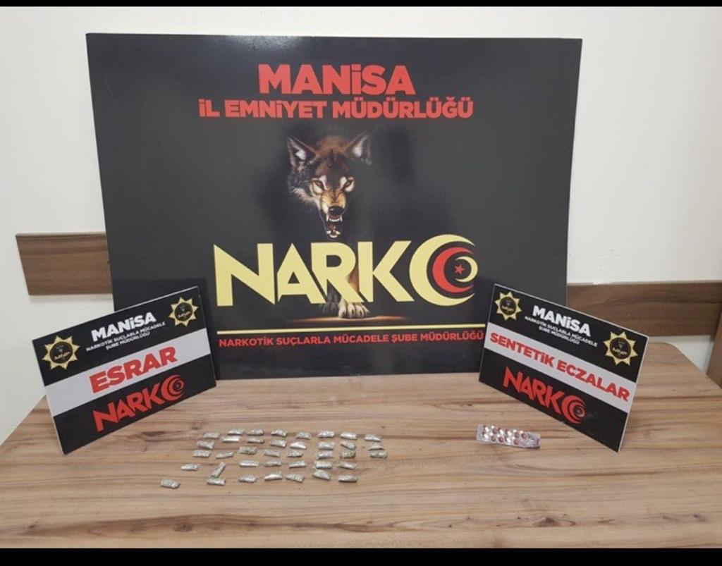 Manisa Narkotik Suçlarla Mücadele Şube Müdürlüğü ve Asayiş Şube Müdürlüğü görevlilerince uyuşturucu veya uyarıcı madde ticareti yapan, nakleden ve kullanan şahıslara yönelik yapılan çalışmalar kapsamında bir şahsın üzerinde yapılan aramada;