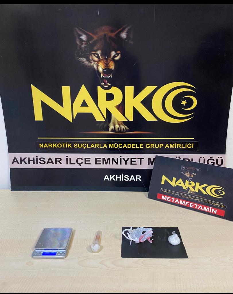Manisa İl Emniyet Müdürlüğü Akhisar Narkotik Suçlarla Mücadele Büro Amirliği görevlilerince uyuşturucu veya uyarıcı madde ticareti yapan, nakleden ve kullanan şahıslara yönelik yapılan çalışmalar kapsamında bir şahsın üzerinde yapılan aramada;
