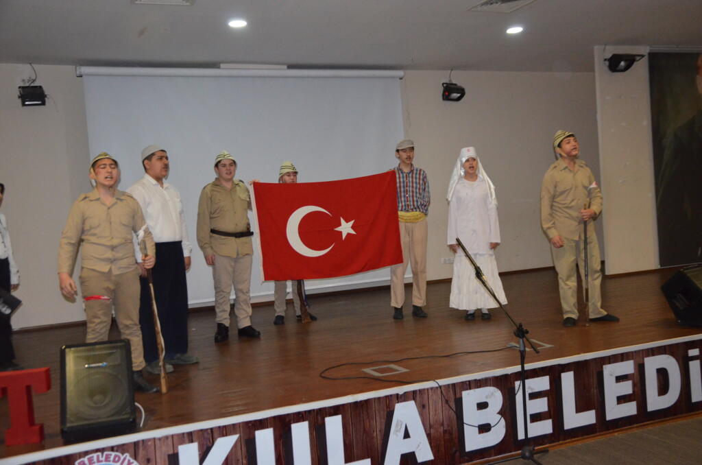 Tören, İstiklal Marşı’nın okunması, öğretmen ve öğrencilerinin hazırladığı orotoryo, şiir gösterisi gerçekleşti. Kula Kaymakamı Birkan Tatlısöz, günün anlamı ve önemine değinen konuşmasıyla salonda bulunan protokol ve öğrencilere hitap ederek bağımsızlığın önemini vurguladı. Tören sonunda Mehmet Akif Ersoy ve İstiklal Marşı konulu, şiir, kompozisyon ve resim dallarında dereceye giren öğrencilere ödülleri verildi.