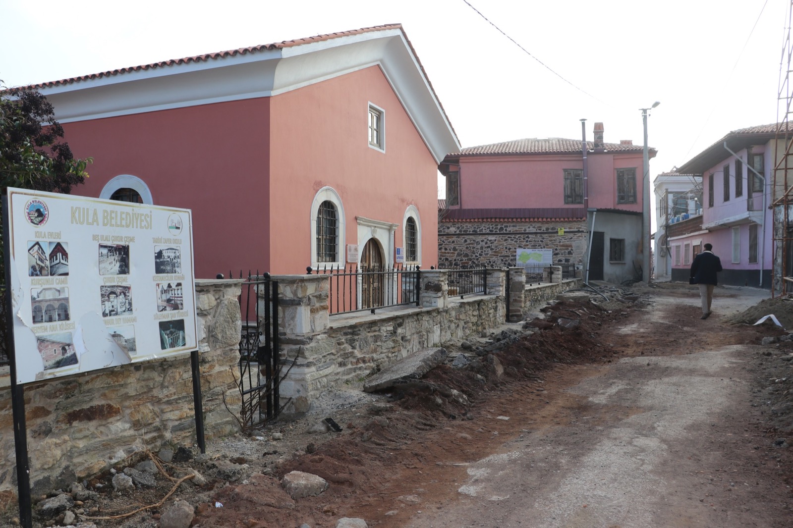 Manisa Valiliği Yatırım İzleme Koordinasyon Başkanlığı(YİKOB) ve Kula Belediyesi tarafından başlatılan cephe sağlıklaştırma projesi kapsamında Mustafa Şapçı Sokak ve Zafer Sokak’ta ekipler hem tarihi yapıları aslına uygun hale getiriyor hemde alt yapıları yeniliyor. Mustafa Şapçı Sokak’ta altyapı dönüşüm çalışmaları kapsamında elektrik hatlarının yer altına alınması, fiber internet ve telekom hatları dönüşümü için Kula Belediyesi’ne bağlı ekipler dar sokaklarda çalışmaya uygun iş makinalarıyla hat kazısı yapılıyor. Doğalgaz hattı döşemesi de yapılacak Mustafa Şapçı sokakta ilgili kurumlar tarafından altyapı dönüşümü tamamlandıktan sonra dekoratif aydınlatmalar, meydan, otopark ve çocuk oyun parkı düzenlemesi, doğal malzemelerle sokağın üstyapı döşemesi gerçekleştirilecek. Kula Belediyesi ekipleri, alanda hava şartlarından kaynaklı ortaya çıkan tahribatları da vakit kaybetmeksizin tamir ediyor.