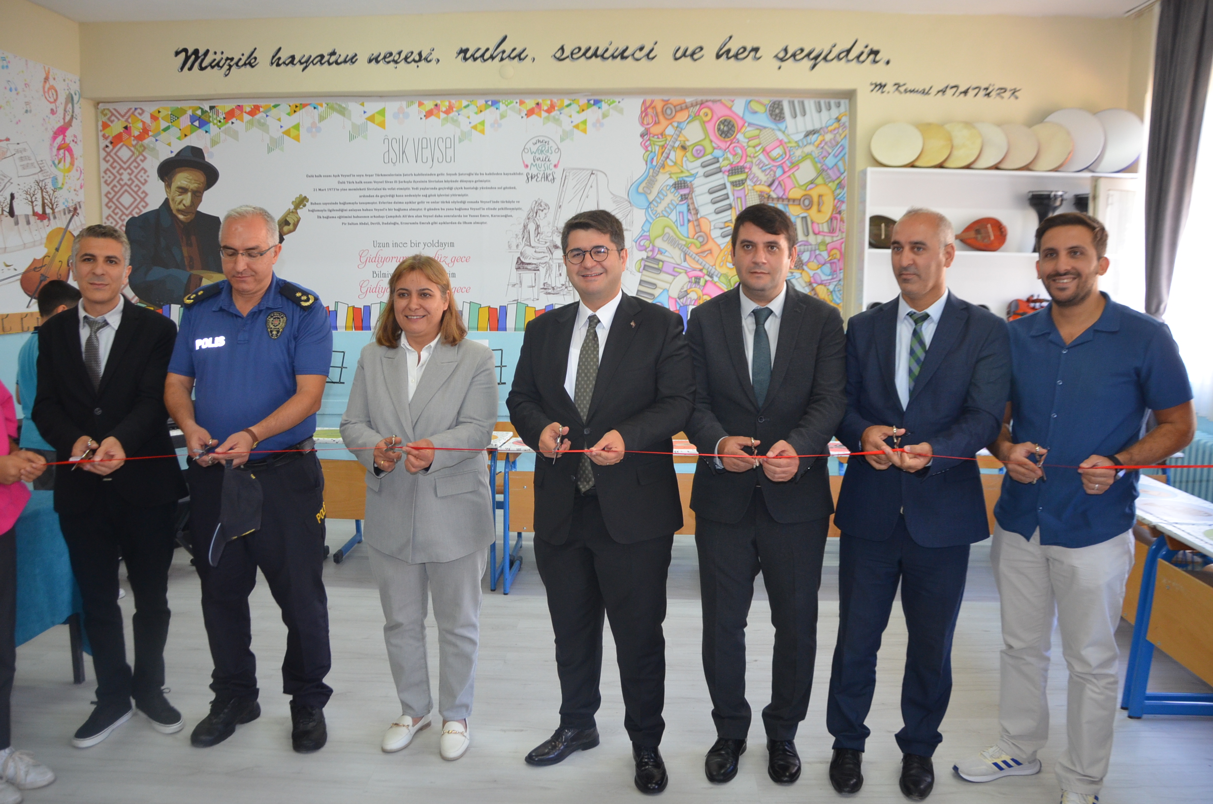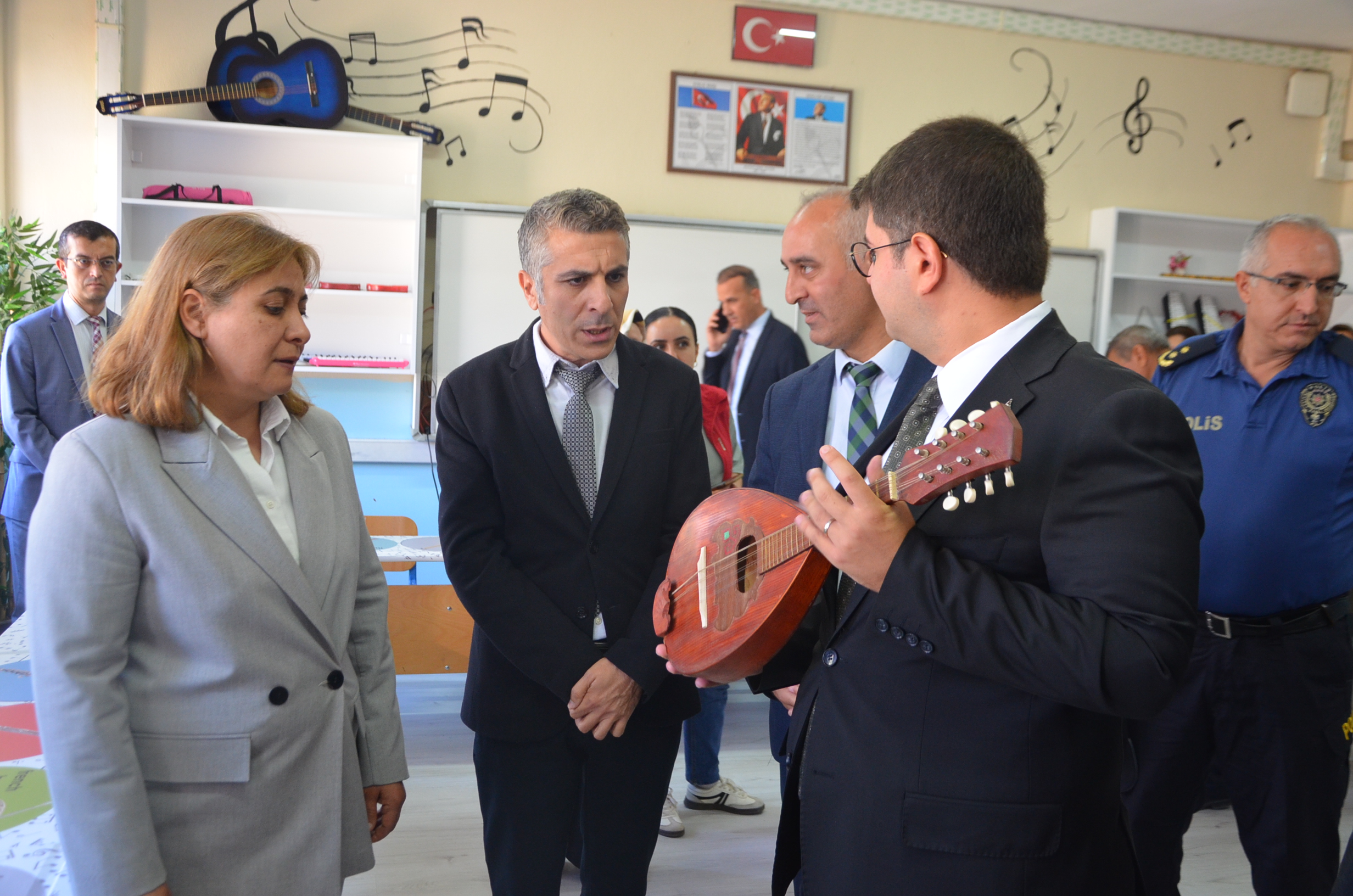 Açılışta sınıfta bulunan müzik aletleri tanıtılırken Müzik öğretmeni Barış Çelik ve sınıfın açılışı için destek veren Muharrem Duran’da plaket verildi.