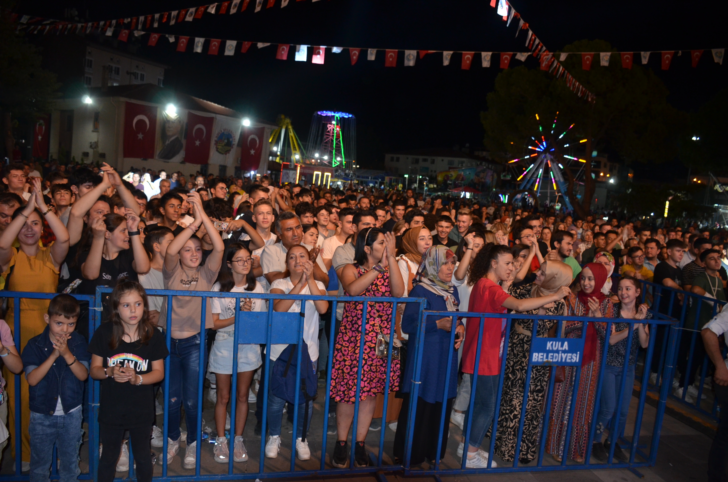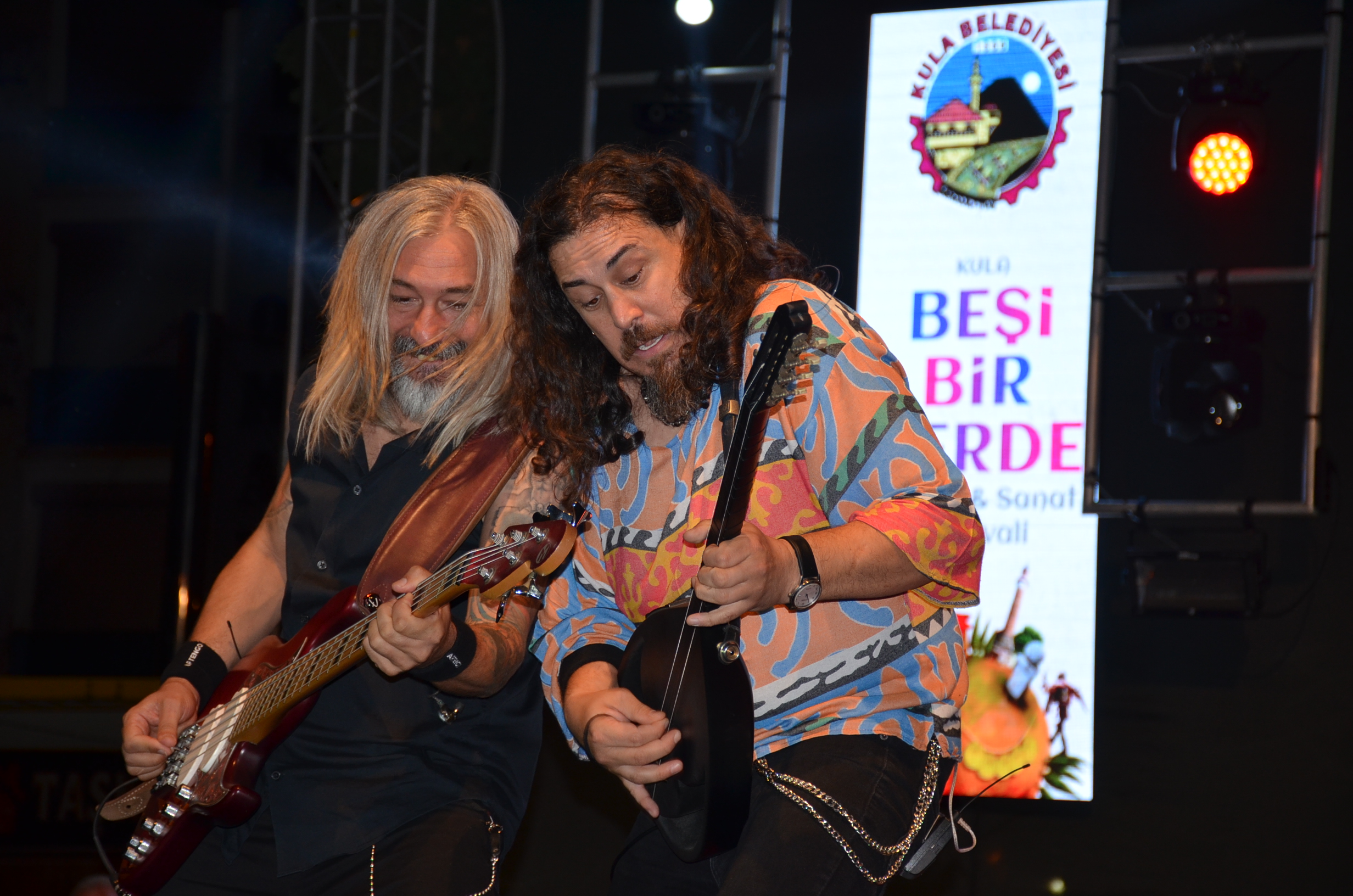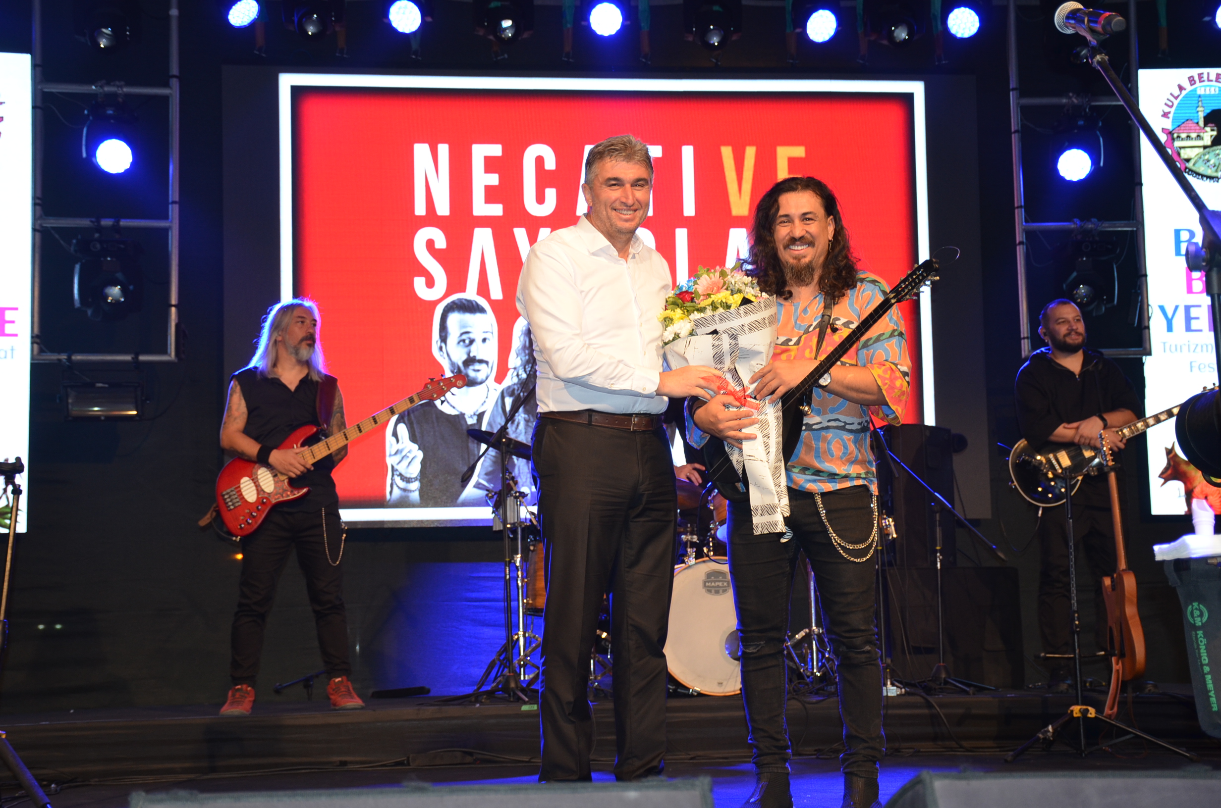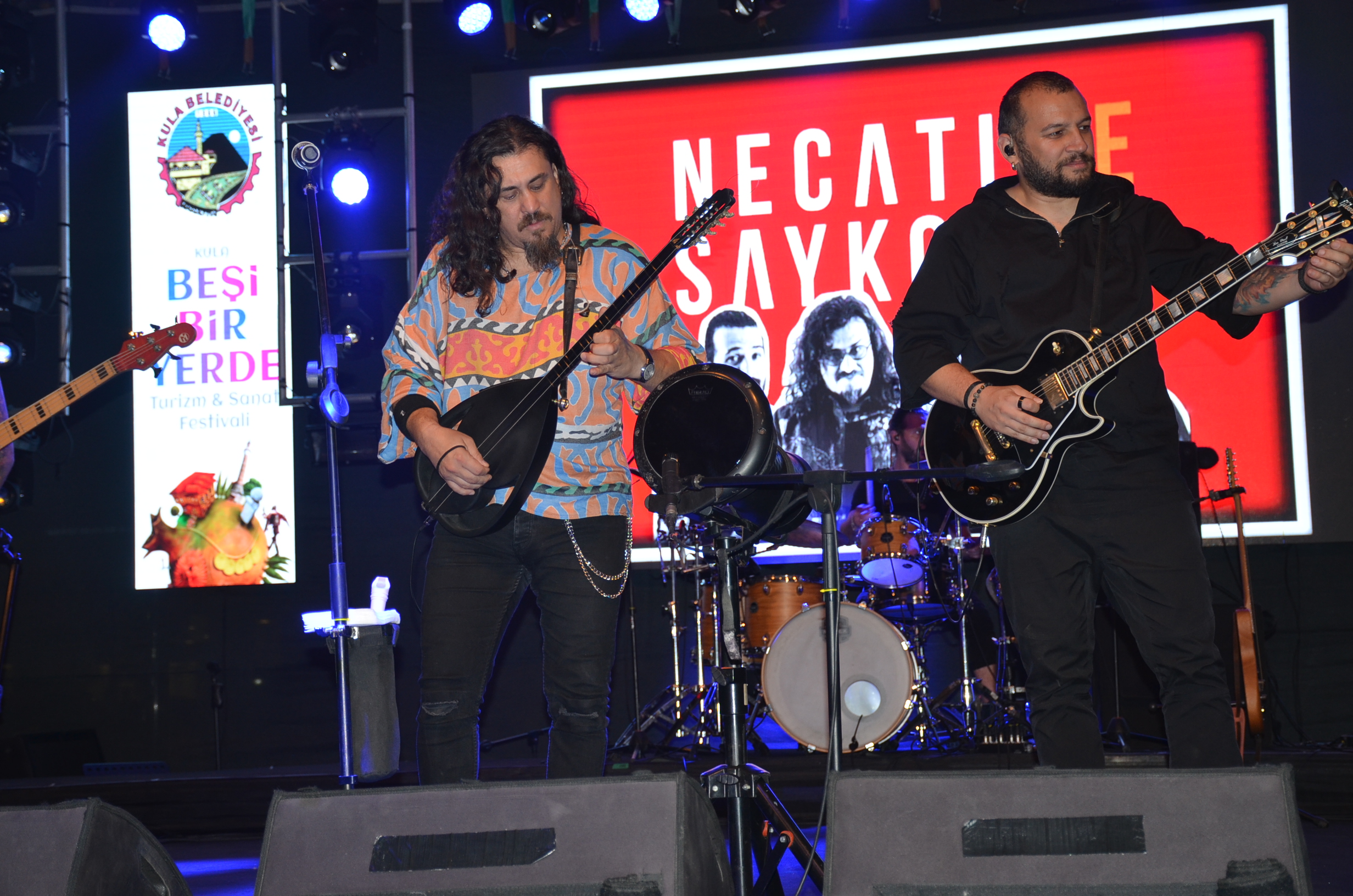 Kula Belediyesi’nin düzenlediği Beşibiryerde Turizm ve Sanat Festivali’nin 4. gününde Türkçe Rock müziğin efsane grubu Necati ve Saykolar Kulalılarla buluştu. Kula Yunus Emre ve Şehit Ömer Halisdemir Kent Meydanı’nda gerçekleşen konserde Necati ve Saykolar grubu, Kulalı hayranlarına unutulmaz bir gece yaşattı. Konserde binlerce vatandaş, şarkılara eşlik etti ve unutulmaz dakikalar yaşadı. Performanslarıyla Kula’yı sallayan Necati ve Saykolar grubuna teşekkür eden Kula Belediye Başkanı Hüseyin Tosun, kendilerini tebrik ederek grubu temsilen solist Necati Karadayı’ya çiçek takdim etti.