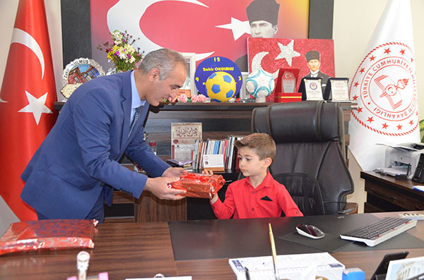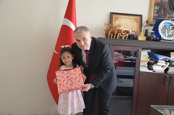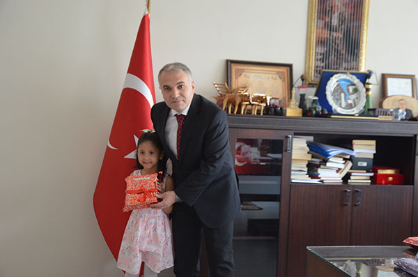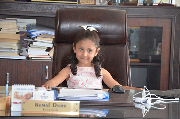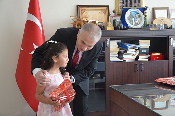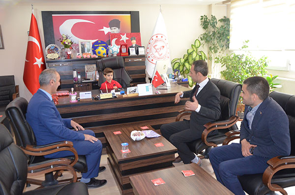 23 Nisan Ulusal Egemenlik ve Çocuk Bayramı dolayısıyla makam koltuklarına temsili olarak oturan öğrenciler, talimatları verdiler.