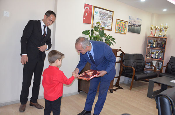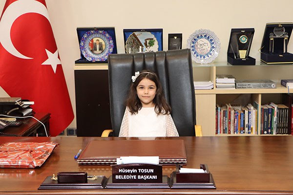 23 Nisan Ulusal Egemenlik ve Çocuk Bayramı dolayısıyla makam koltuklarına temsili olarak oturan öğrenciler, talimatları verdiler.