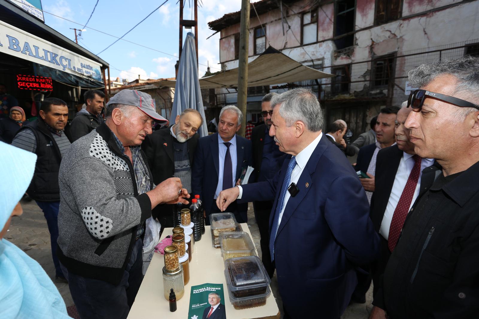 Pazar gününü Akhisar ve köy ziyaretlerine ayıran Özdağ Göcek Köyü’nde bir Düğüne Katıldı. Ardından Akhisar Pazar Pazarında esnaf ve vatandaşlarla bir araya geldi. Değnekler köyü ziyaretinin ardından Akhisar esnafının dert ve taleplerini dinledi.