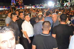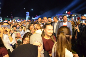 Belediye ziyaretinin ardından konser alanına geçen Kasapoğlu, sanatçı Sinan Akçıl’ın sahnesine çıkarak Selendi halkını selamladı. Kısa bir konuşma yaparak halkın bu coşkusunu paylaştığını ifade eden Kasapoğlu, daha sonra Kaymakam Altuntaş ve Belediye Başkanı Daban ile birlikte sanatçının seslendirdiği şarkılara eşlik etti.