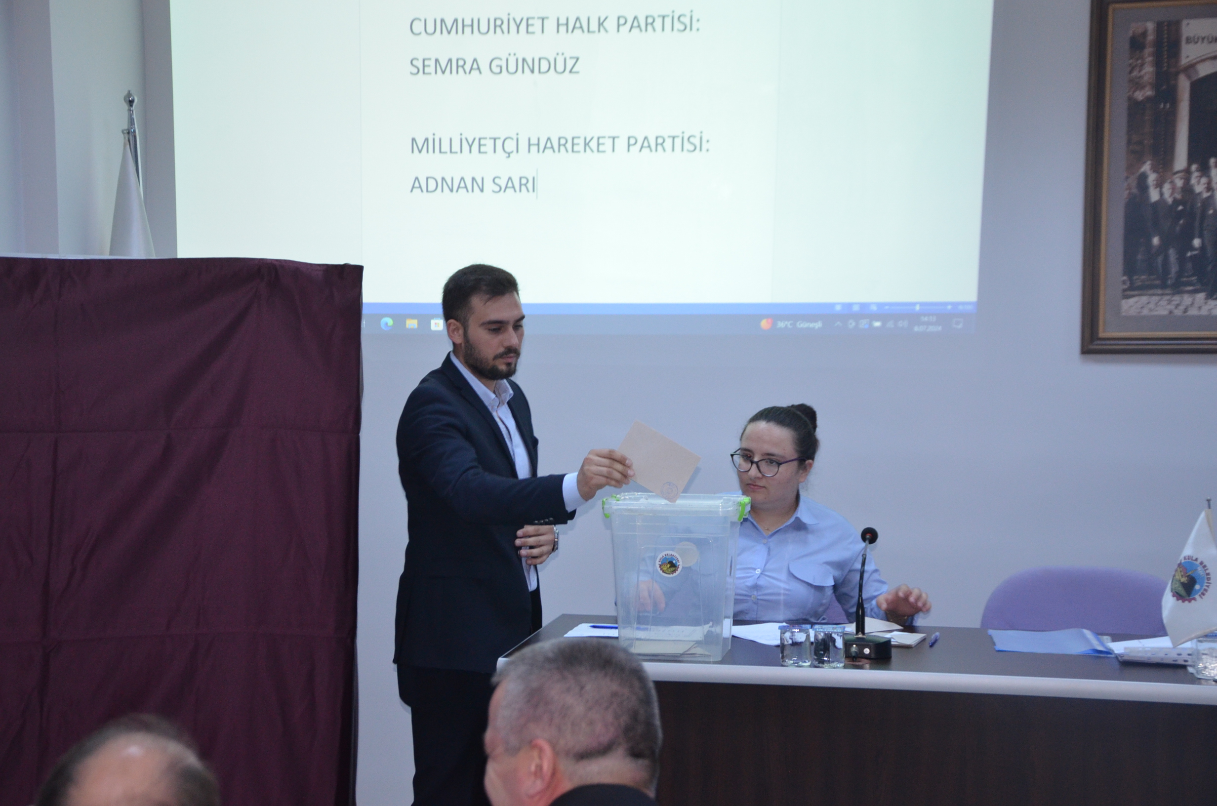 Kapalı zarf usulü yapılan seçimde CHP’den Semra Gündüz aday olurken Cumhur İttifakının adayı Adnan Sarı oldu. 1. Tur oylamada Semra Gündüz 9 oy alırken Adnan Sarı 6 oy aldı, çoğunluğun sağlanamaması üzerine 2. Tur oylamaya geçildi, 2. Tur oylamada Semra Gündüz 9 oy alırken Adnan Sarı 6 oy aldı gene çoğulculuğun sağlanamaması üzerine 3. Tur olan son oylama sürecine geçildi son turda Semra Gündüz 9 oy alırken Adnan Sarı 6 oy aldı. Böylece Kula Belediye Başkanı Semra Gündüz olarak belirlendi.